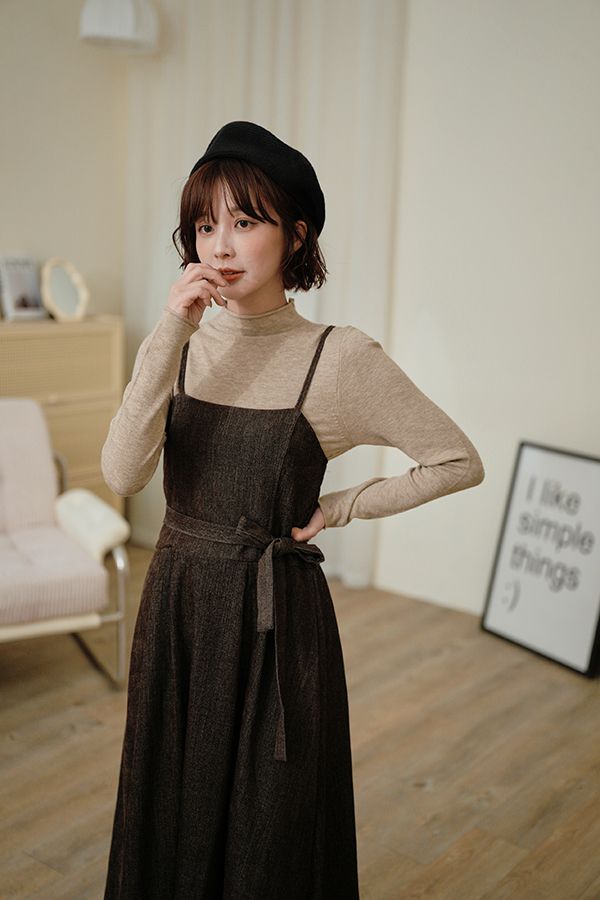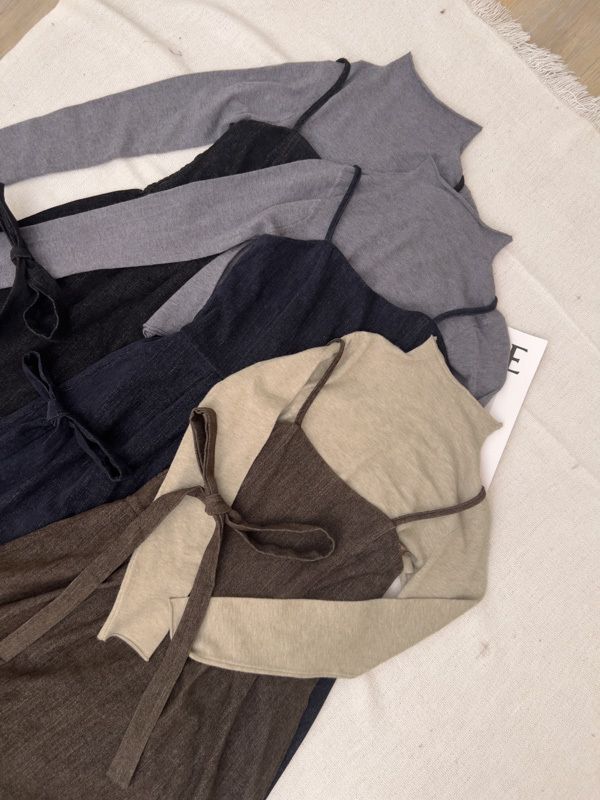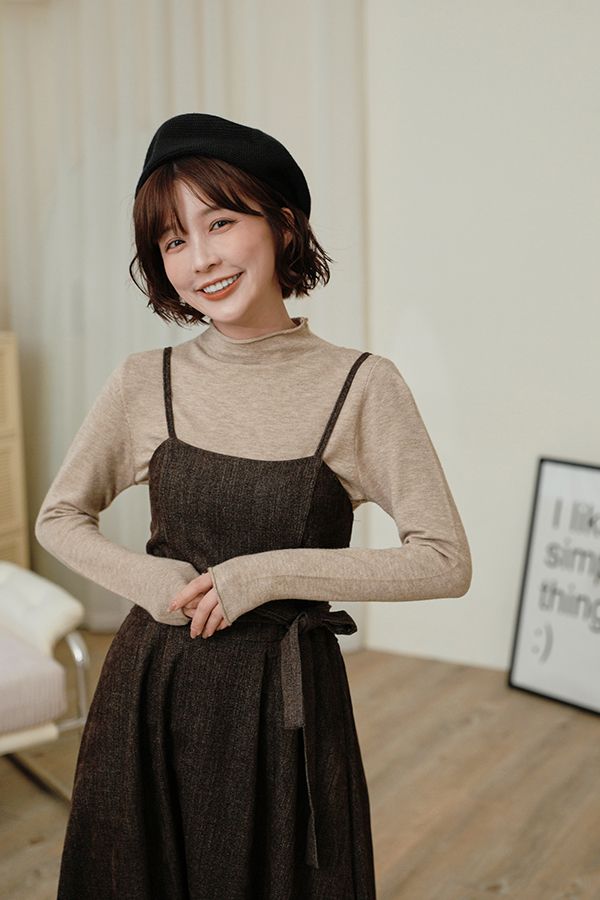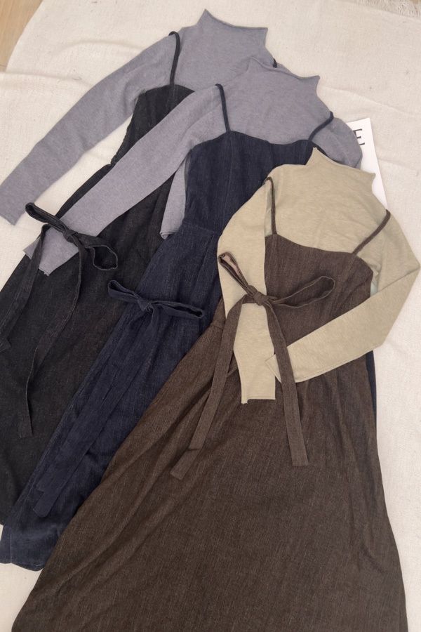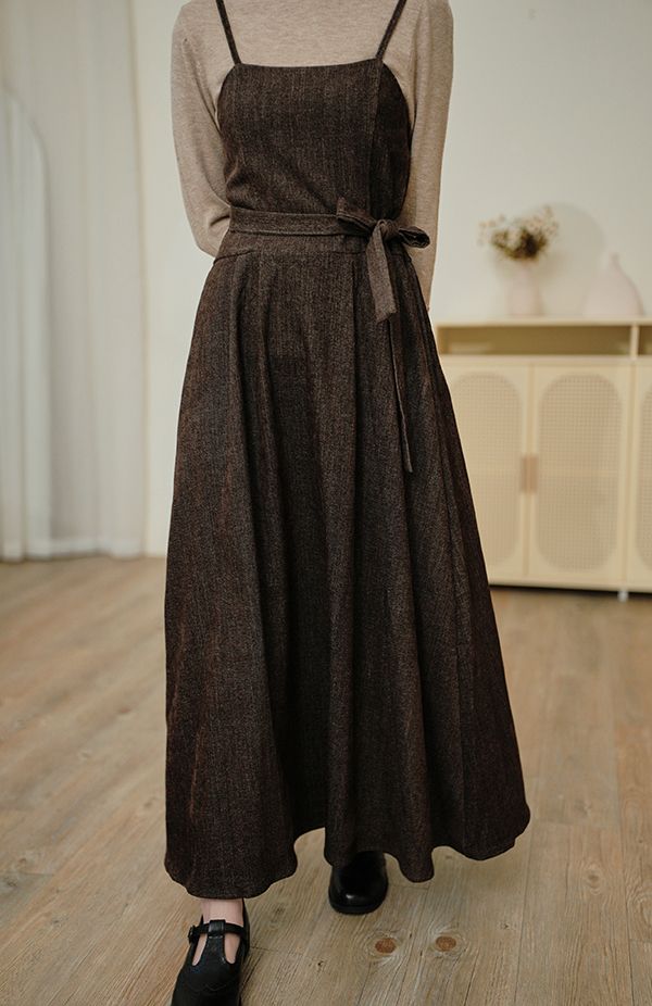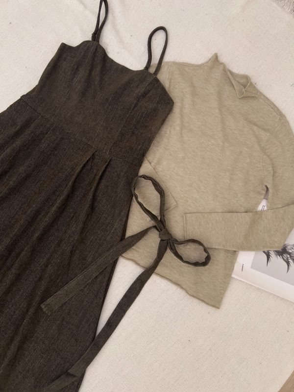 甜美復古長洋套裝(包芯紗上衣+細肩長洋+綁帶)