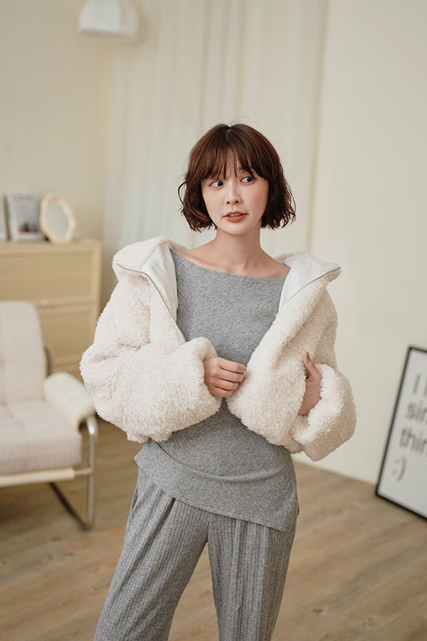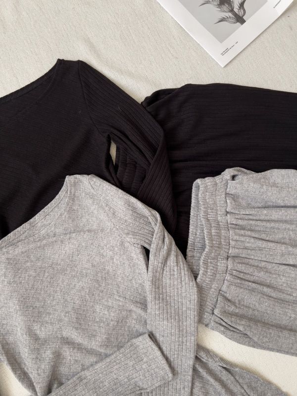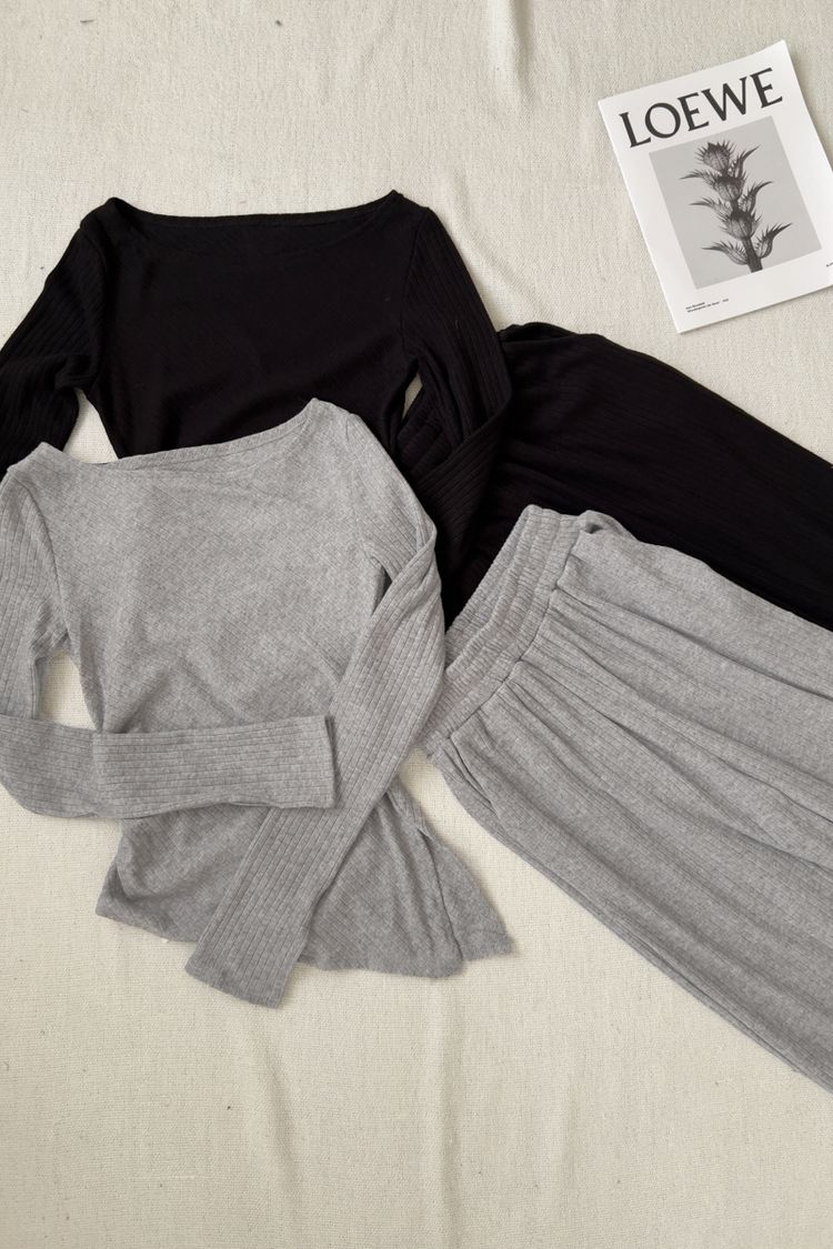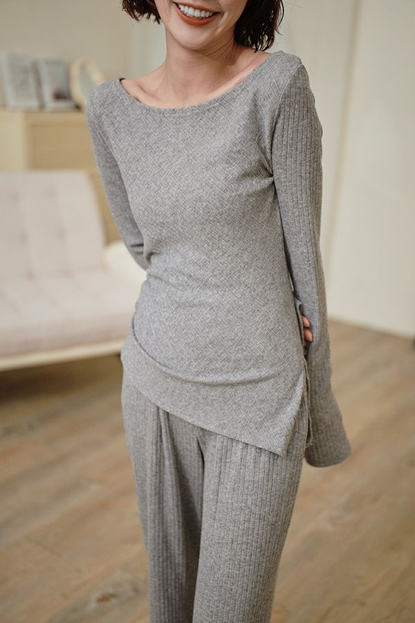 修身不規則針織坑條套裝(上身+長褲)