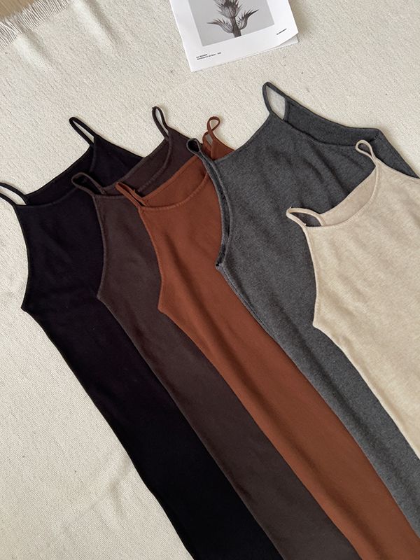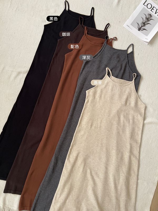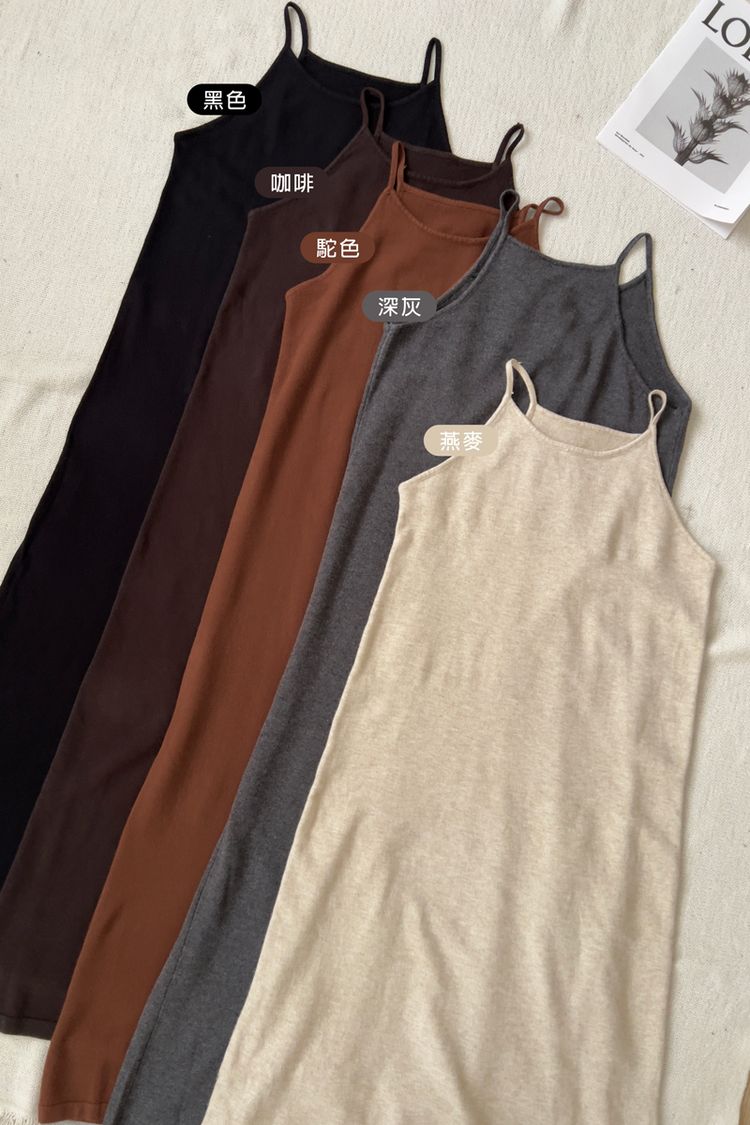 法式浪漫細肩針織長洋