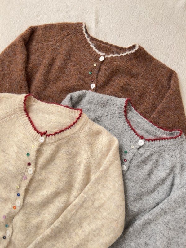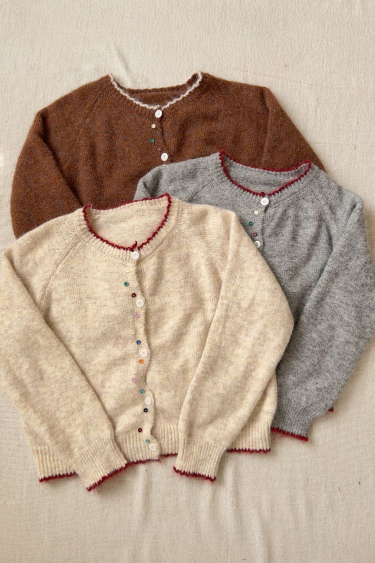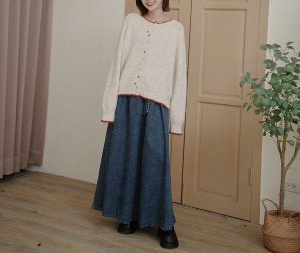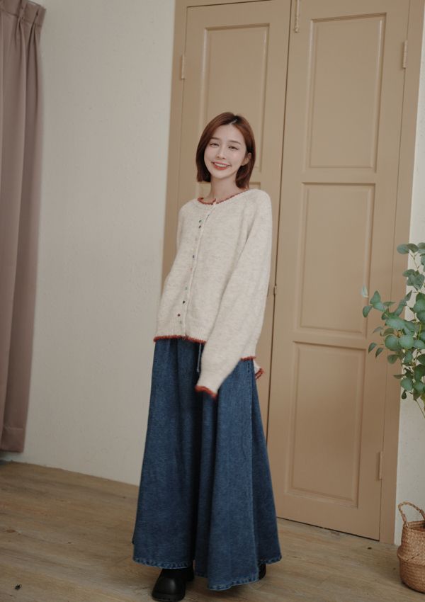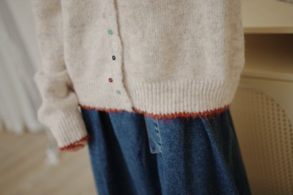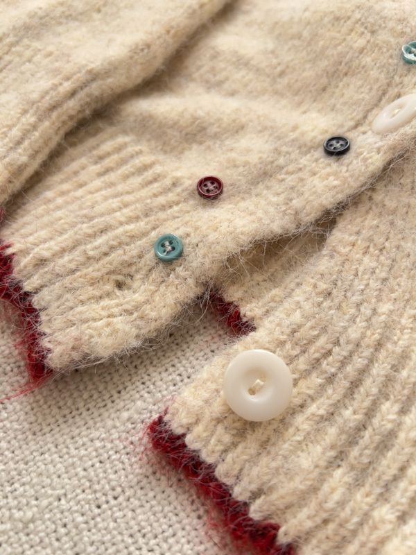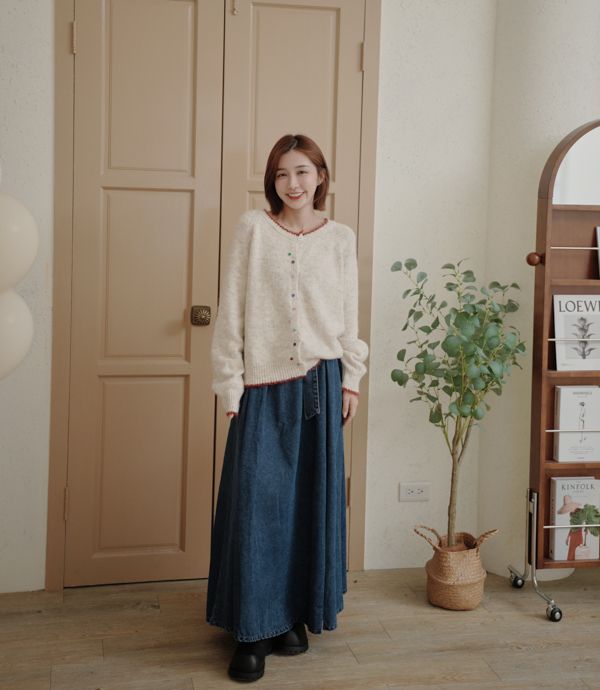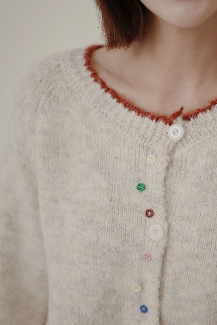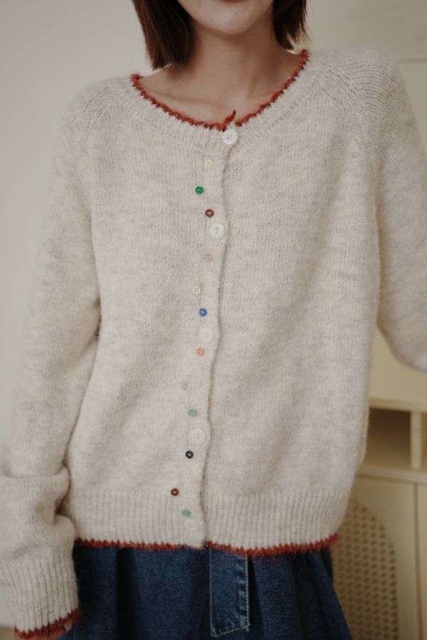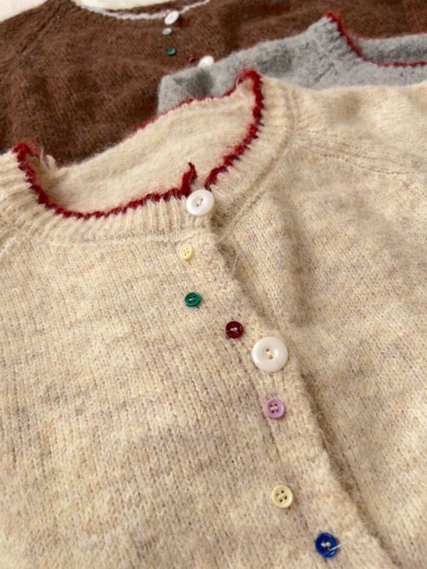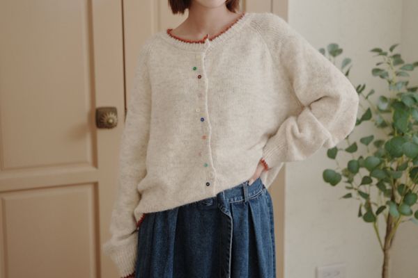 滾邊彩釦針織外套/上衣