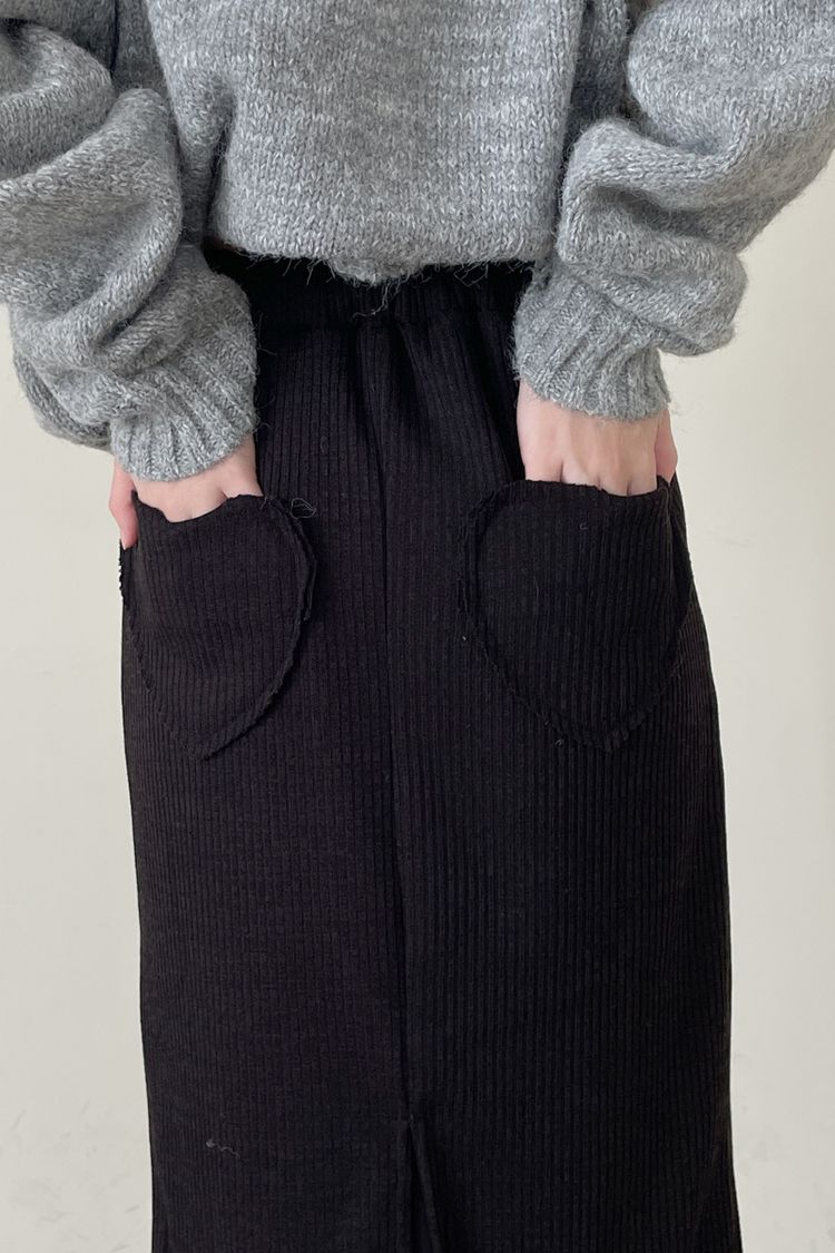 【限量現貨】愛心口袋假兩件針織長裙