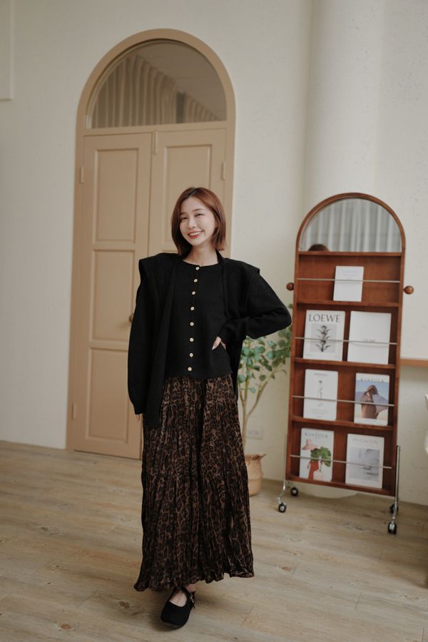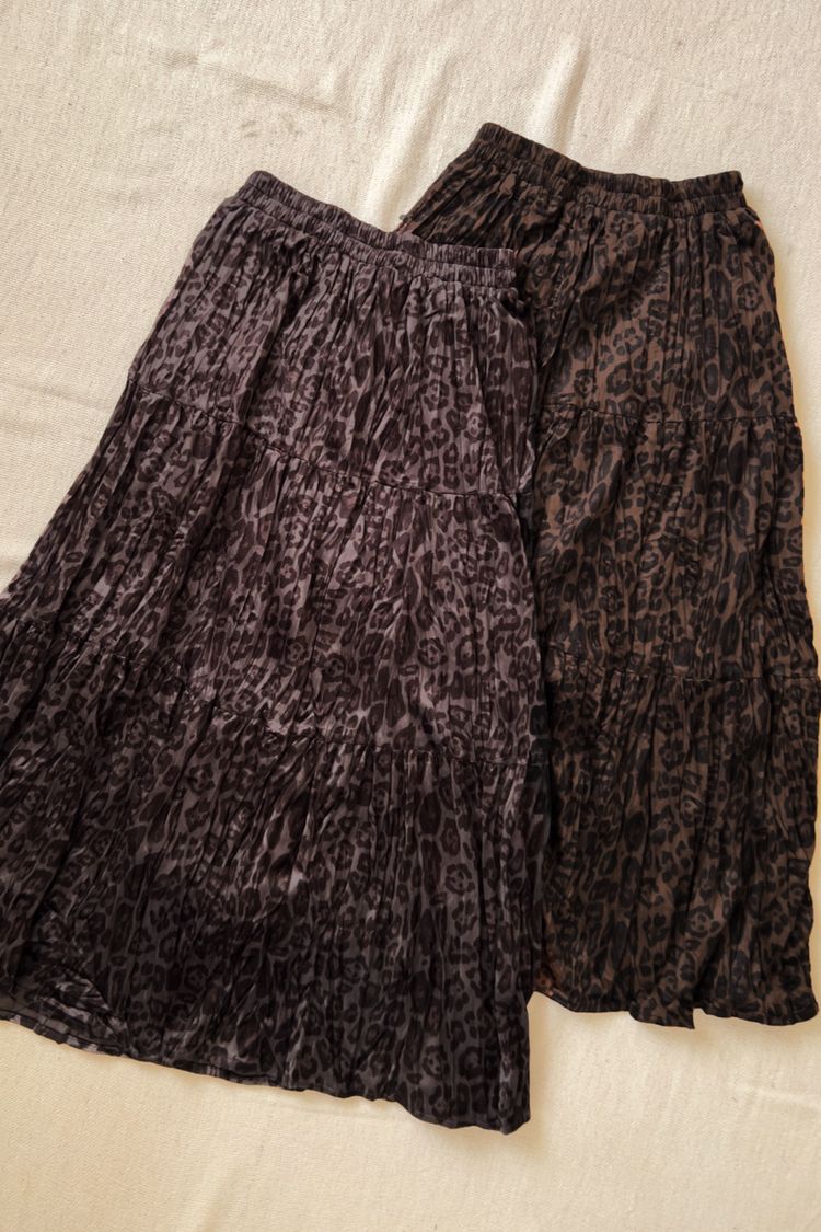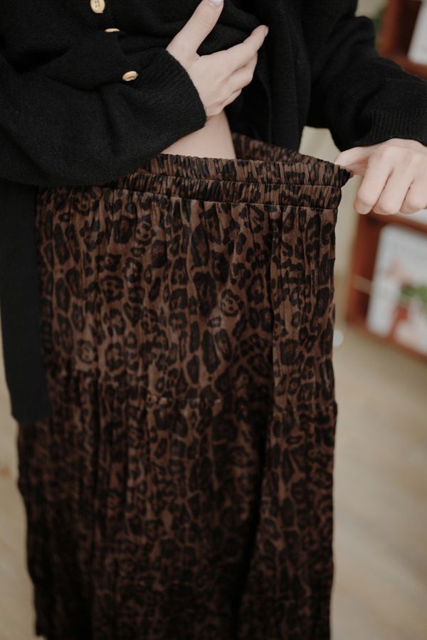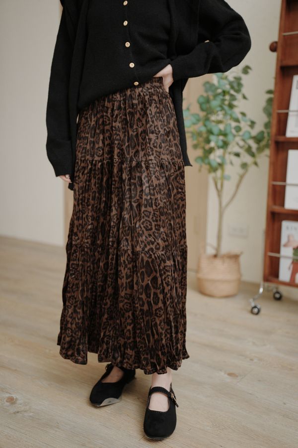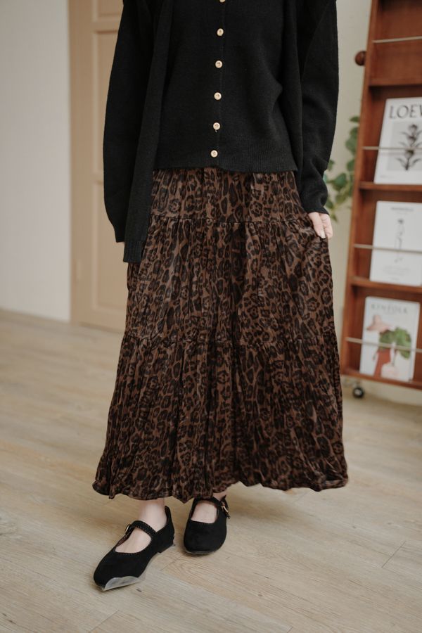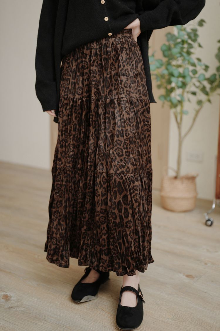 【限量現貨】豹紋壓褶絨面長裙(XL可穿)