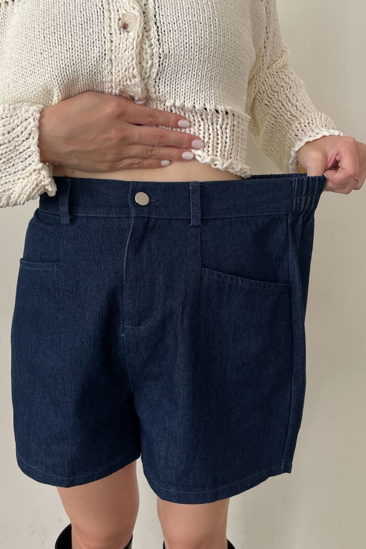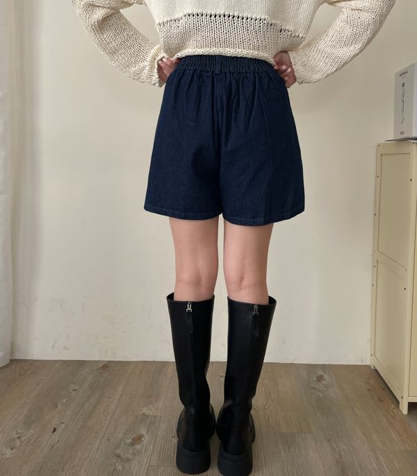 【限量現貨】全鬆緊抓褶牛仔短褲