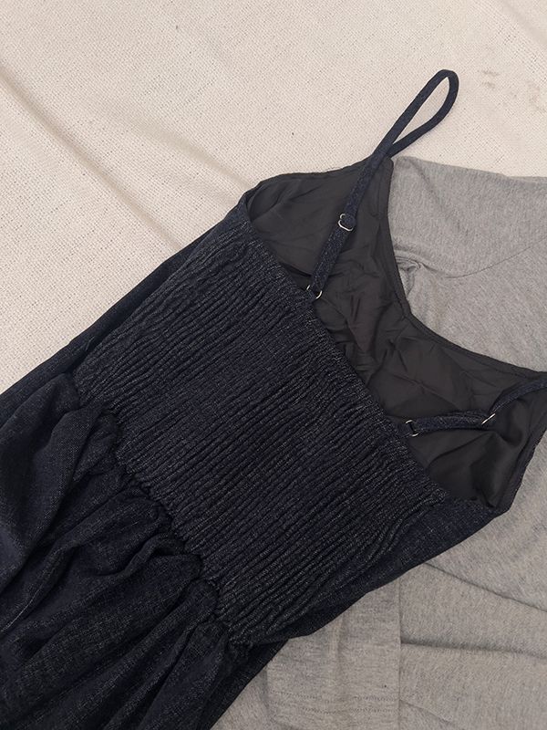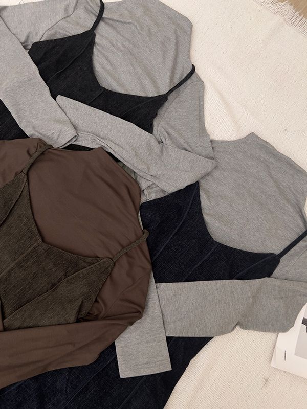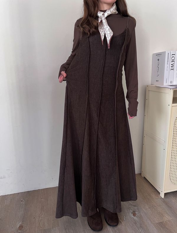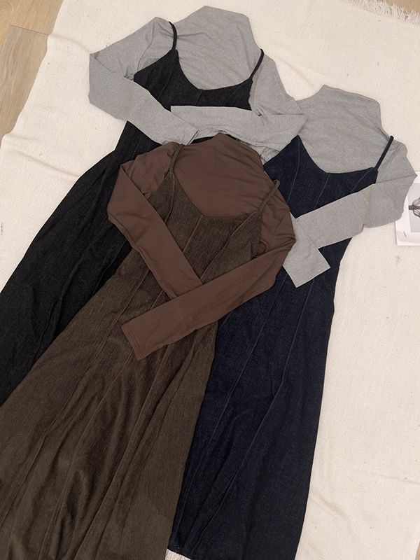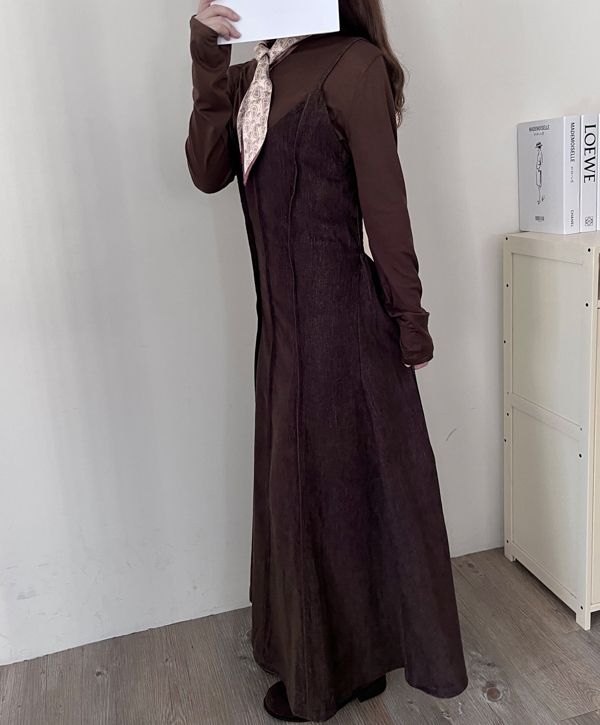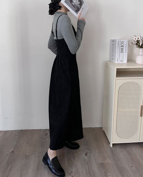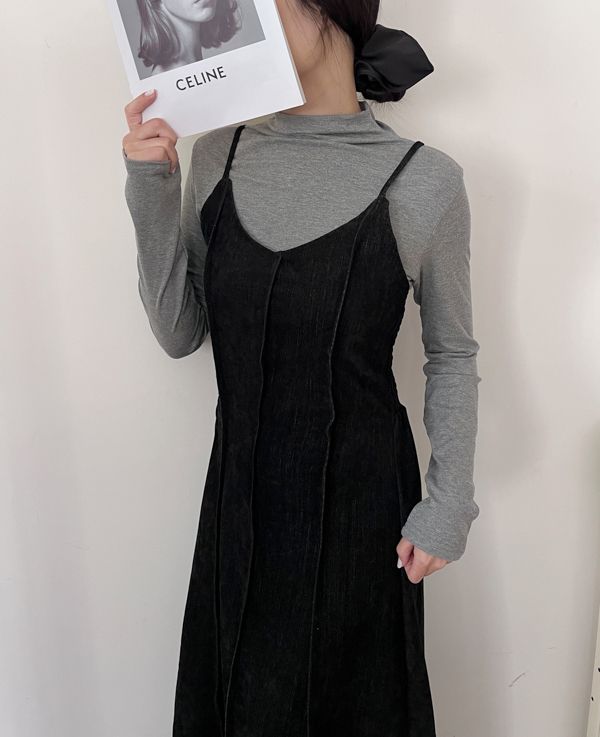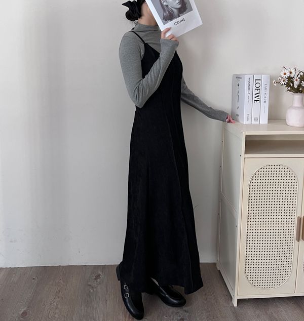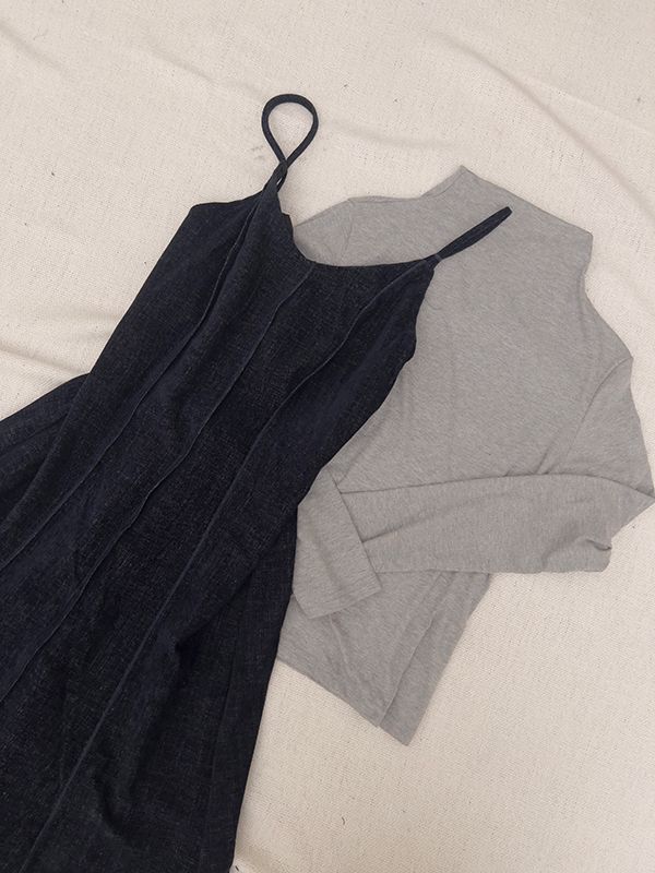 【限量現貨】小復古絨面細肩洋裝+微高領上衣(肩帶可調)