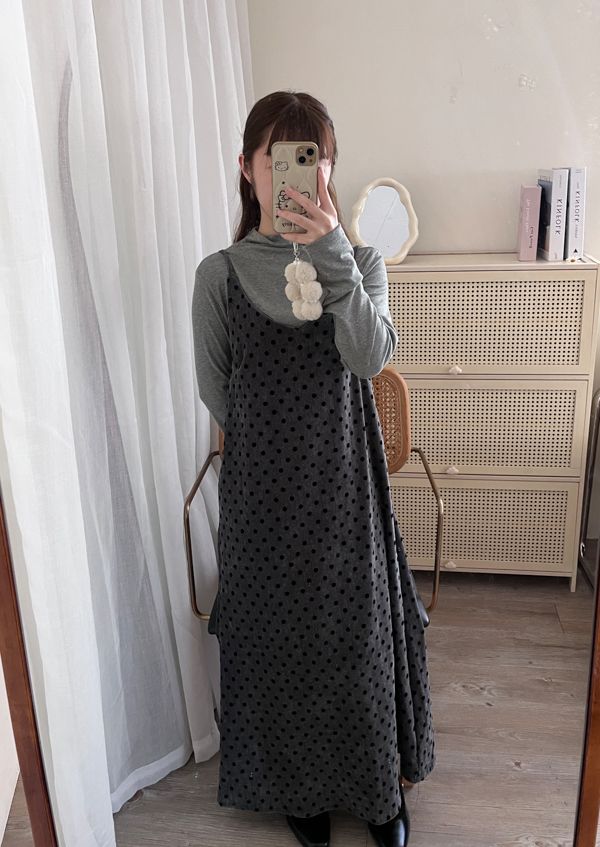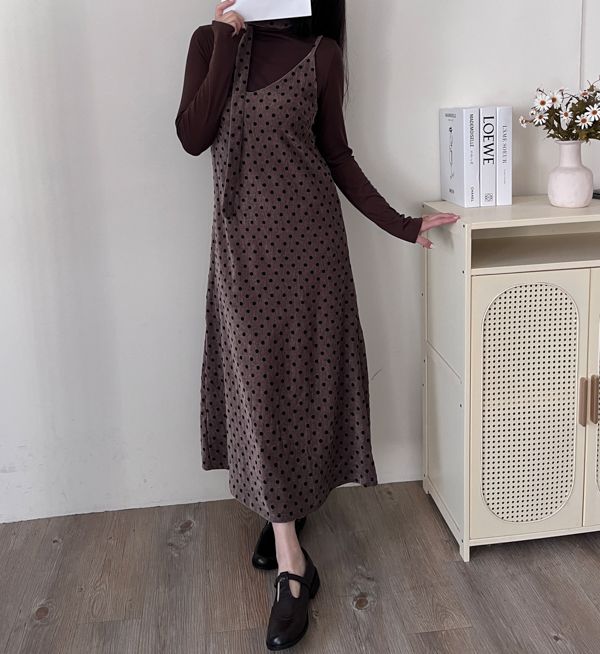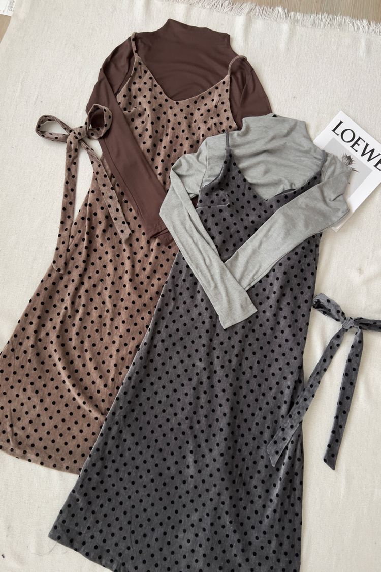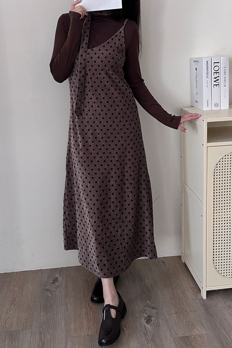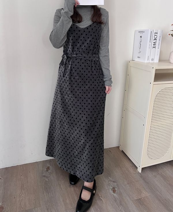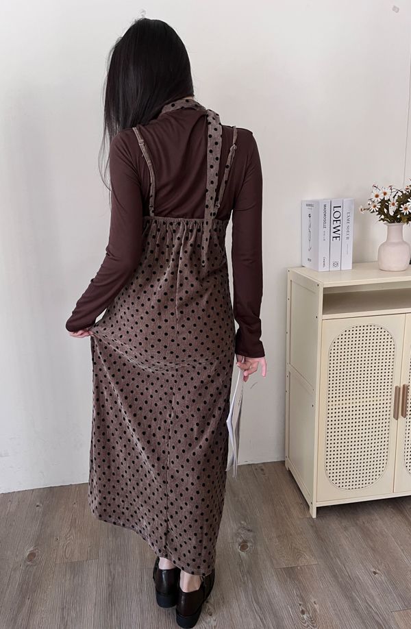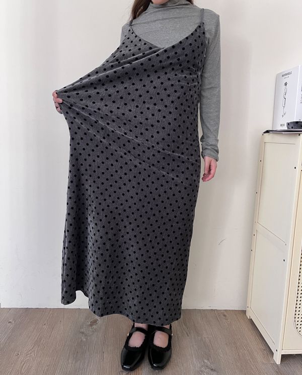 【限量現貨】波點細肩長洋套裝(Tee+長洋/肩帶可調/附綁帶)