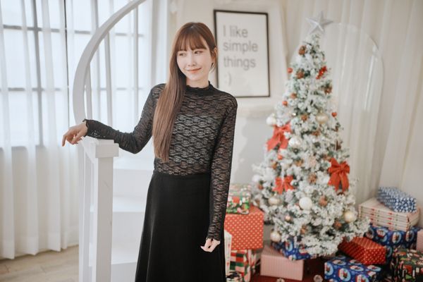 【雙12】小花朵蕾絲紋理透膚上衣*4色