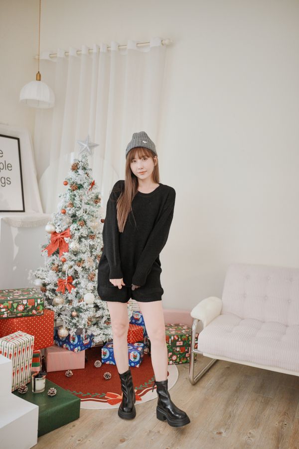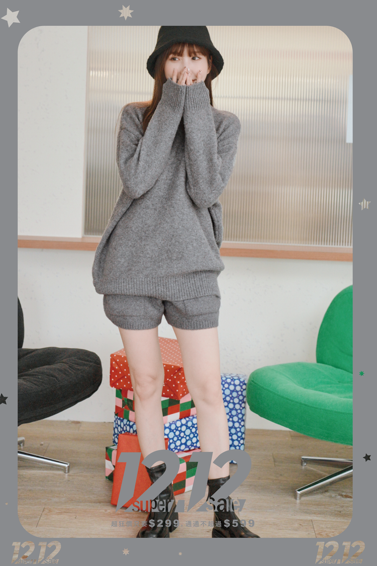 冬季顯瘦針織套裝(上衣+短褲)*4色