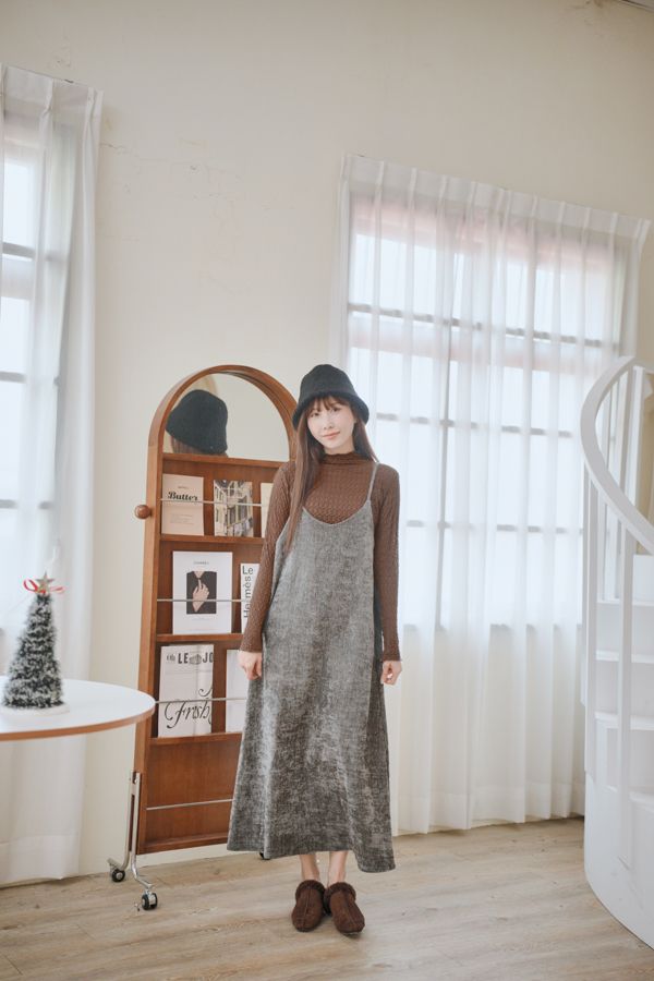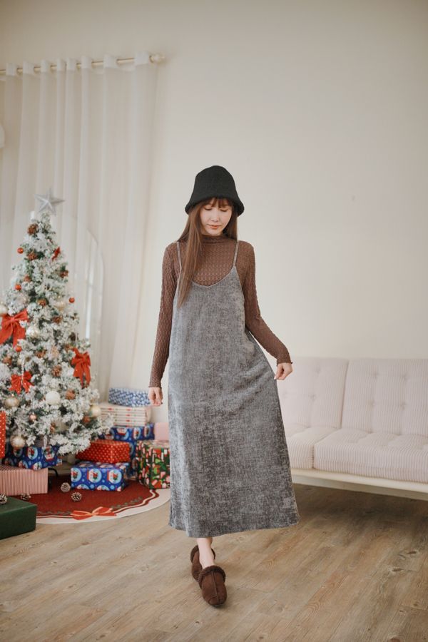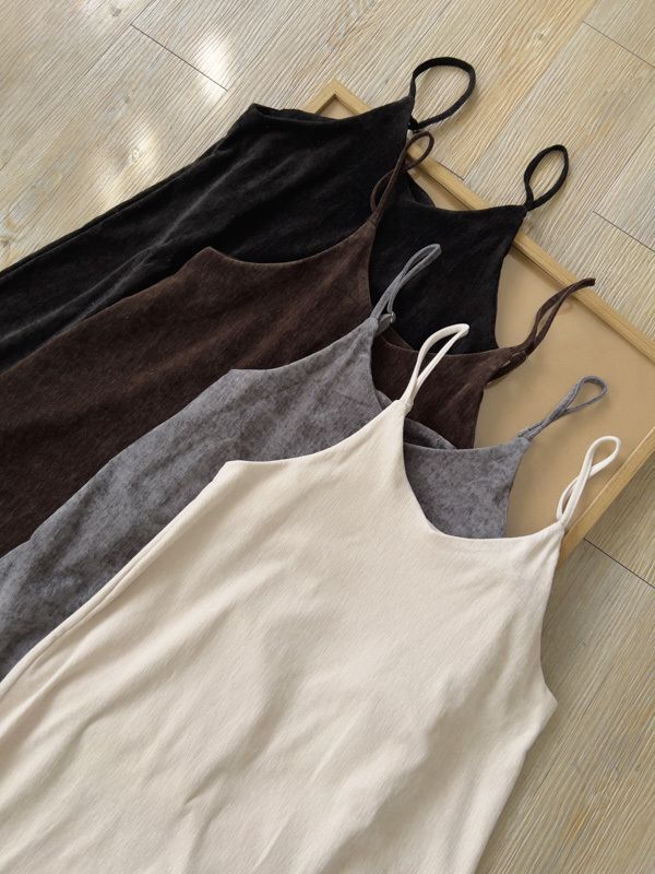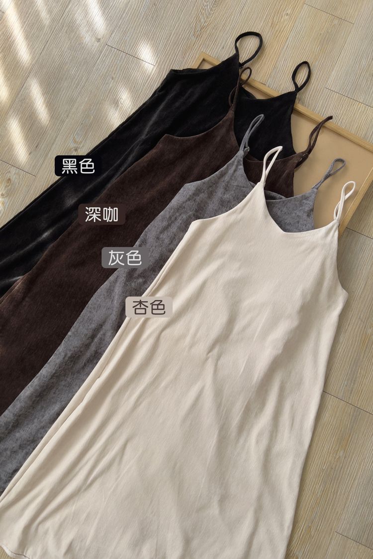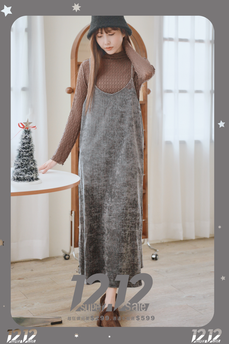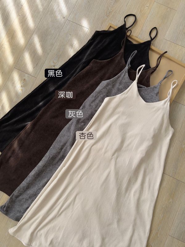 【雙12】氣質純色細肩短絨長洋(肩帶可調)*4色