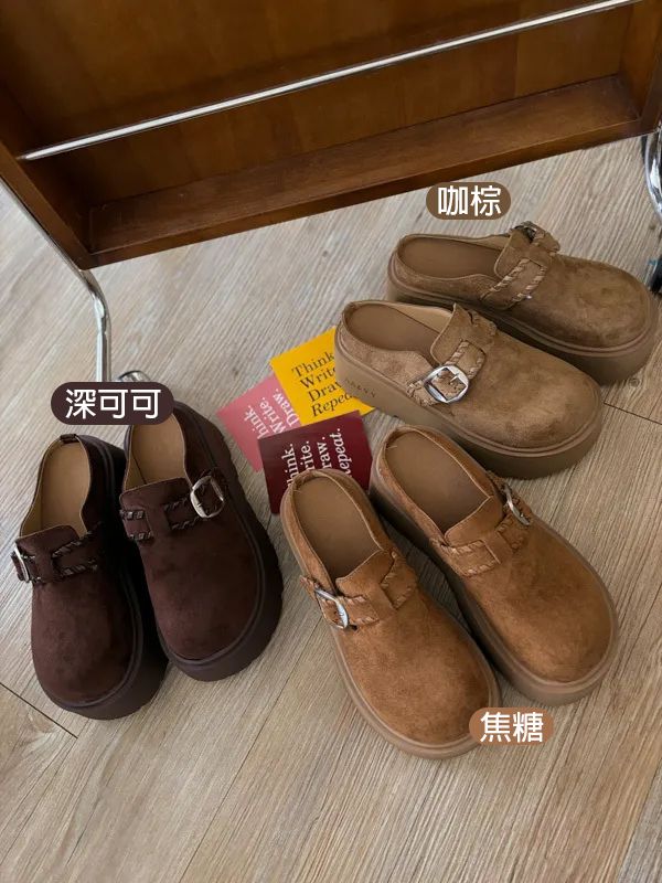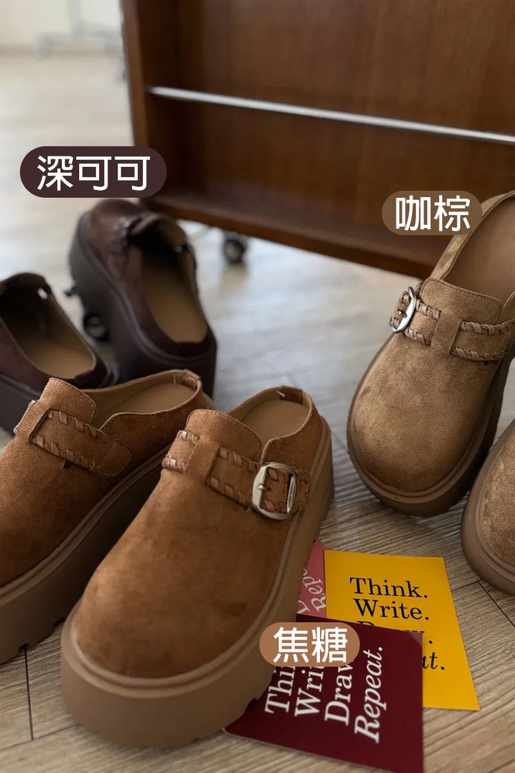 圓頭麂皮編織厚底拖鞋*3色