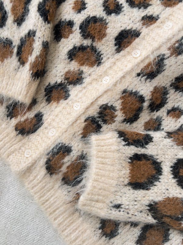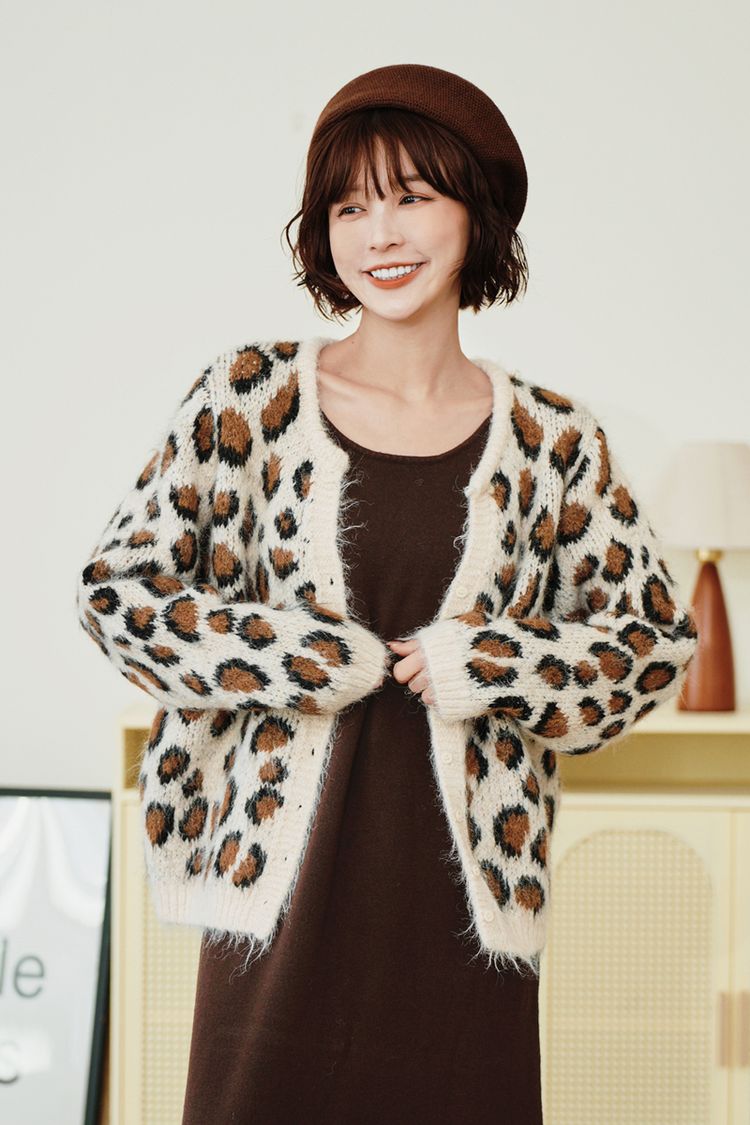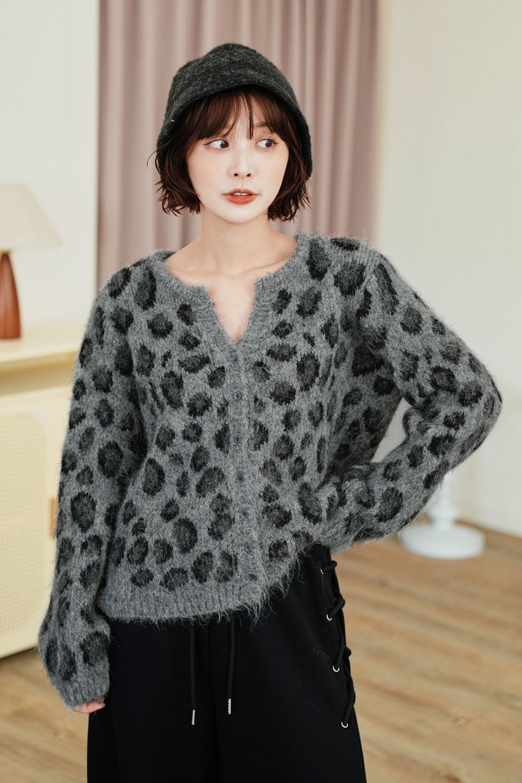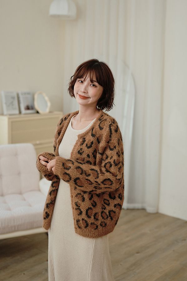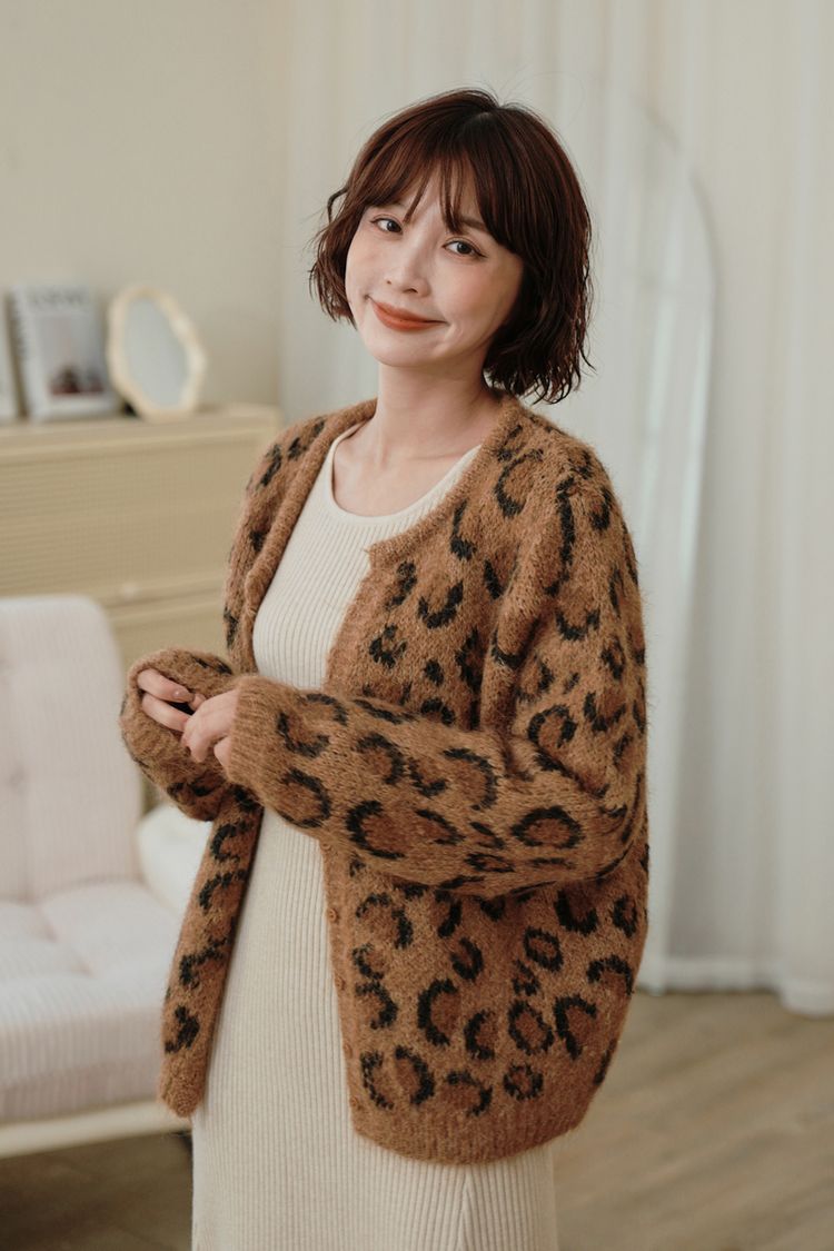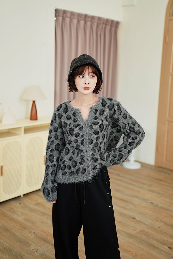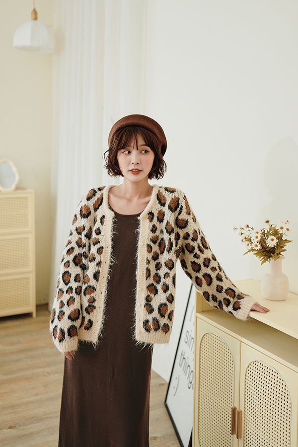 【東京旅拍】毛毛豹紋小V針織外套*3色