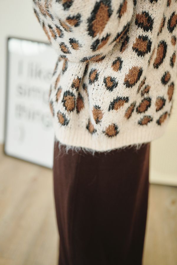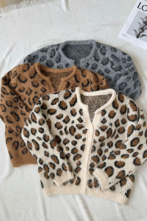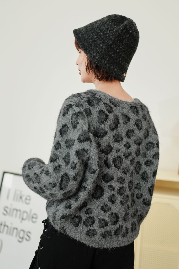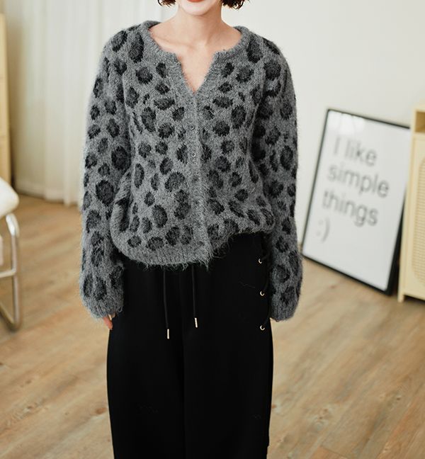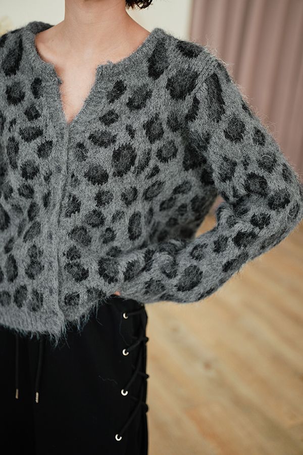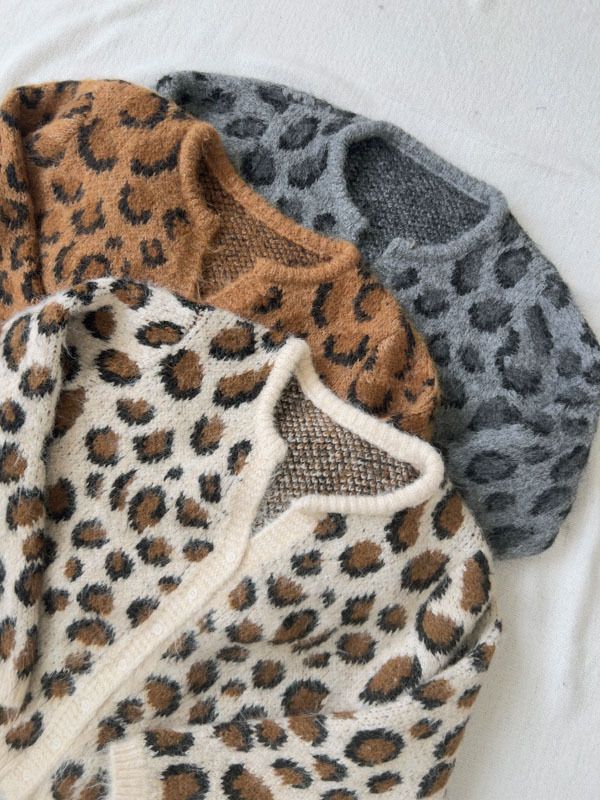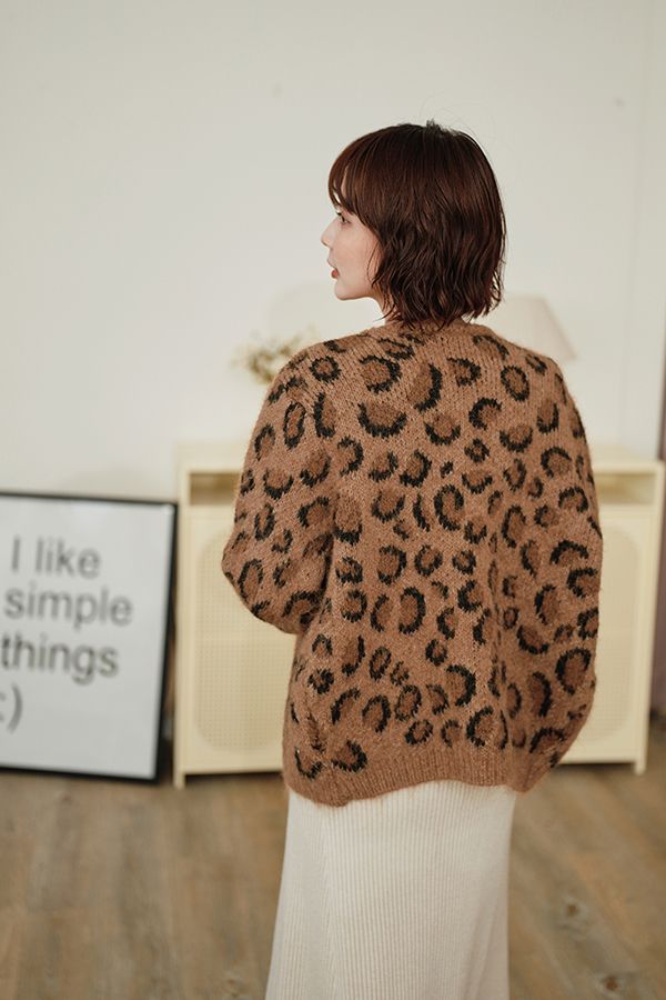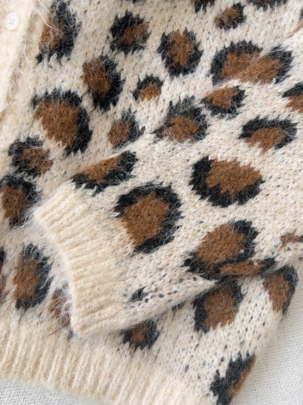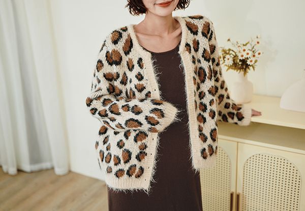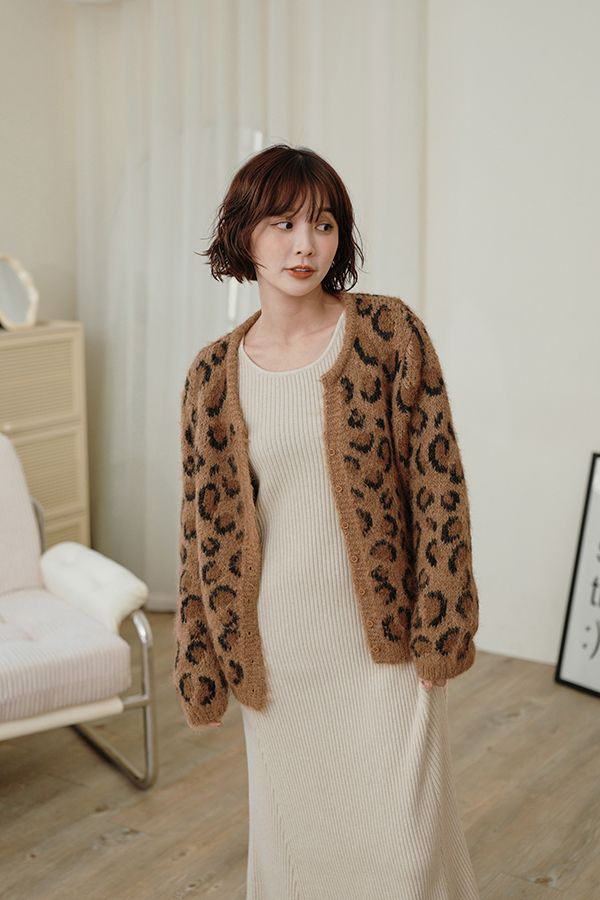 【東京旅拍】毛毛豹紋小V針織外套*3色