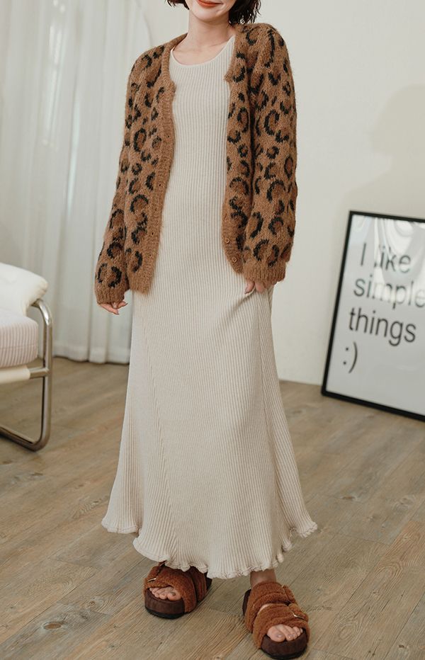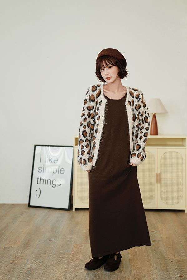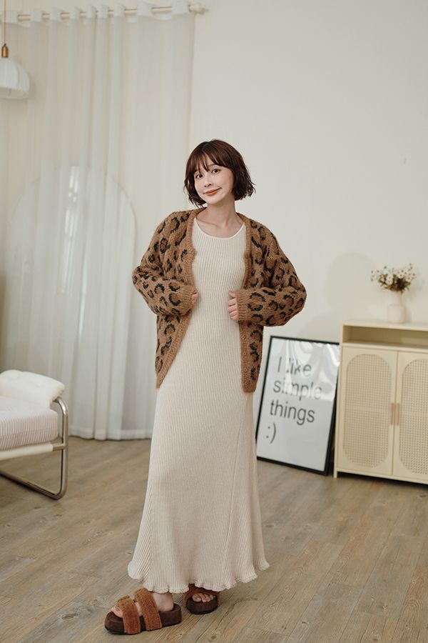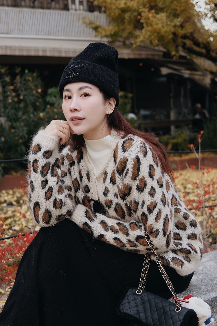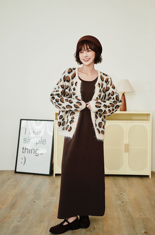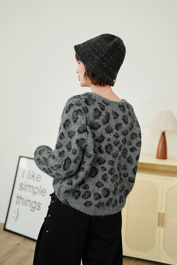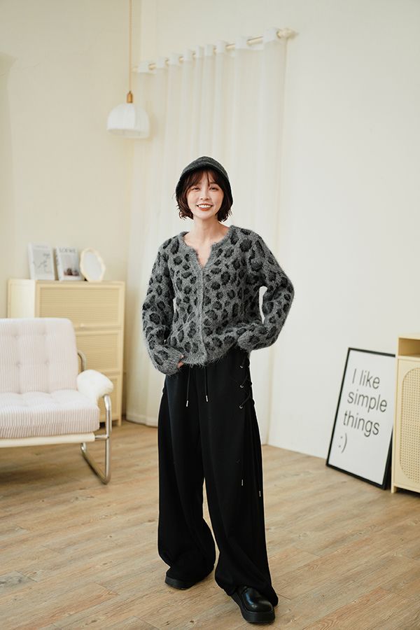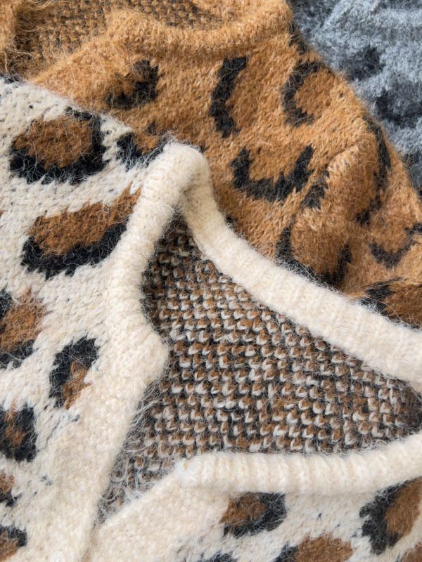 【東京旅拍】毛毛豹紋小V針織外套*3色