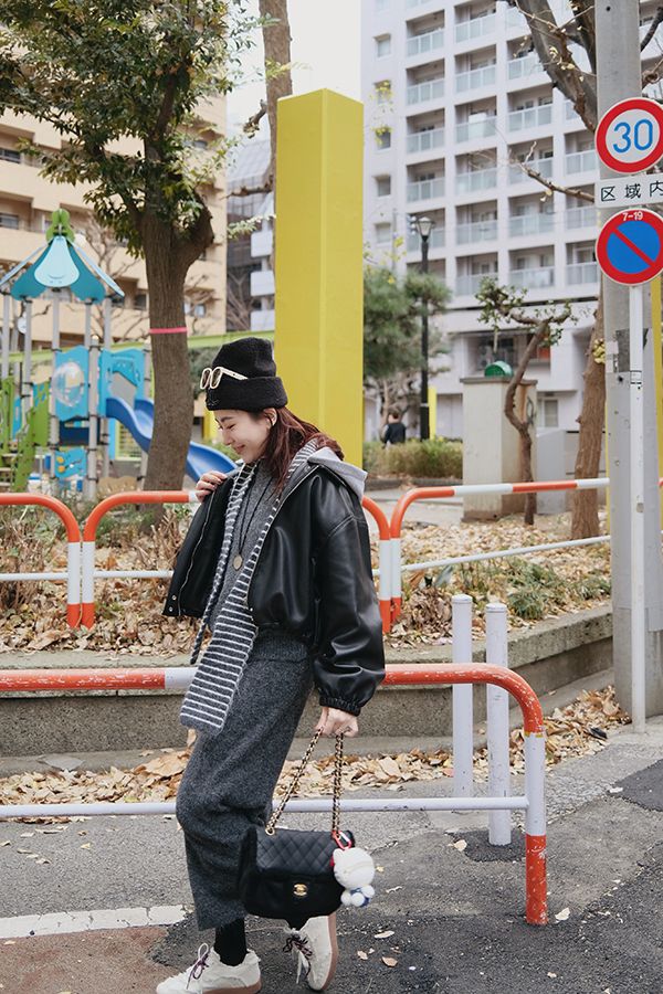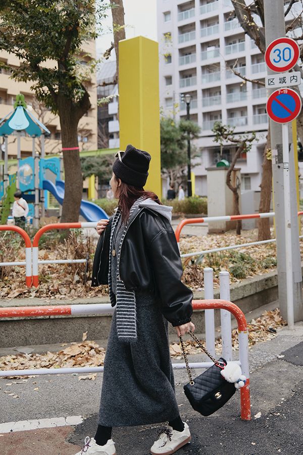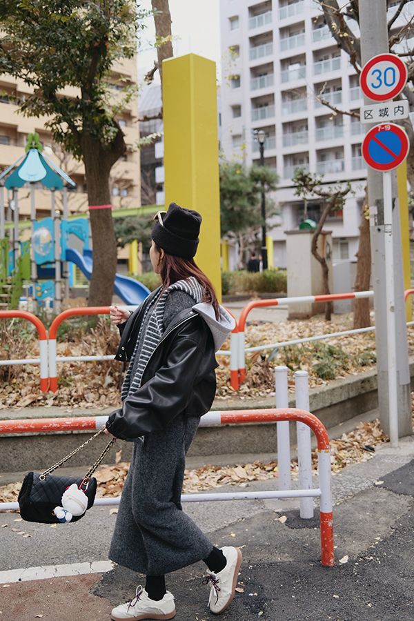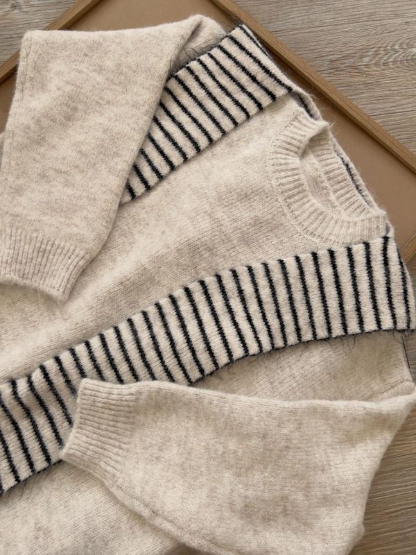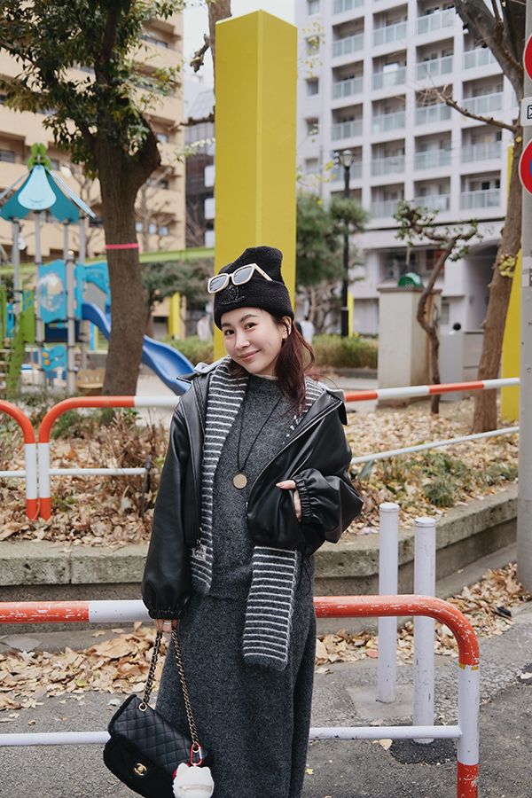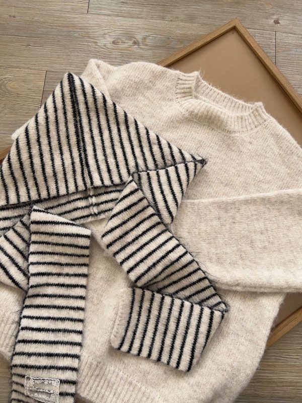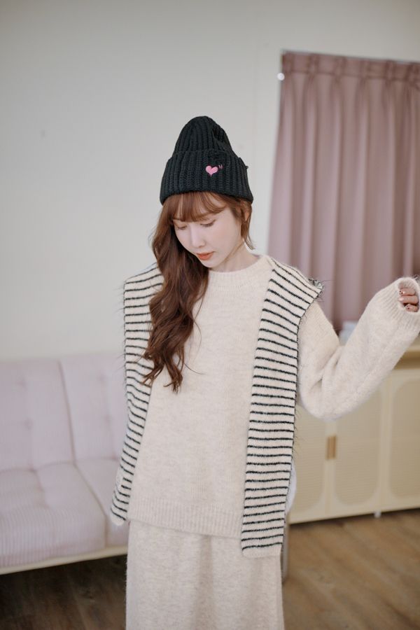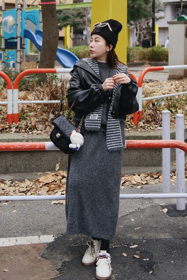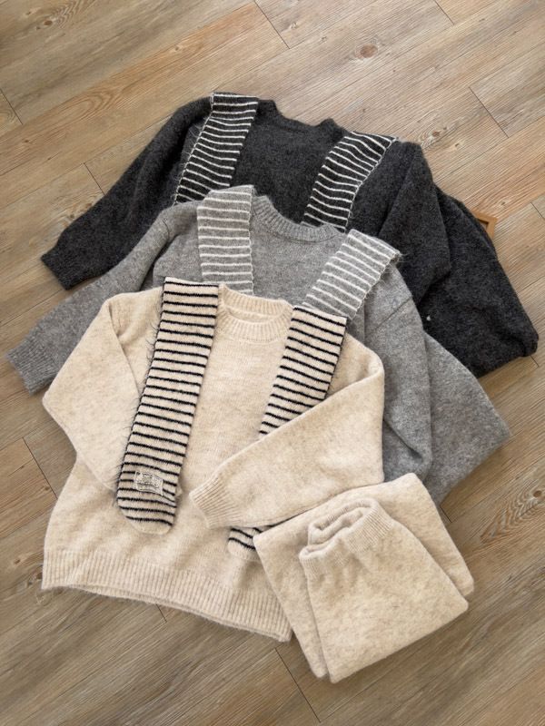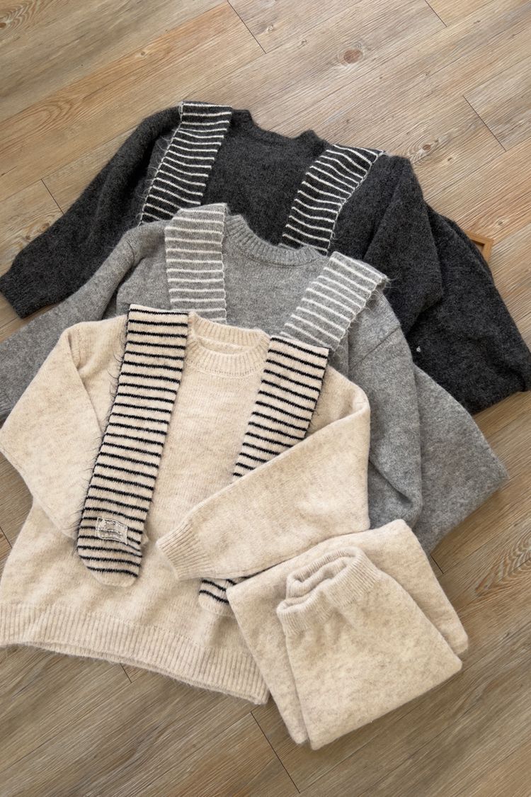【東京旅拍】氣質針織套裝(連帽條紋披肩+上身+長裙)*3色