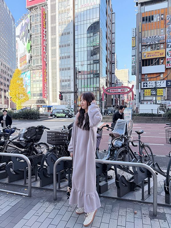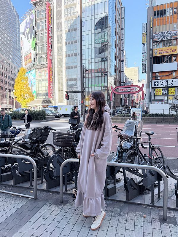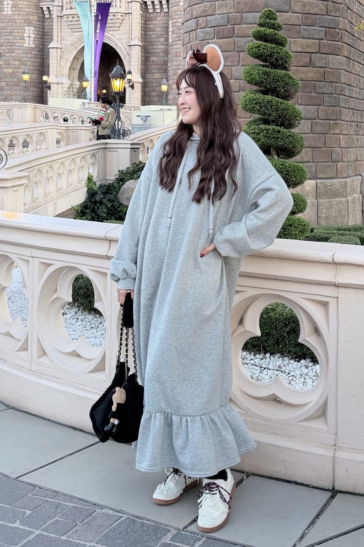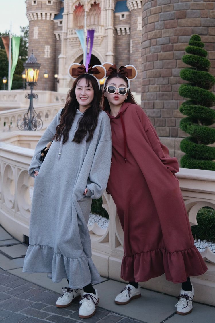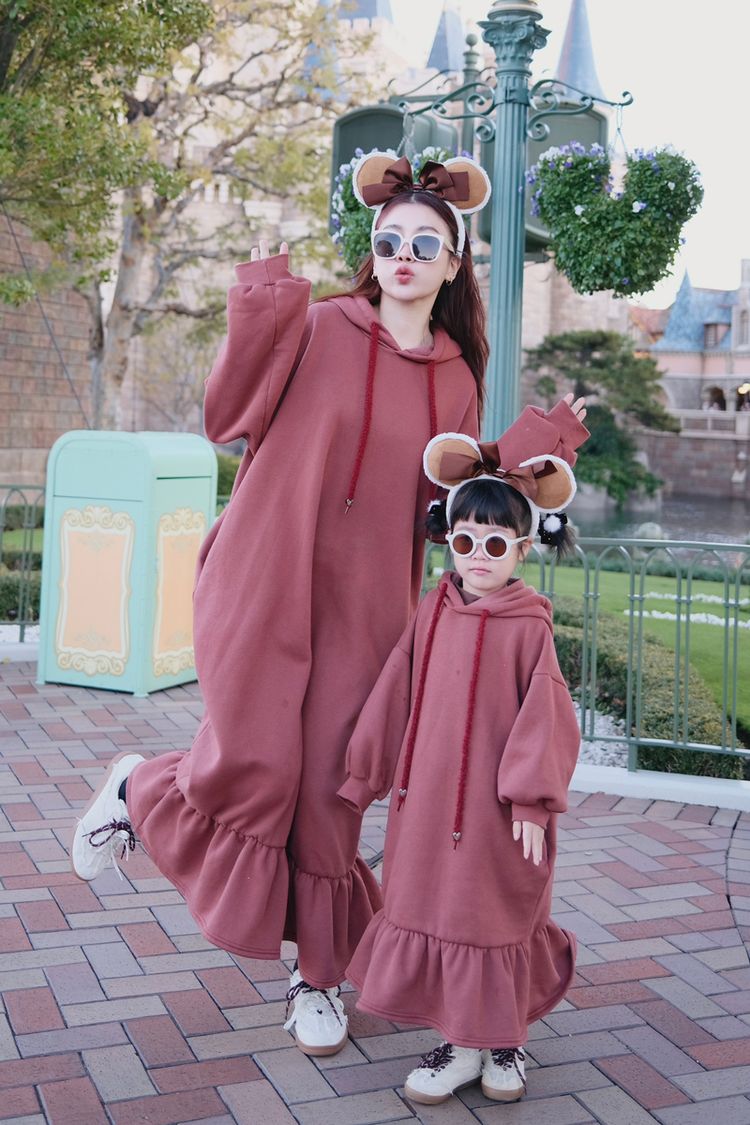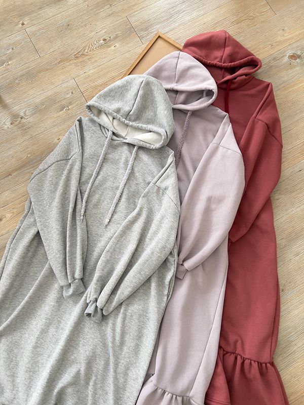 H自訂-絨絨抽繩連帽荷葉長洋(大人款)