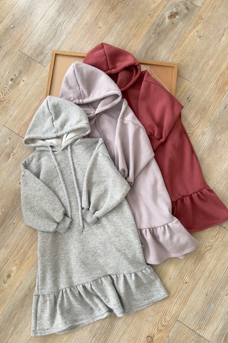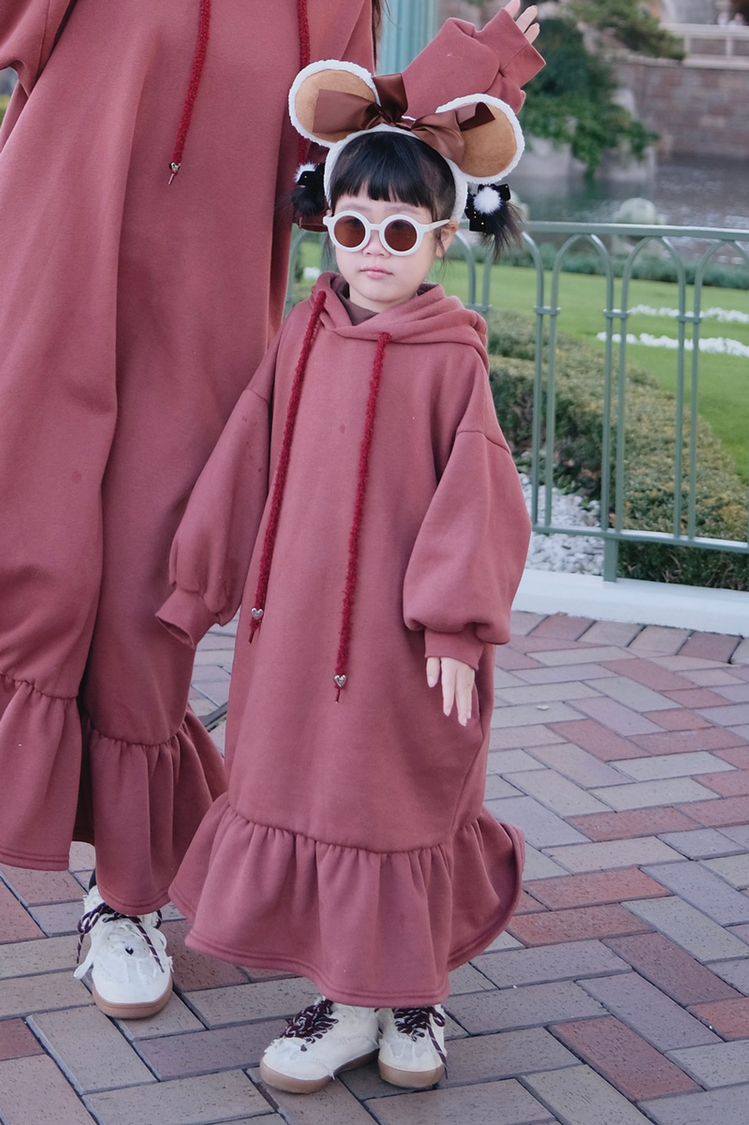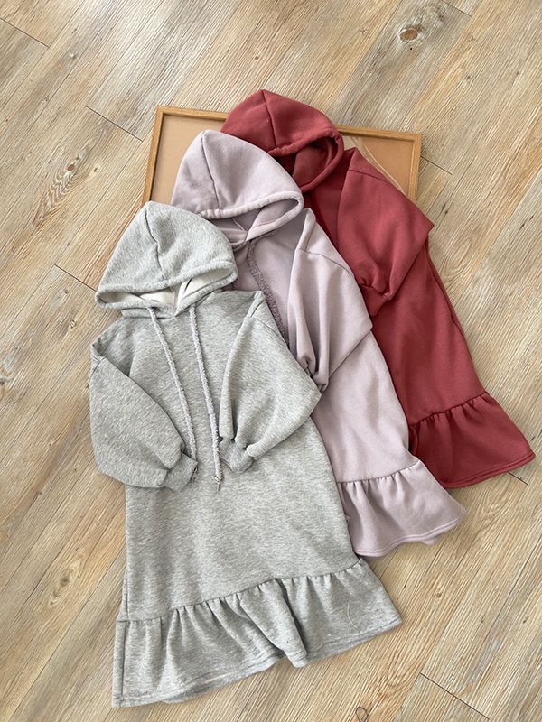 H自訂-絨絨抽繩連帽荷葉長洋(小孩款)*3色