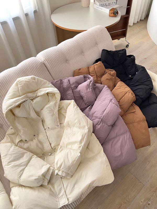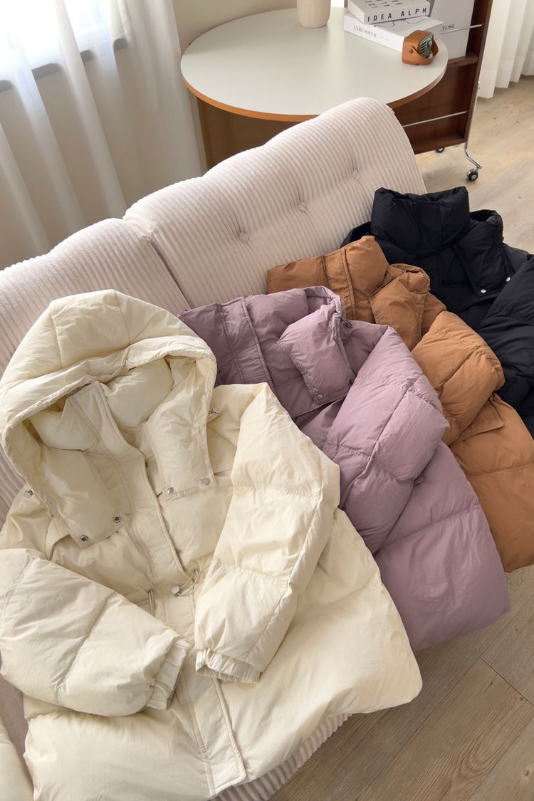 輕盈腰抽繩立領90%鴨絨連帽外套(帽可拆)*4色