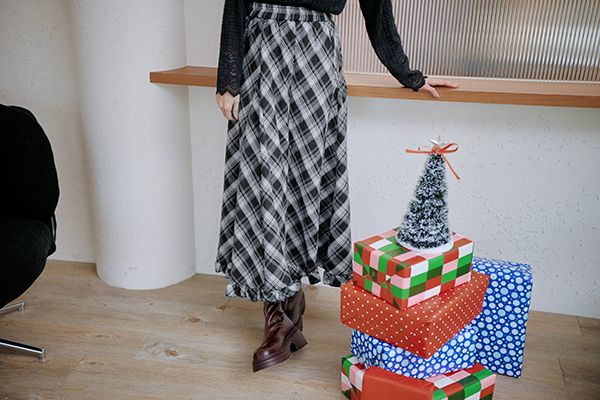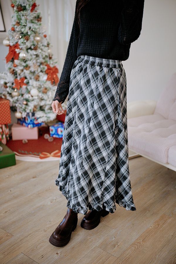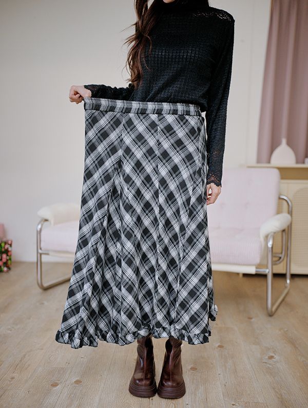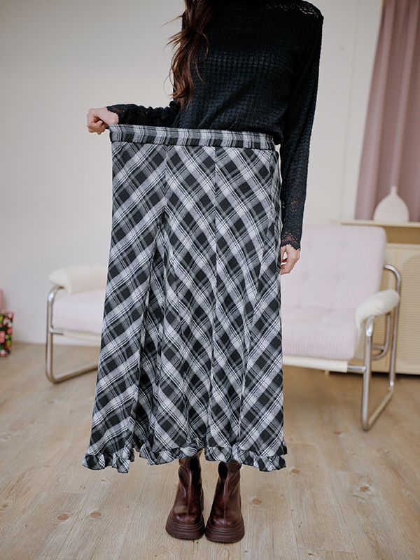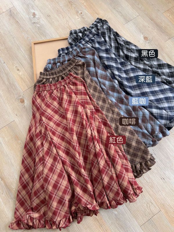 氣質歐膩的格紋荷葉長裙(全鬆緊)*5色