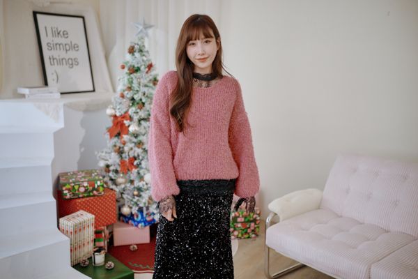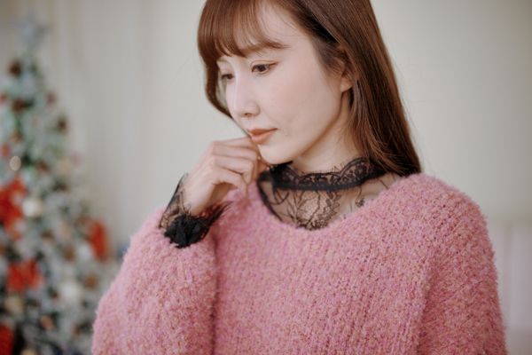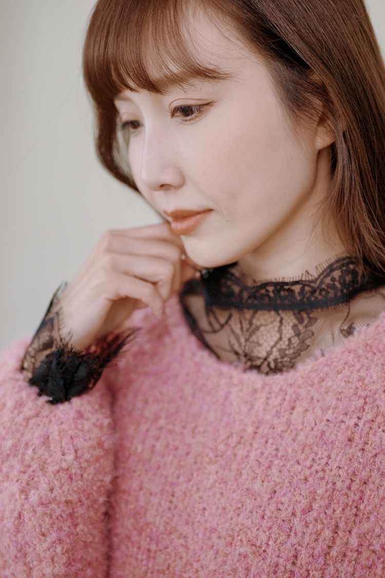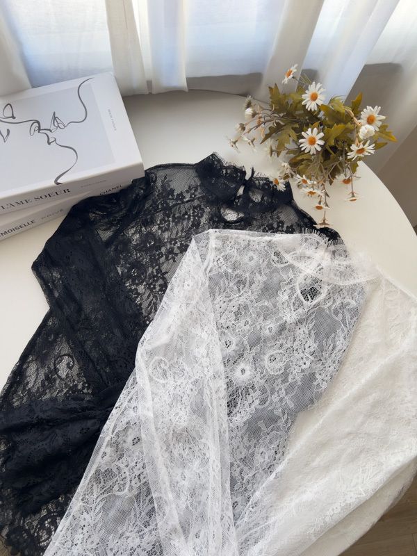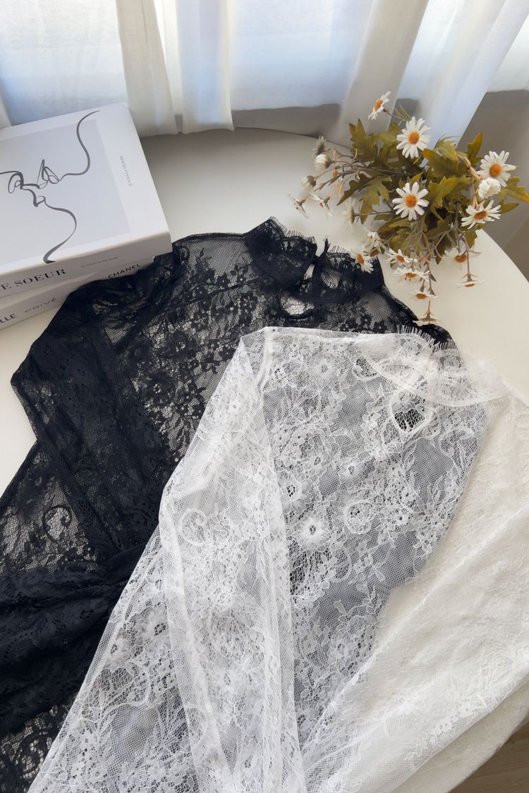 高領睫毛蕾絲透膚上衣*2色