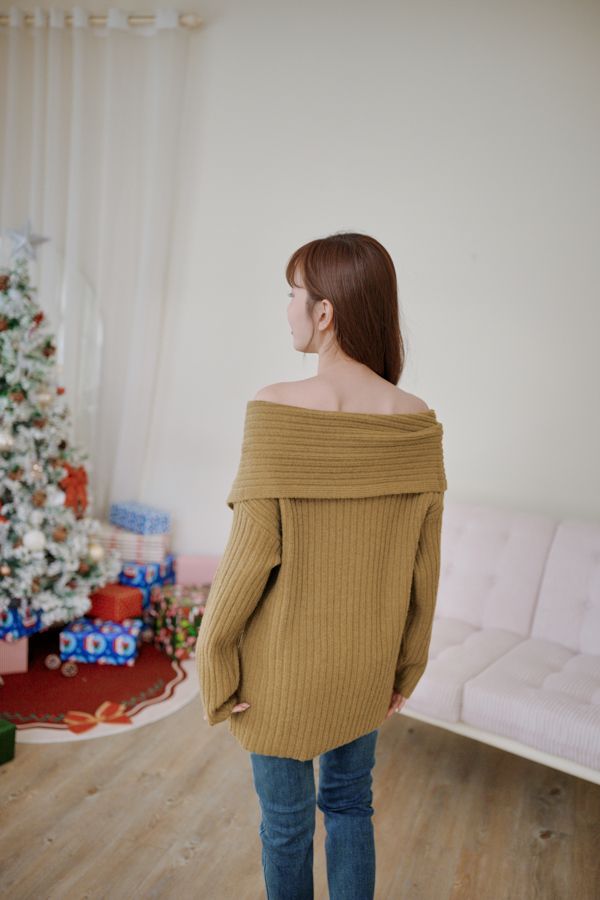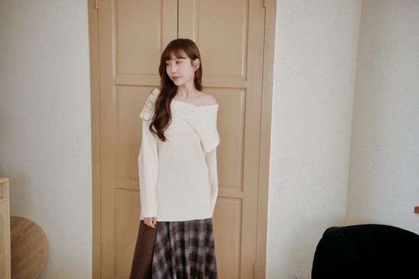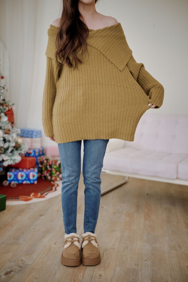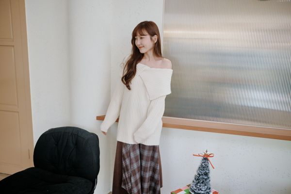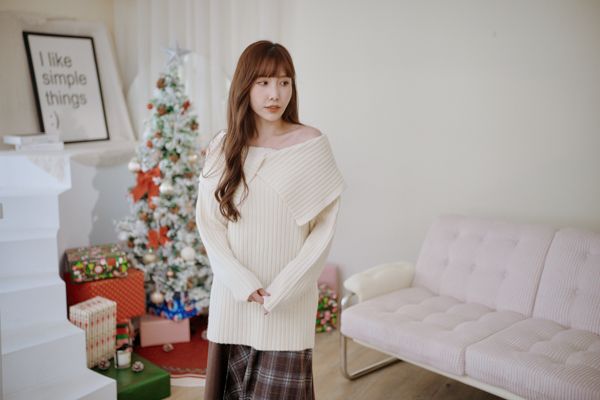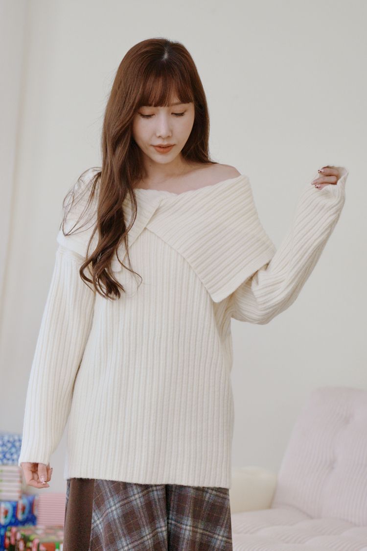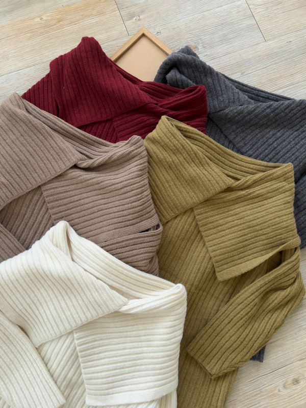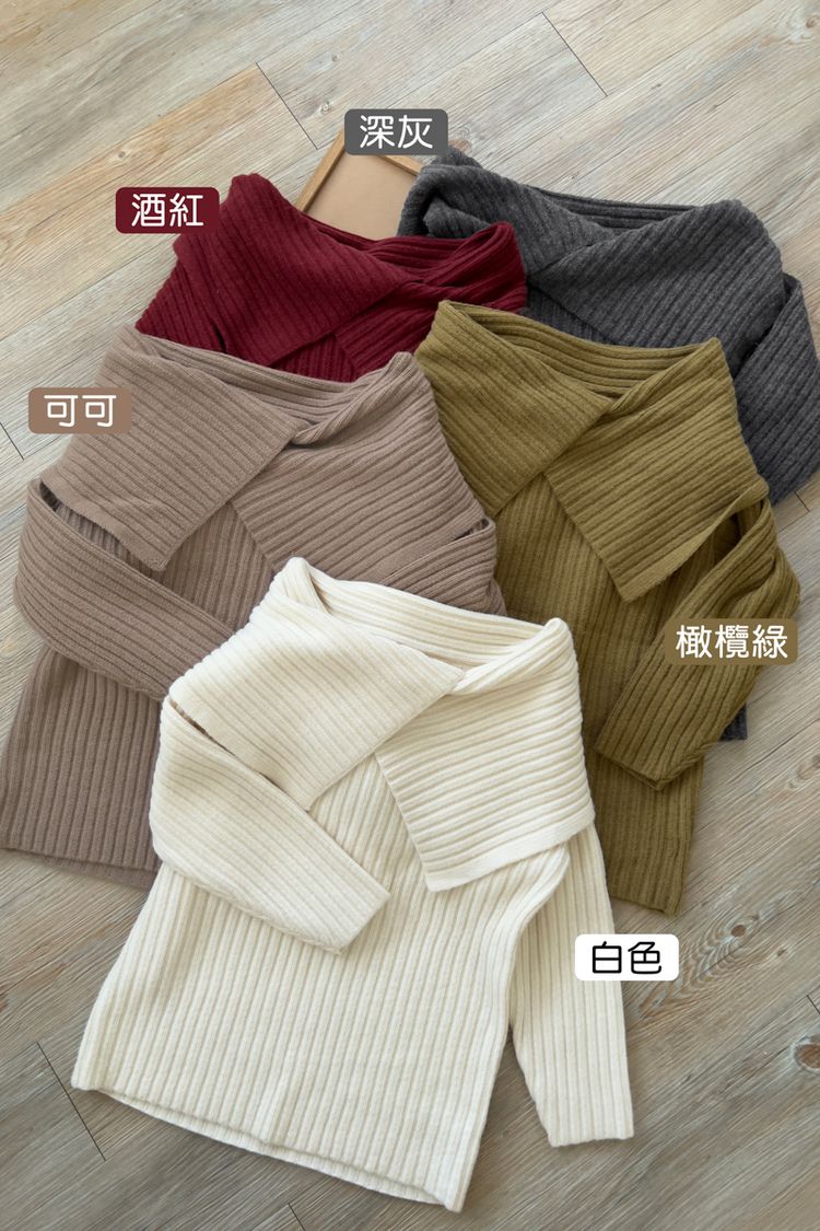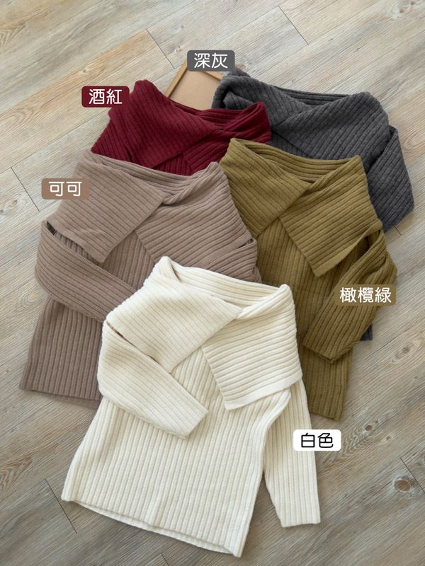 大翻領坑紋針織上衣(可平肩)*5色