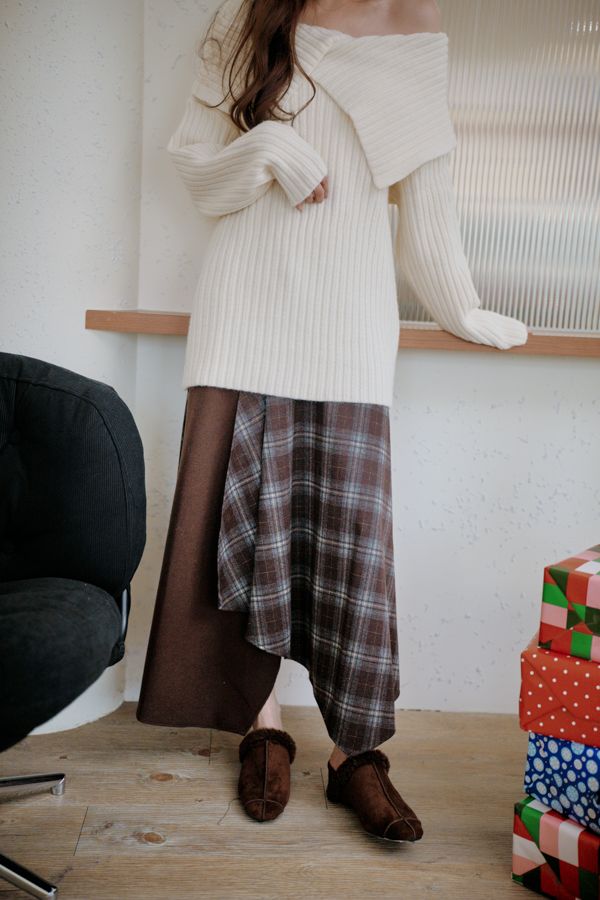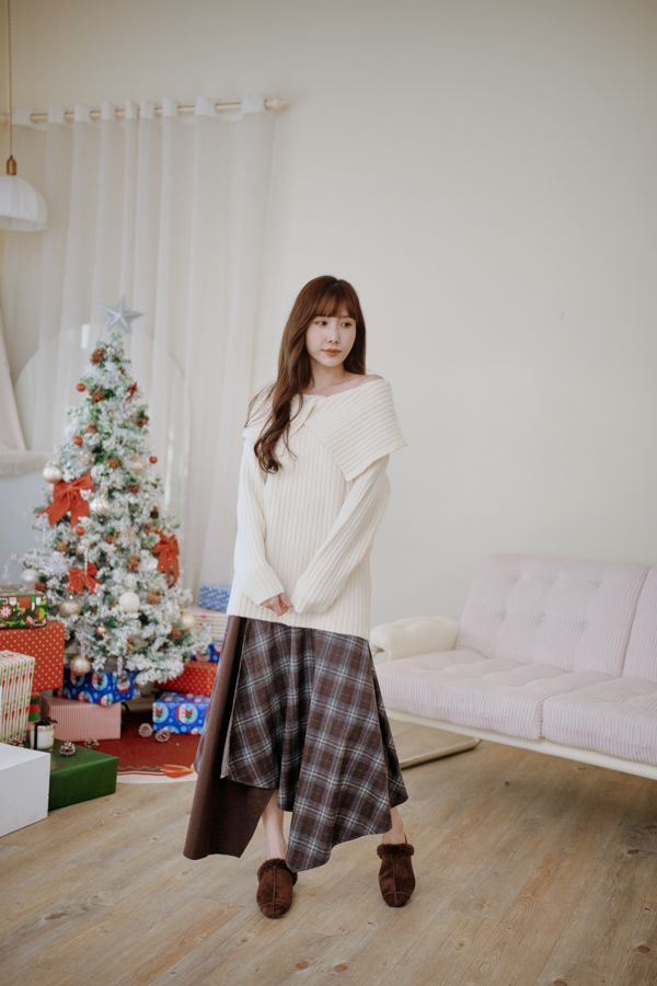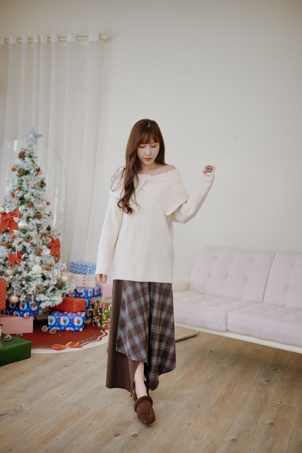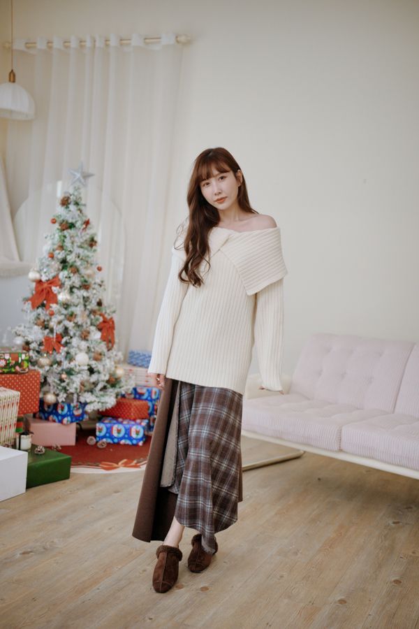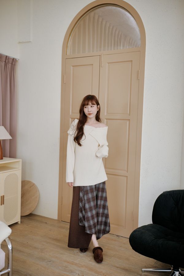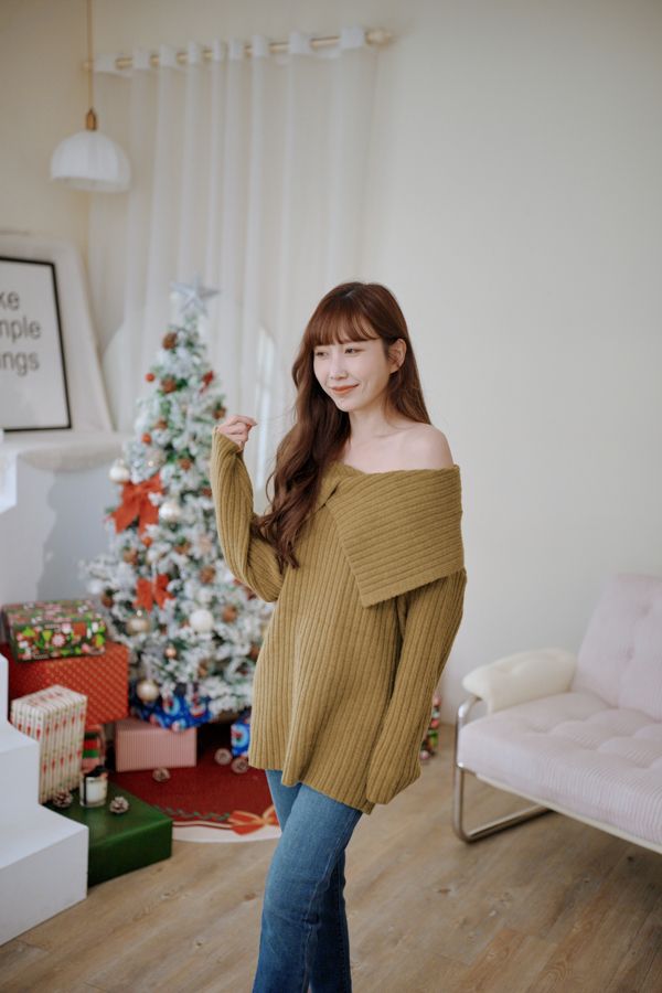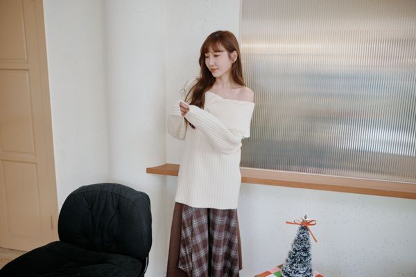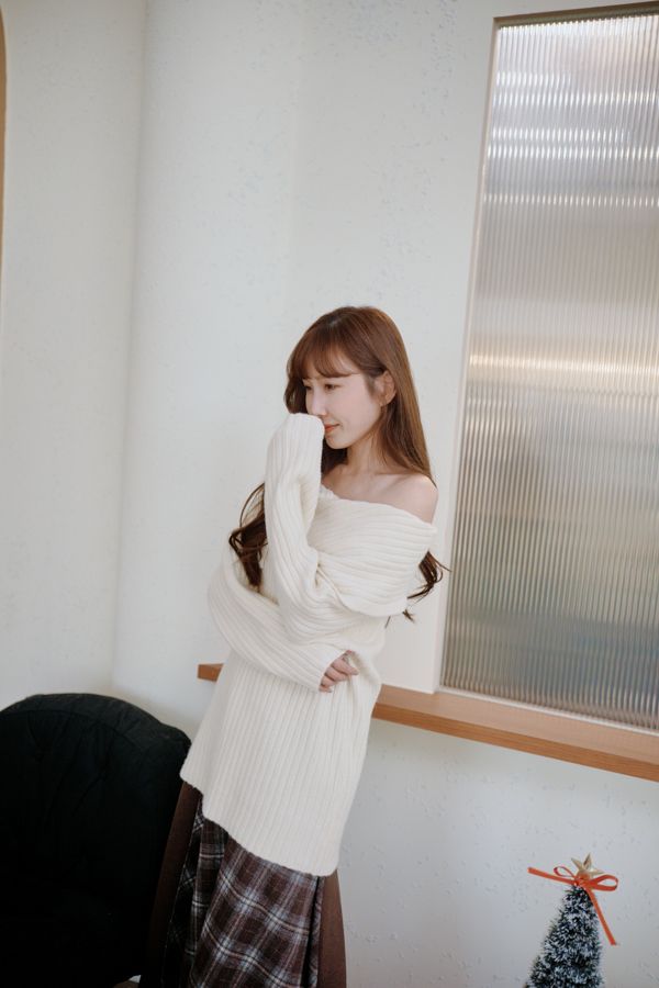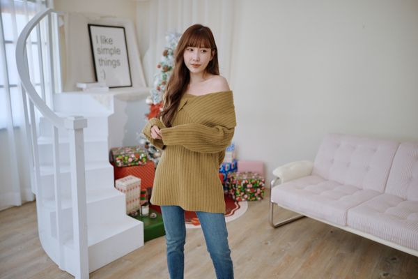 大翻領坑紋針織上衣(可平肩)*5色