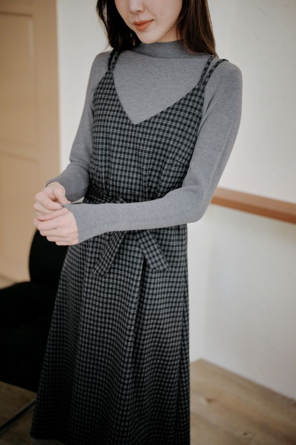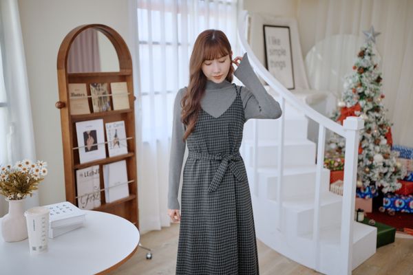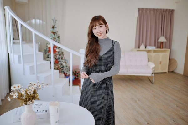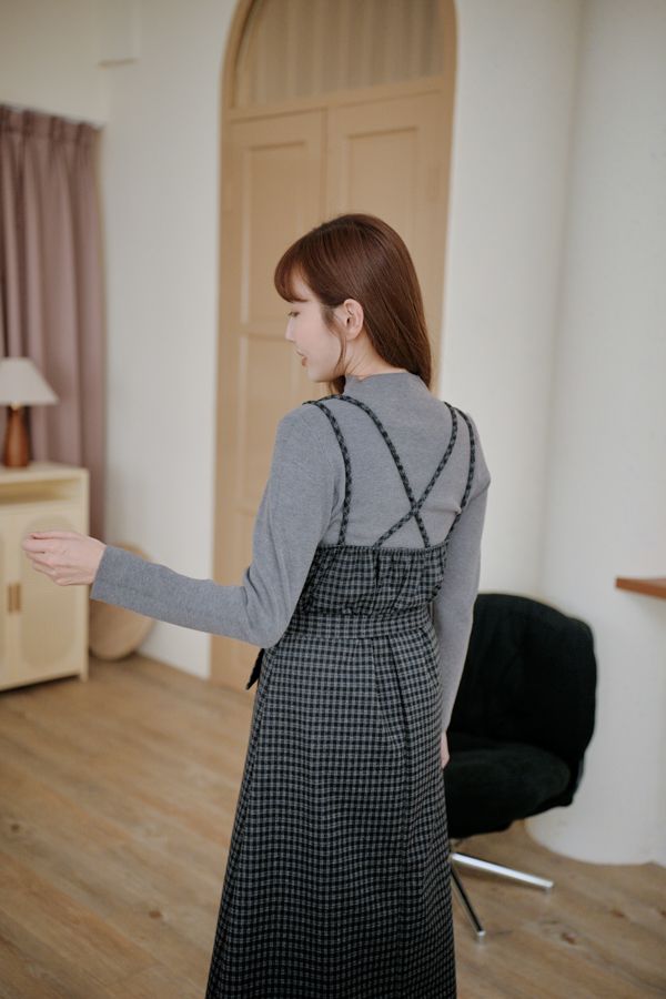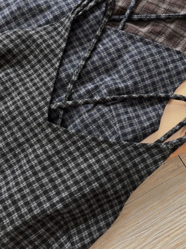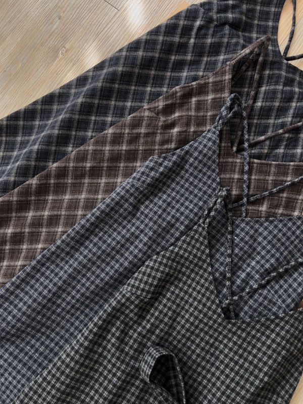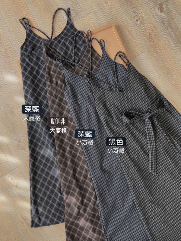 交叉細肩格紋長洋(肩可調/附綁帶)*4色
