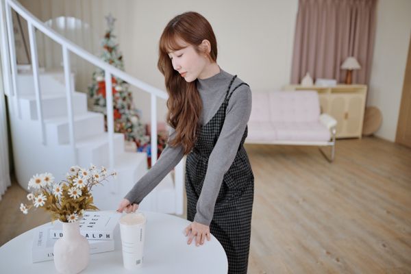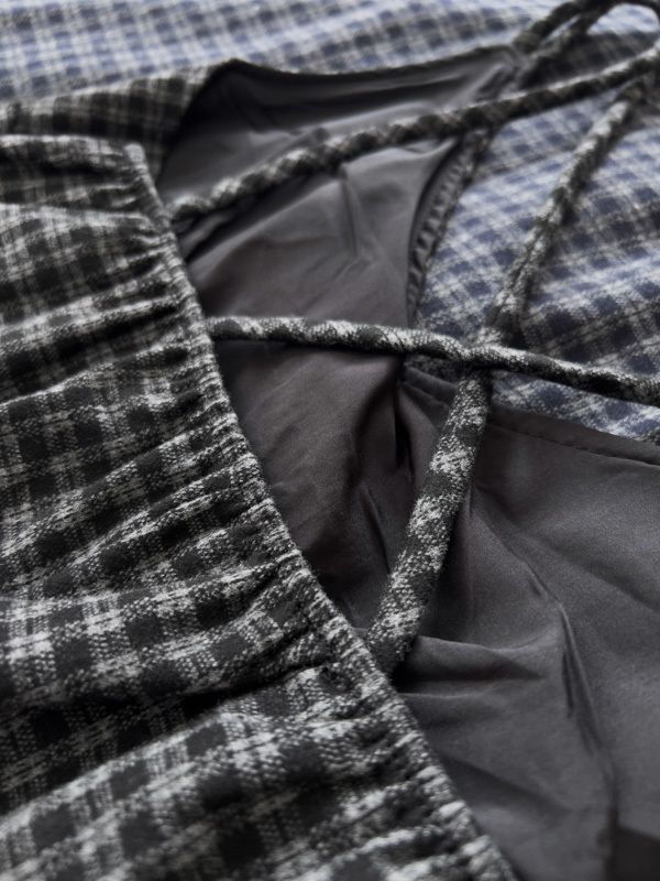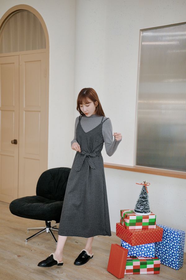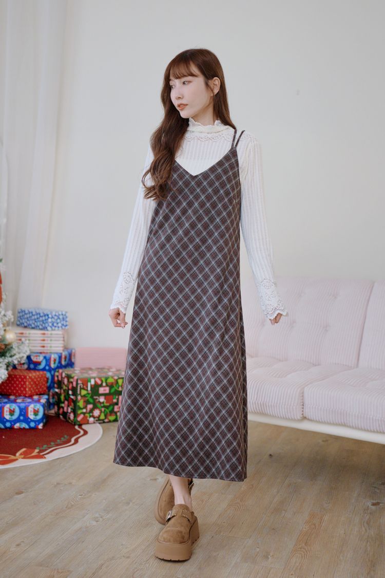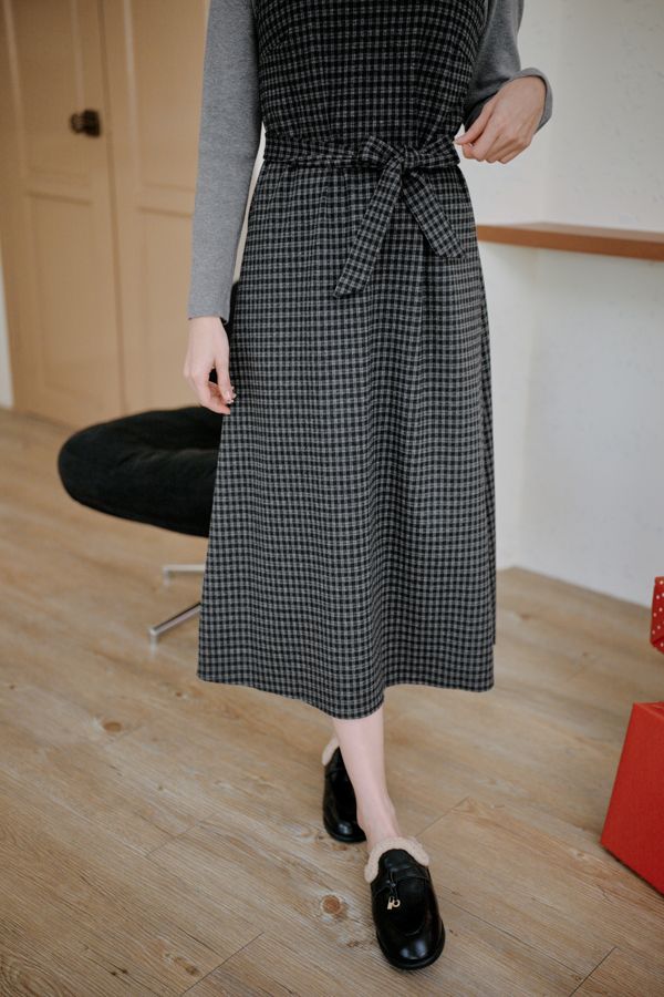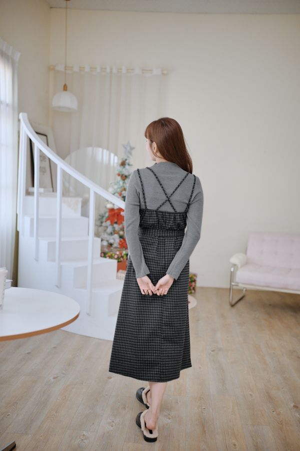 交叉細肩格紋長洋(肩可調/附綁帶)*4色