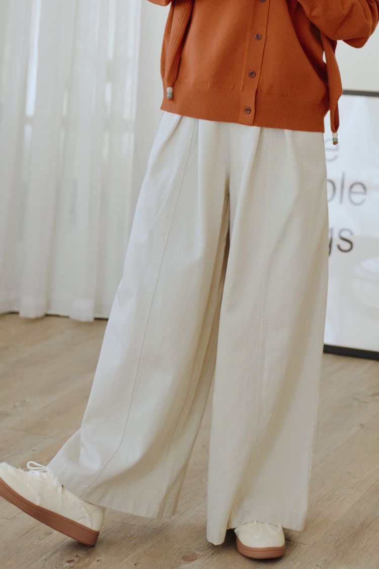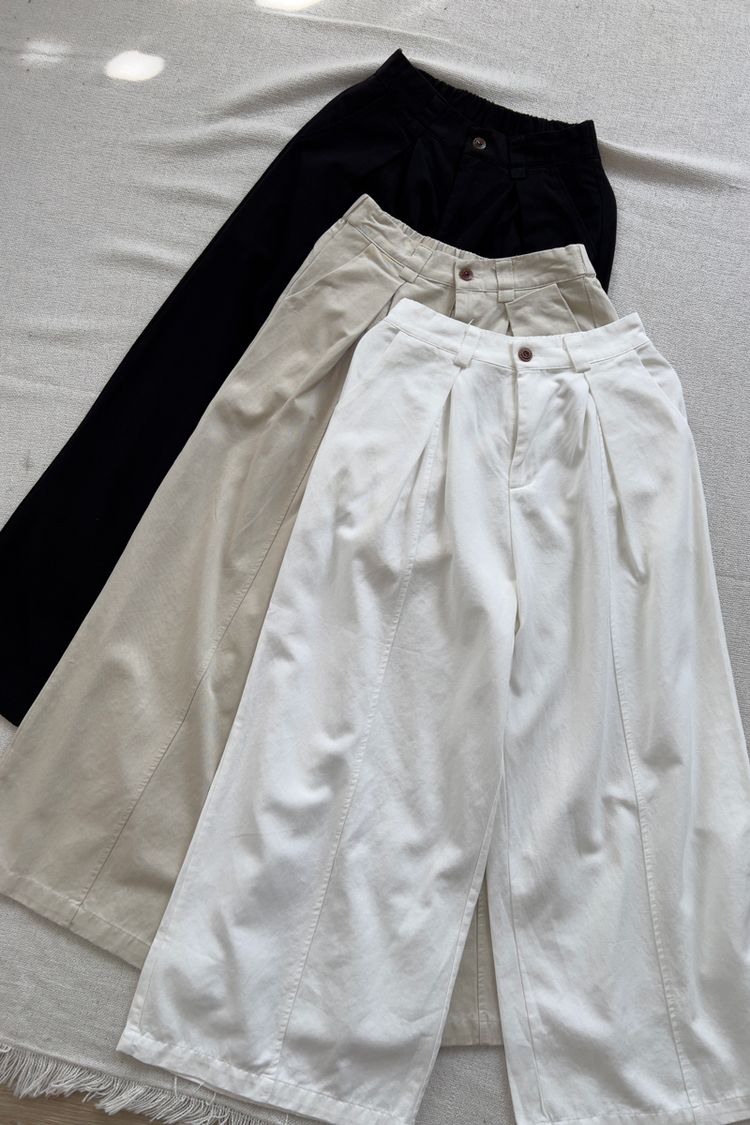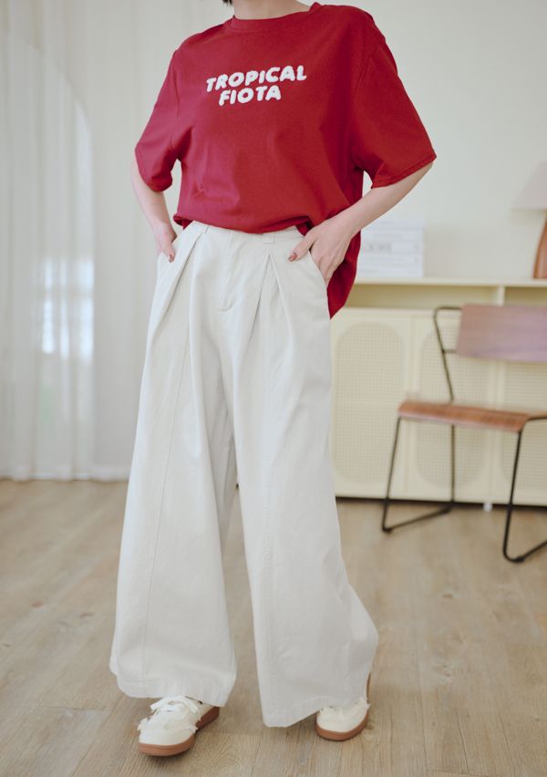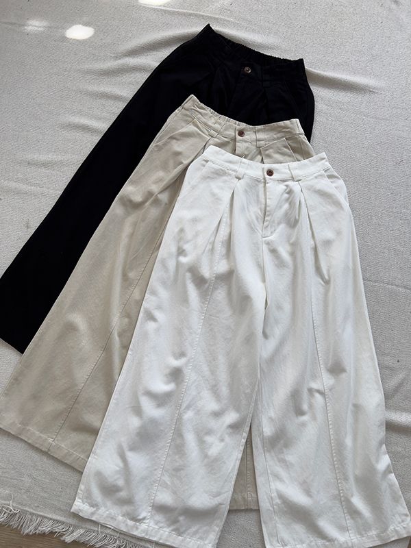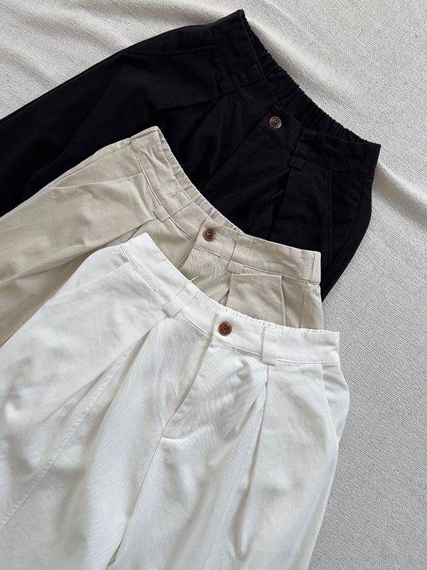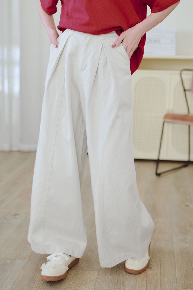都會抓褶中線後鬆緊長褲*3色
