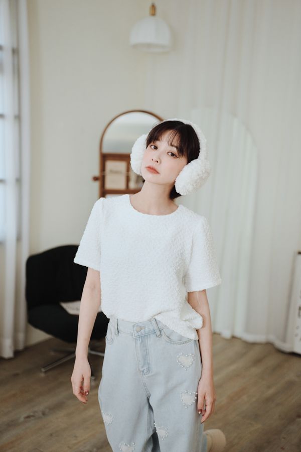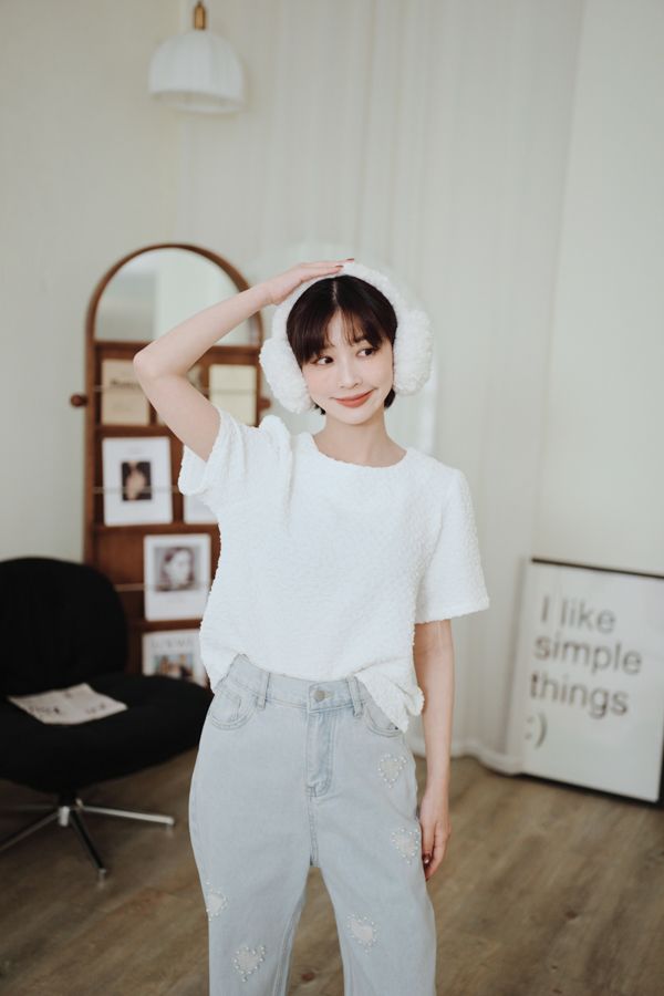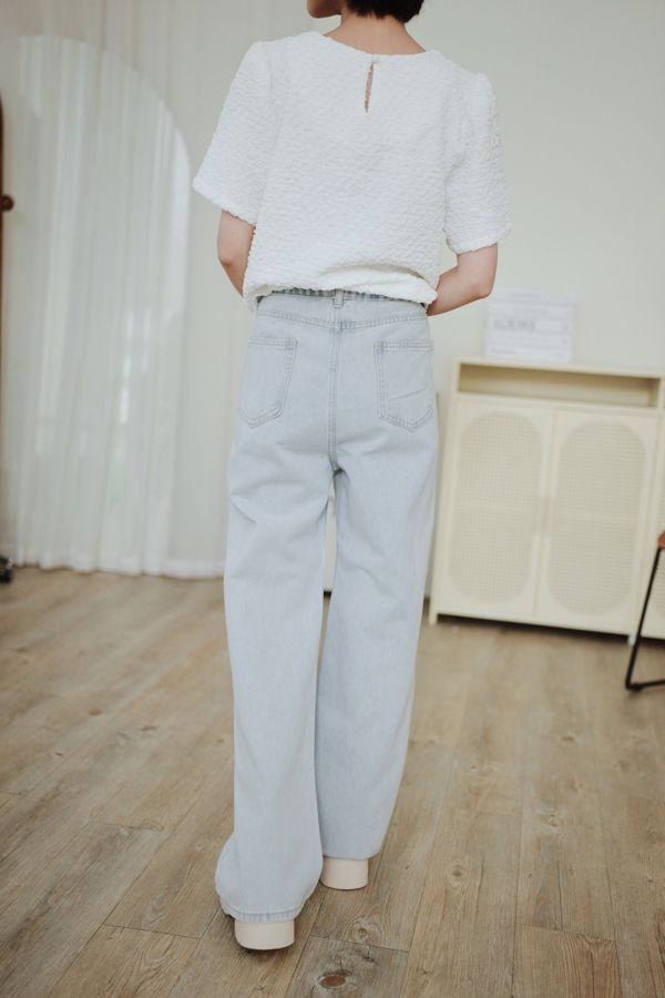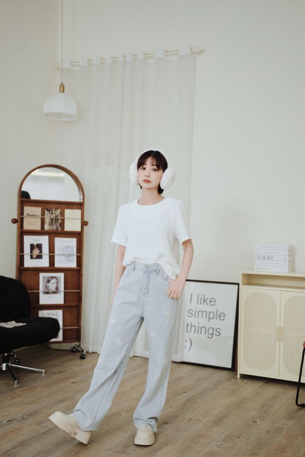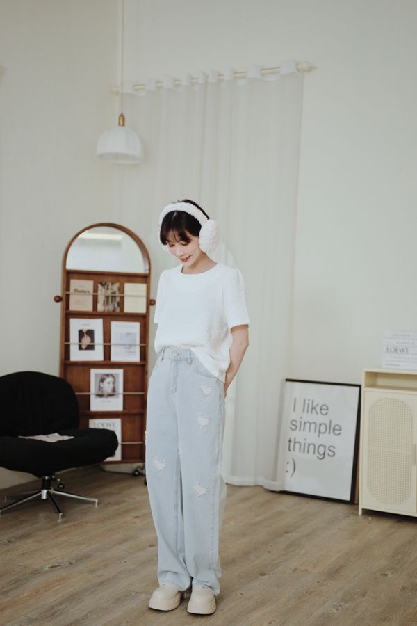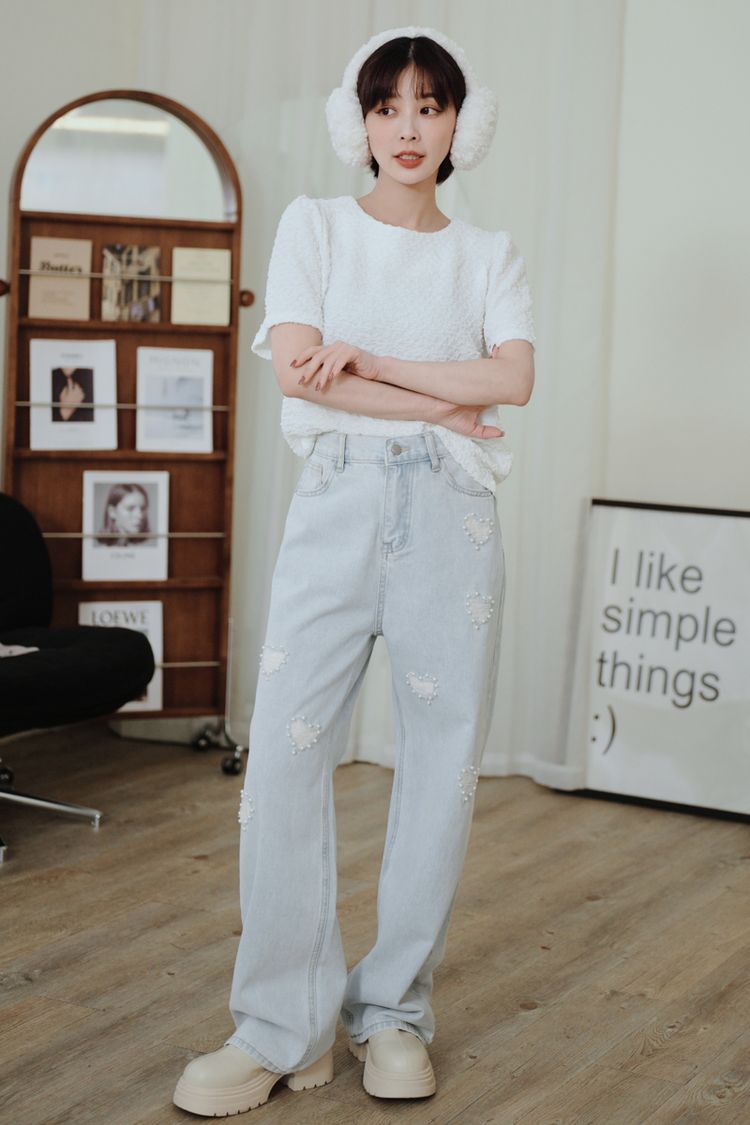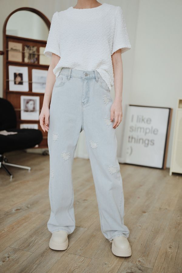 愛心珍珠刷破牛仔寬褲*2色(後鬆緊)