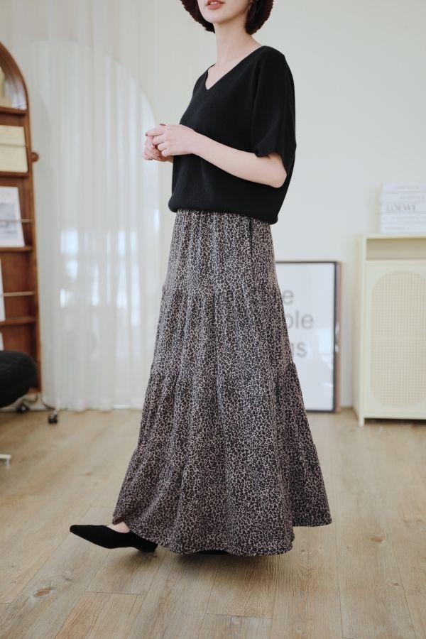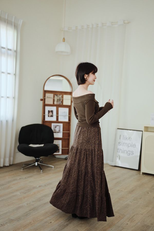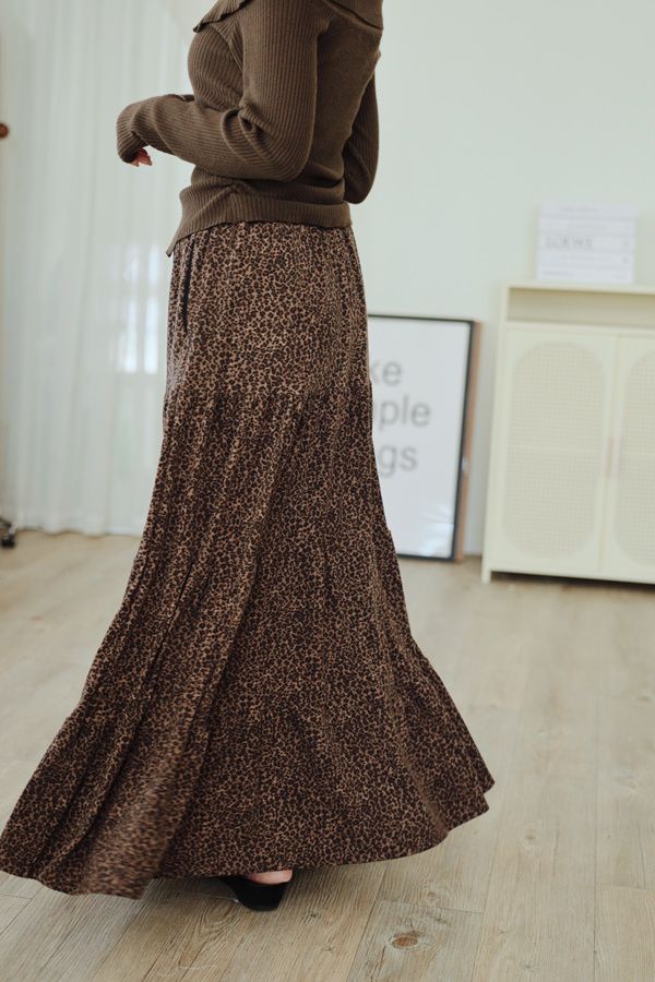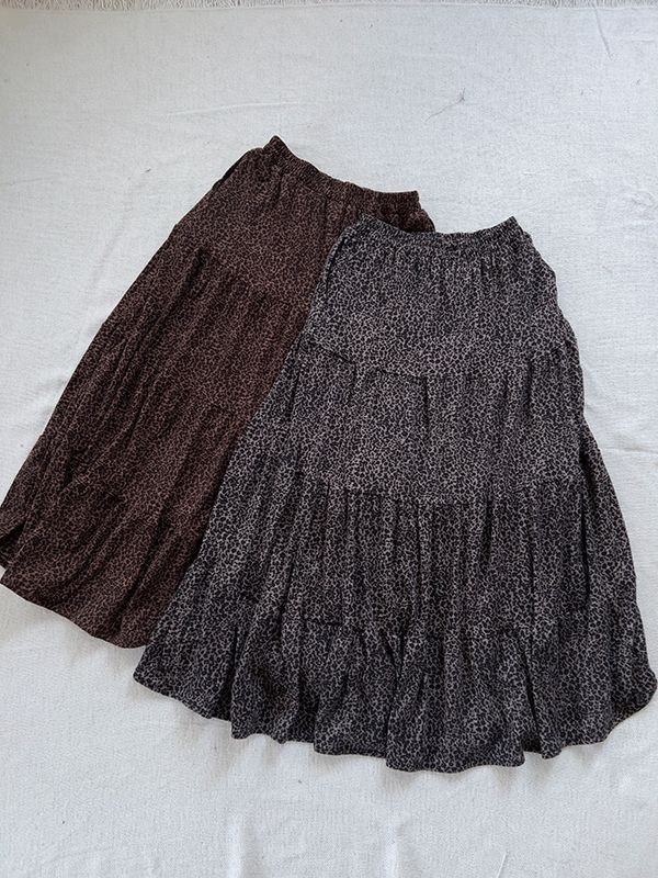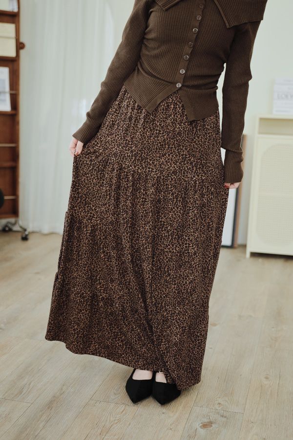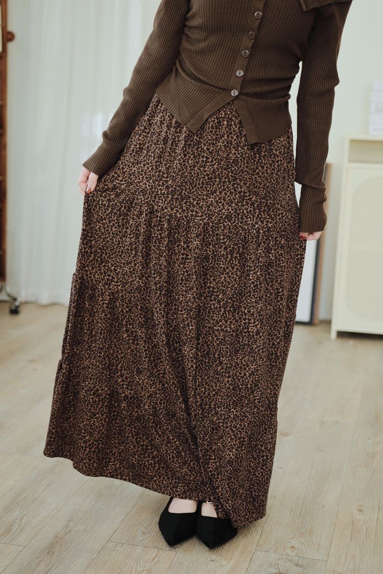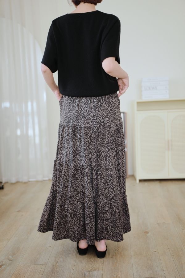 時髦豹紋針織棉蛋糕長裙*2色