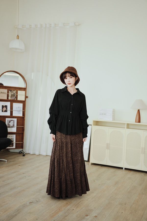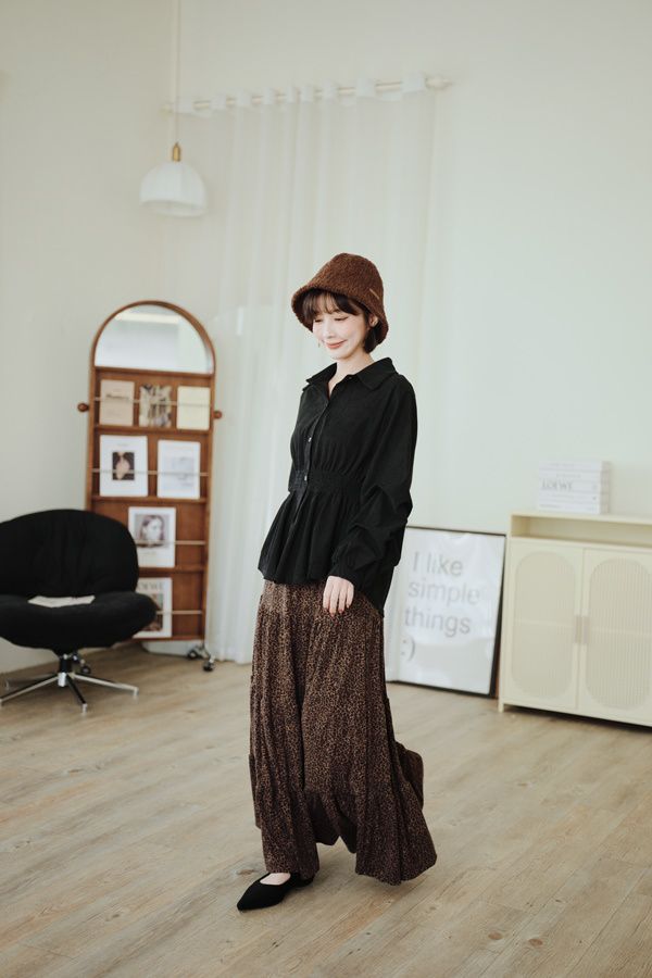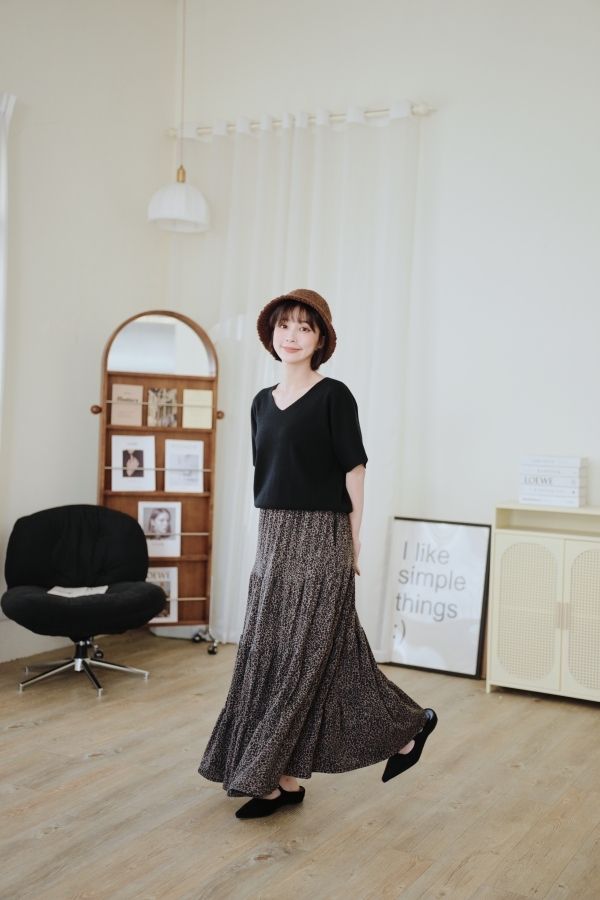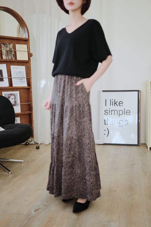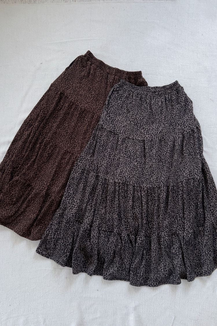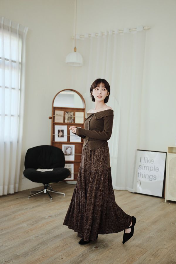 時髦豹紋針織棉蛋糕長裙*2色