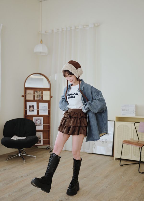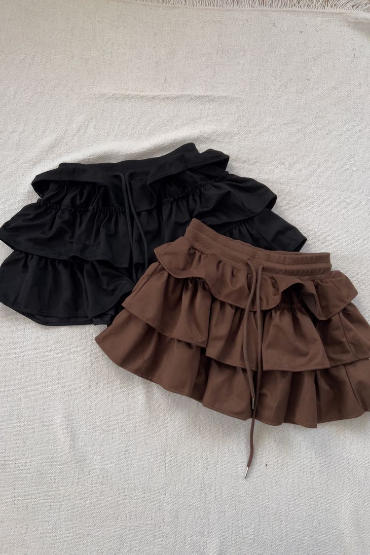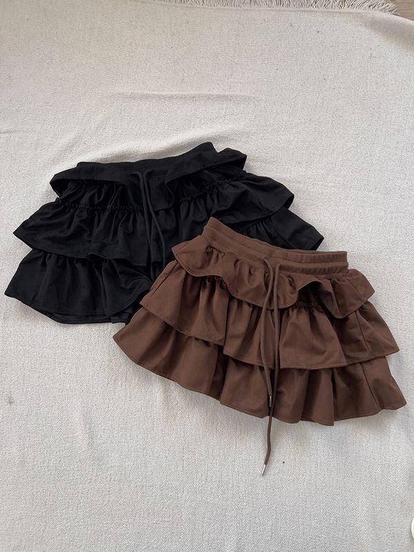 麂皮絨三層抽繩蛋糕短褲裙*2色
