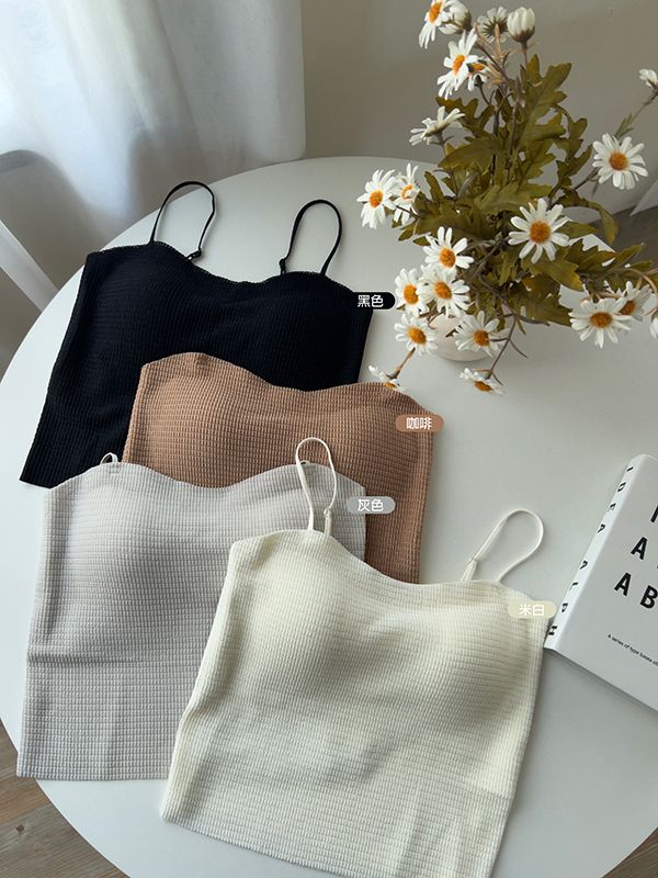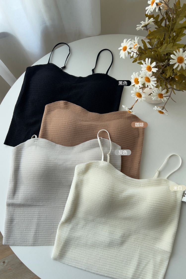 立體紋路細肩Bra top小可愛*4色(固定杯/肩帶可調)
