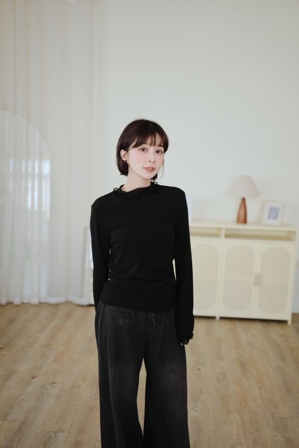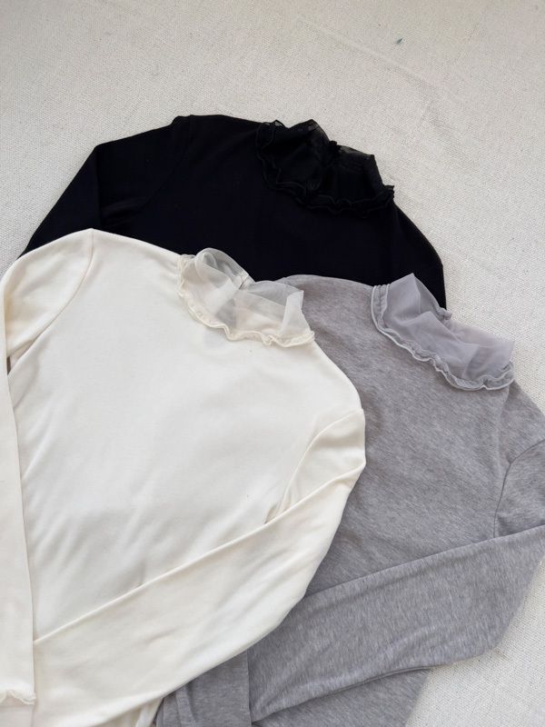 荷葉網紗假兩件上衣*3色(內刷毛)