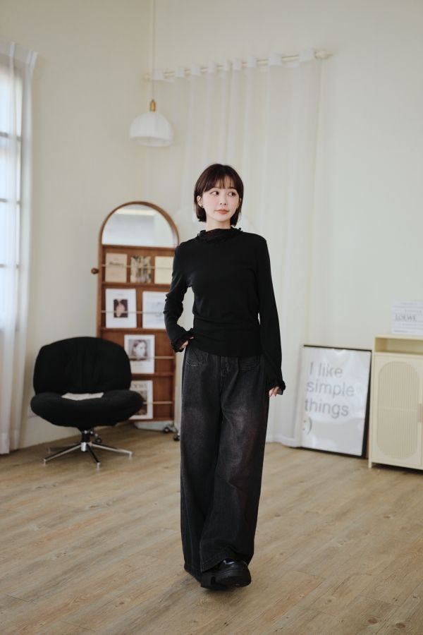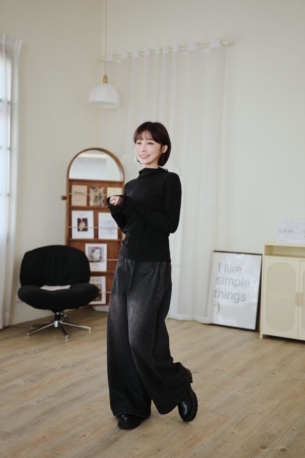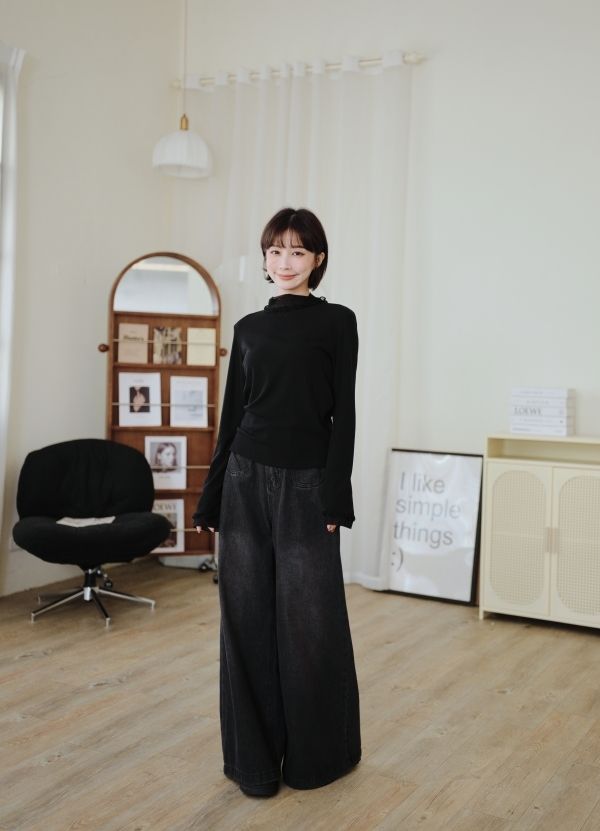 信封口袋牛仔寬褲(後鬆緊)*3色