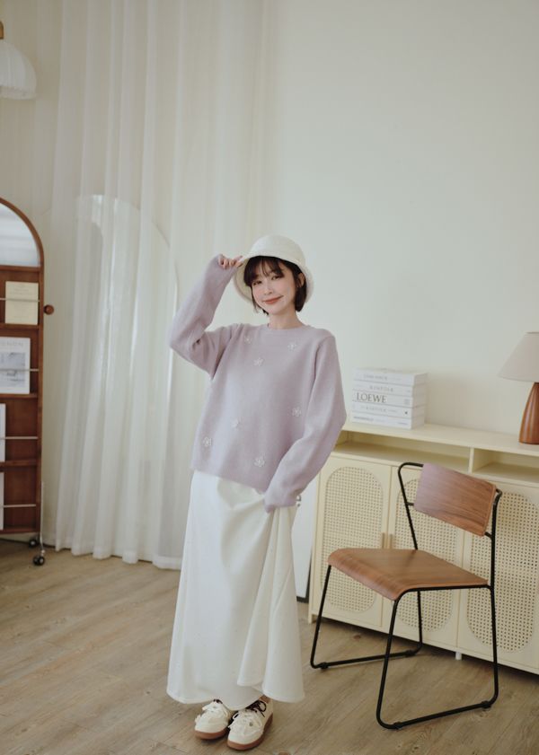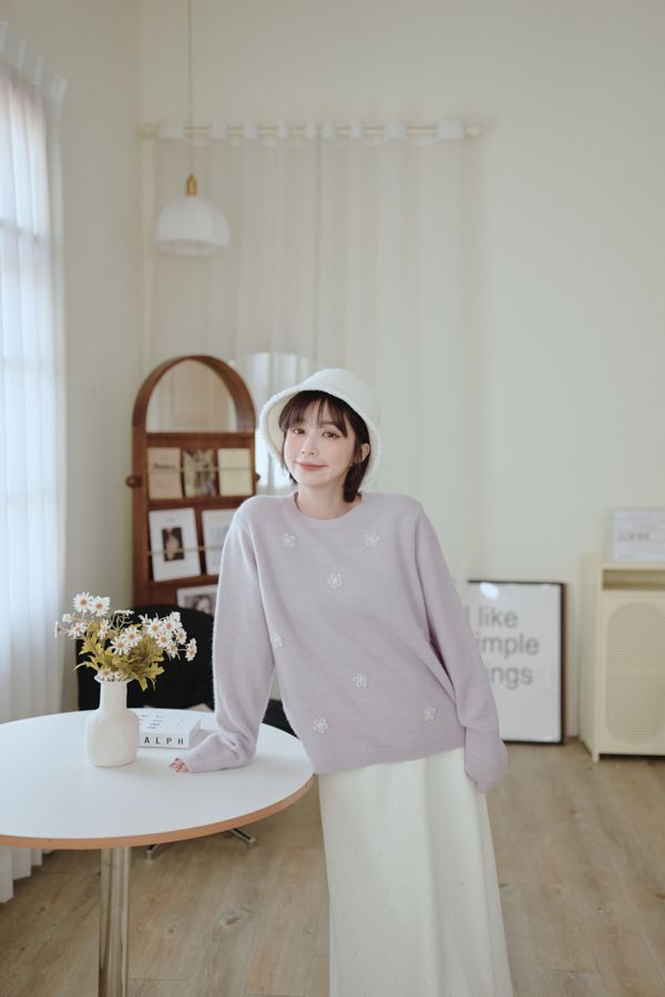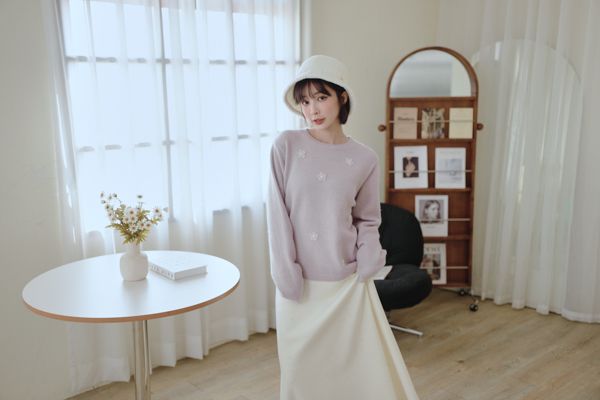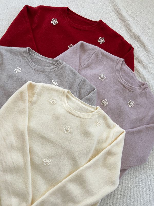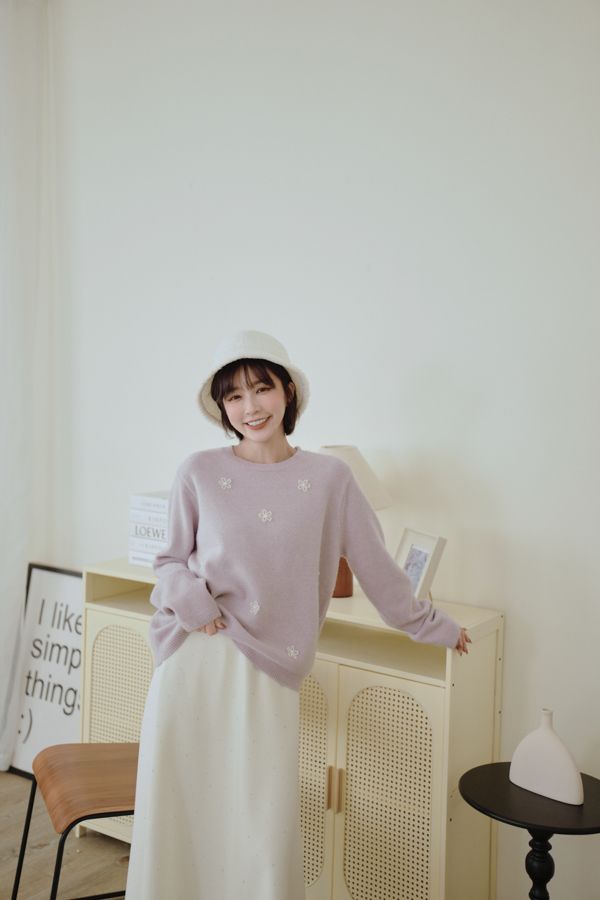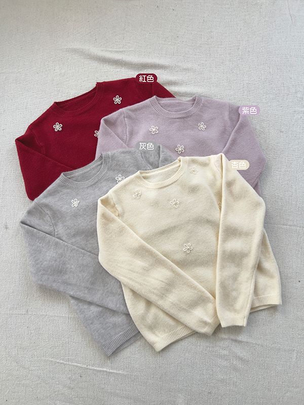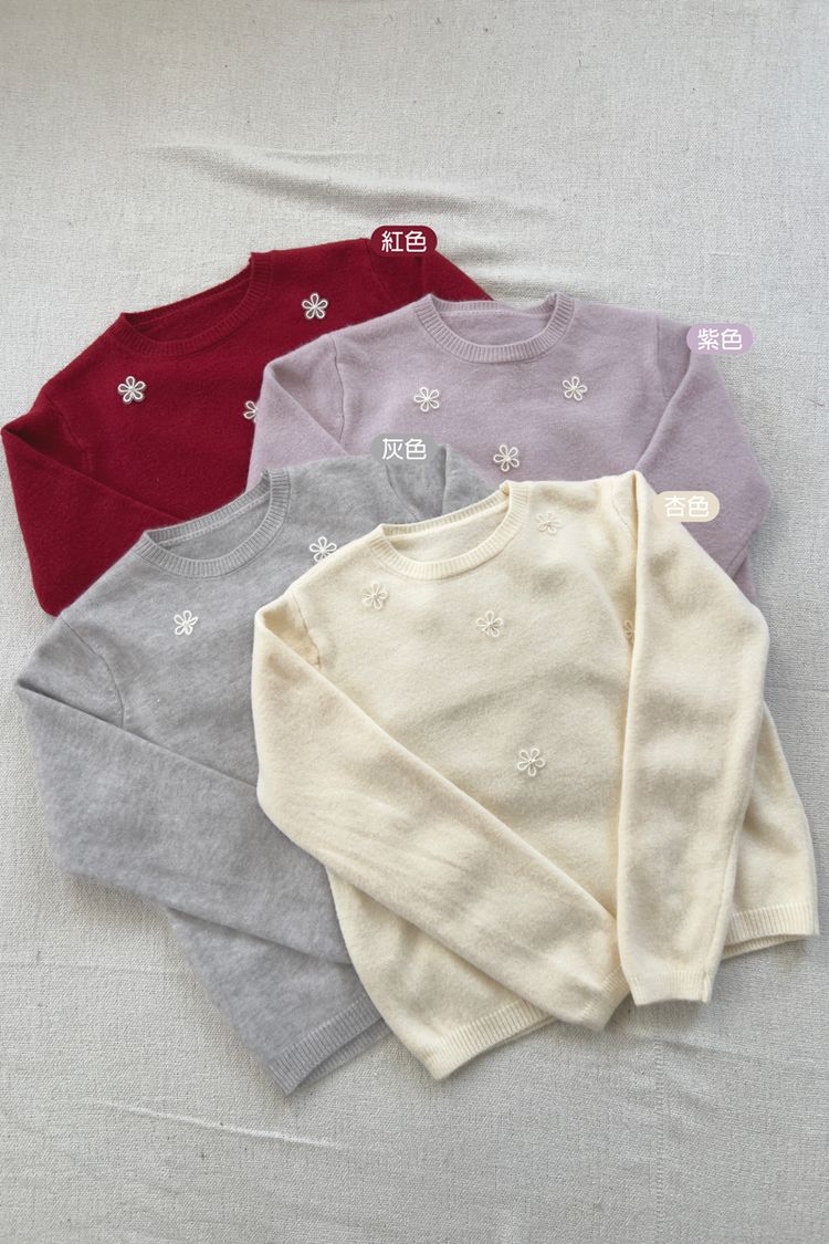 可愛珍珠小花圓領針織上衣*4色