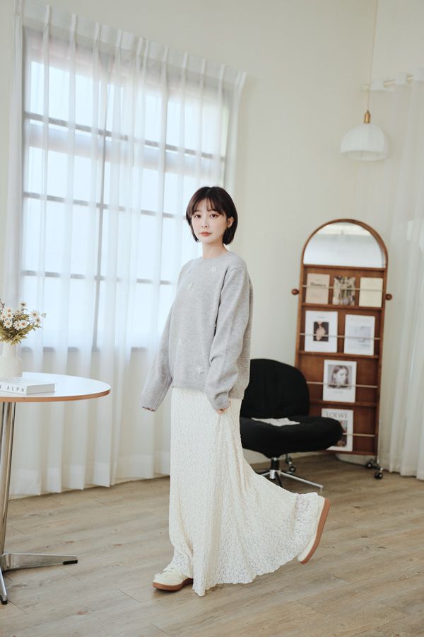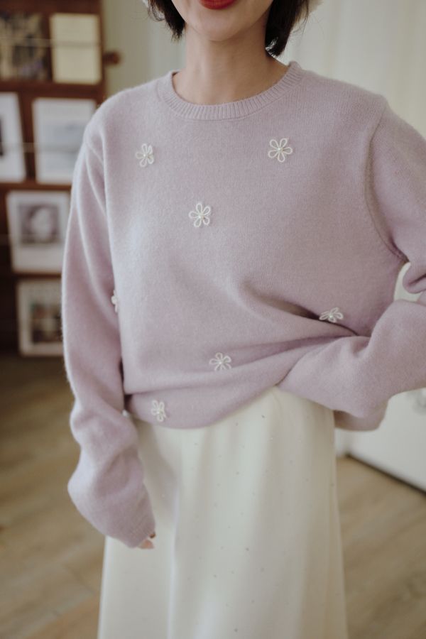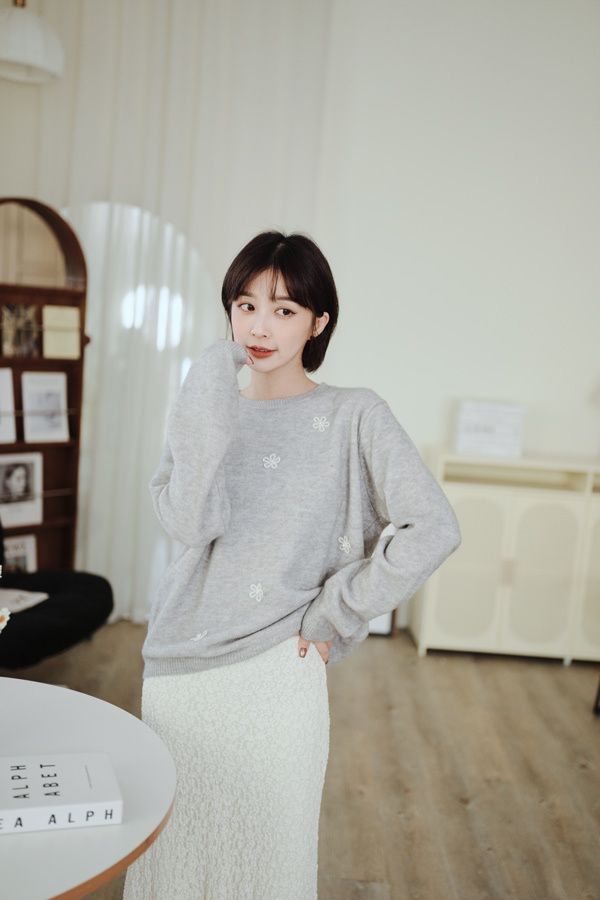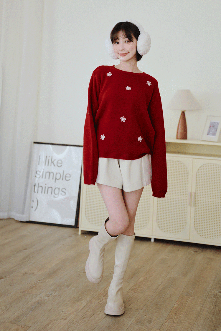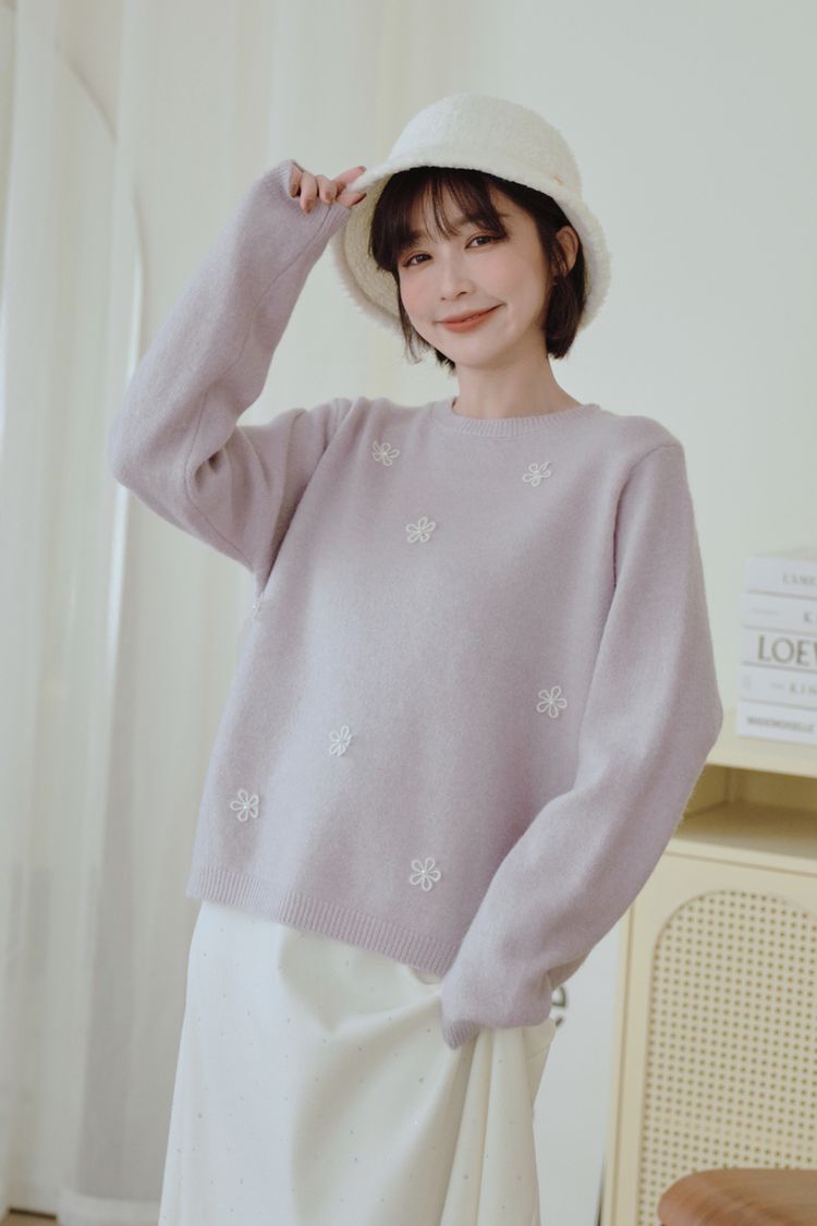 可愛珍珠小花圓領針織上衣*4色