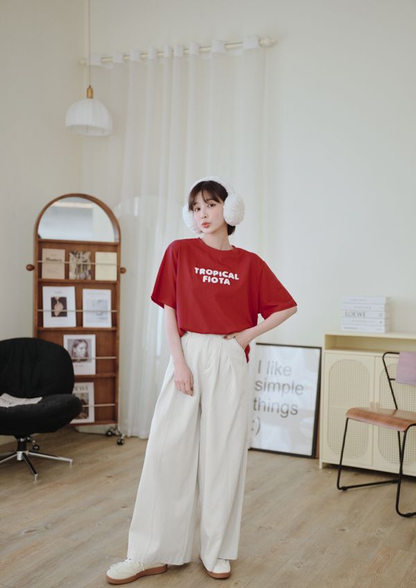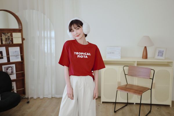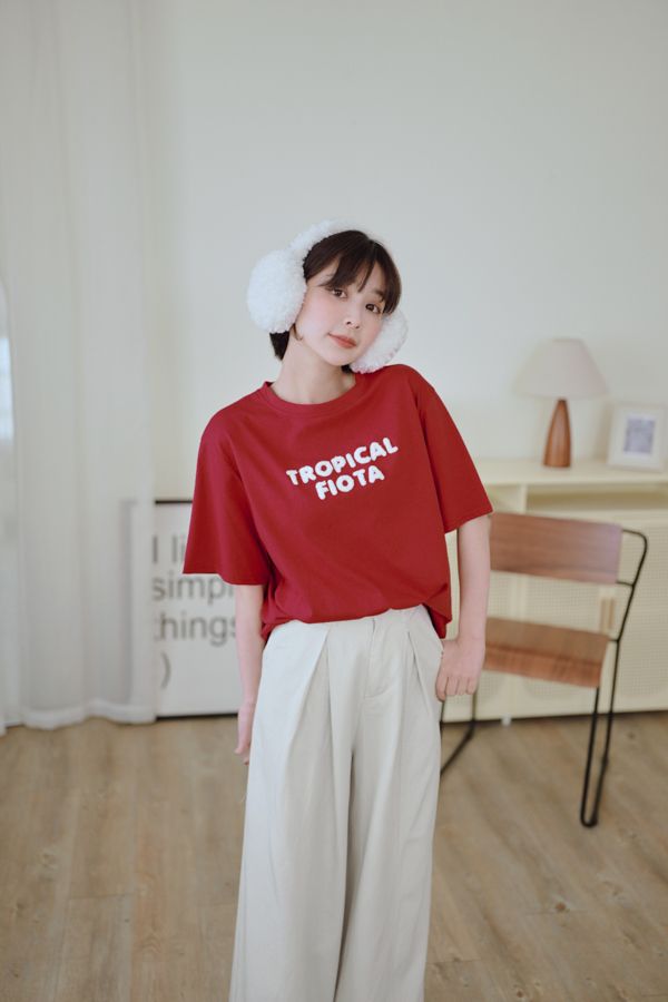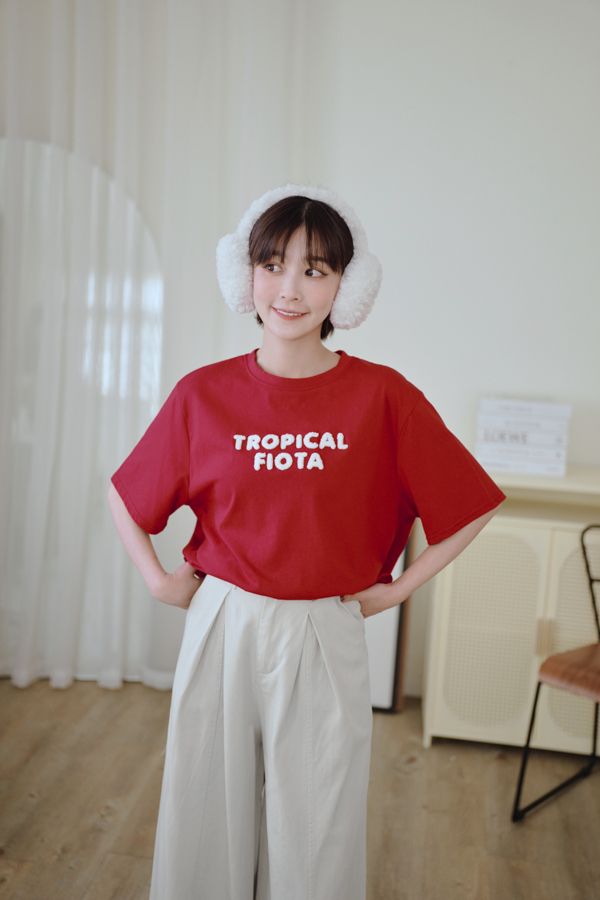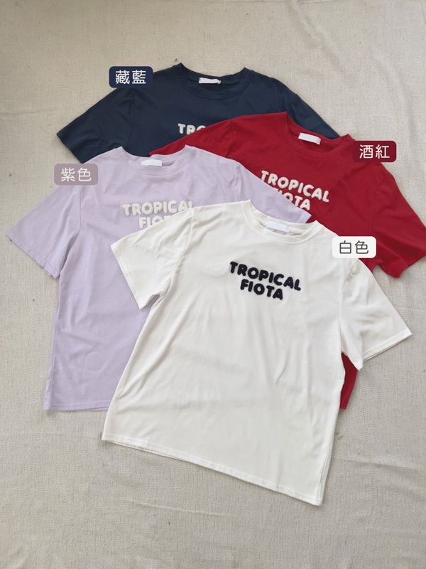 立體毛毛字母圓領Tee*4色