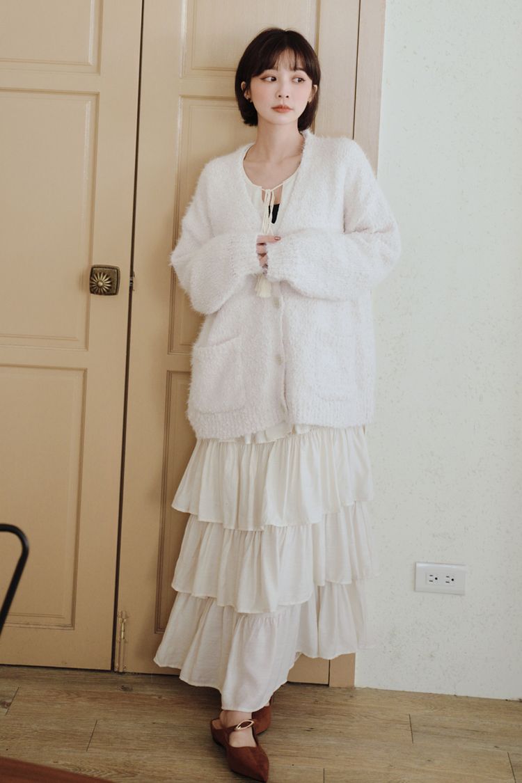 蓬鬆感顆粒絨大口袋針織外套*4色
