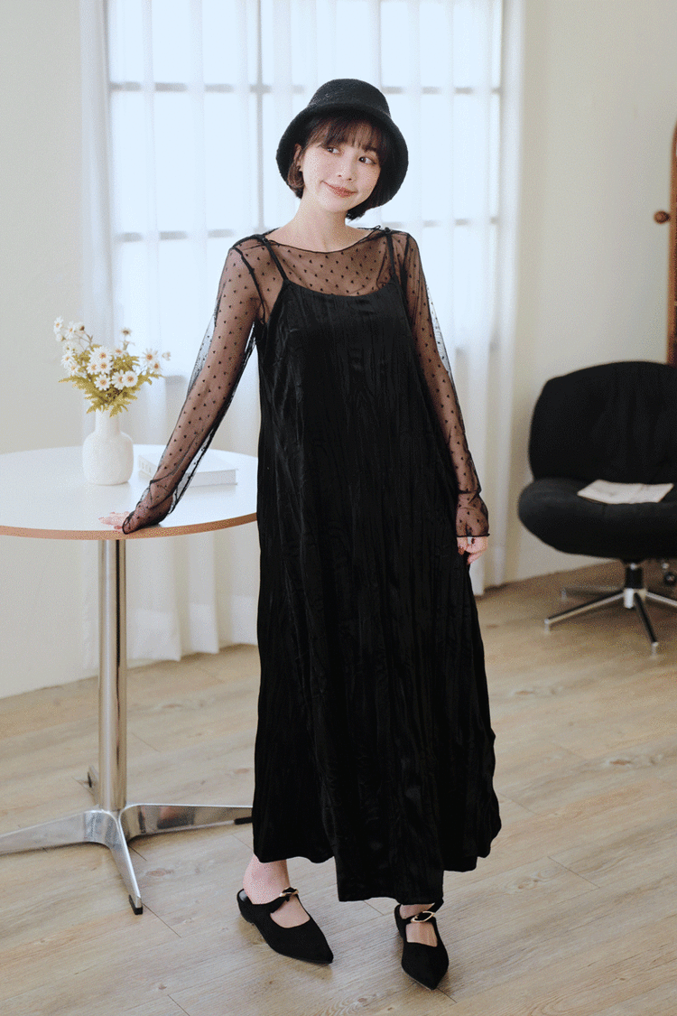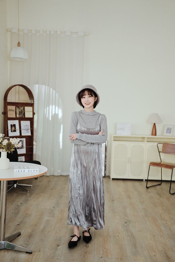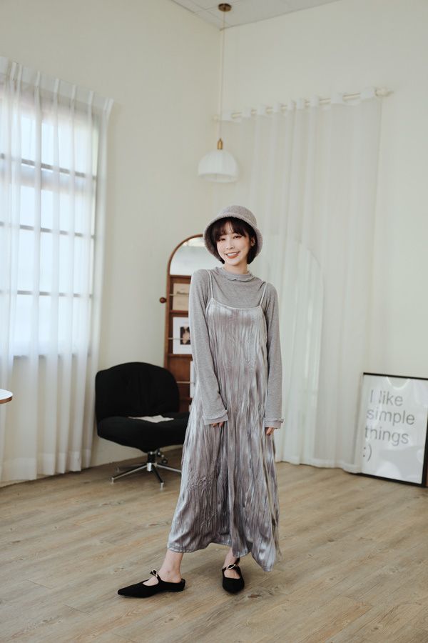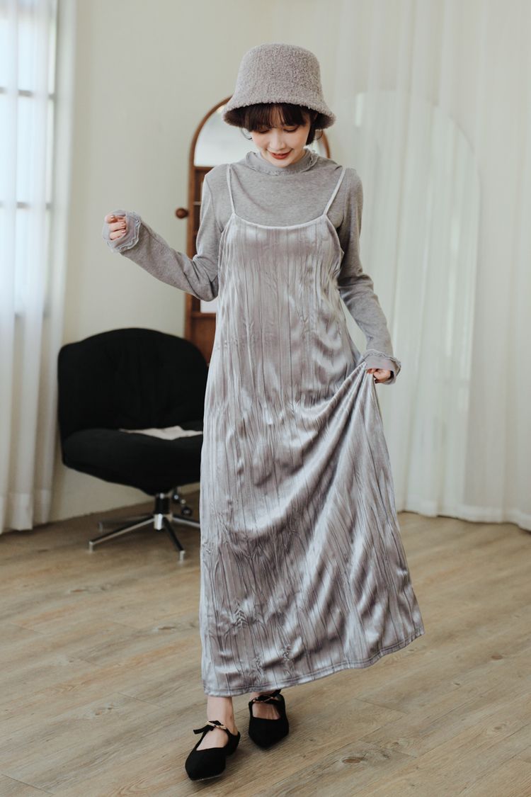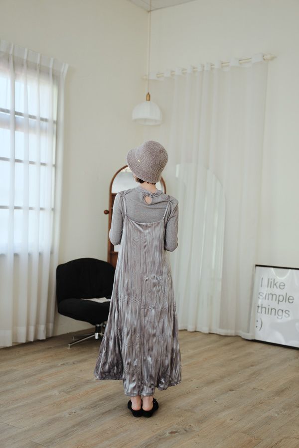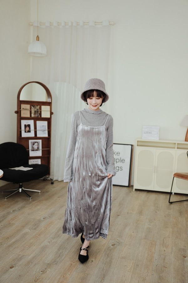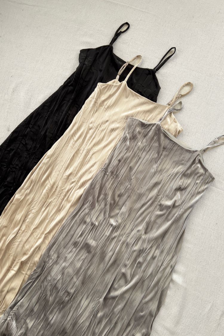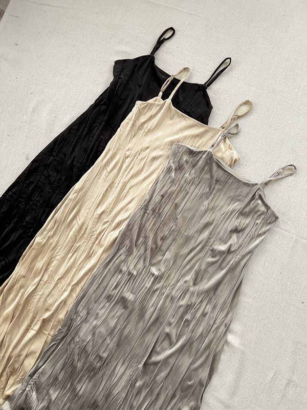 柔皺細肩光澤洋裝*3色