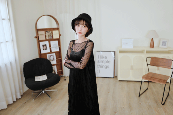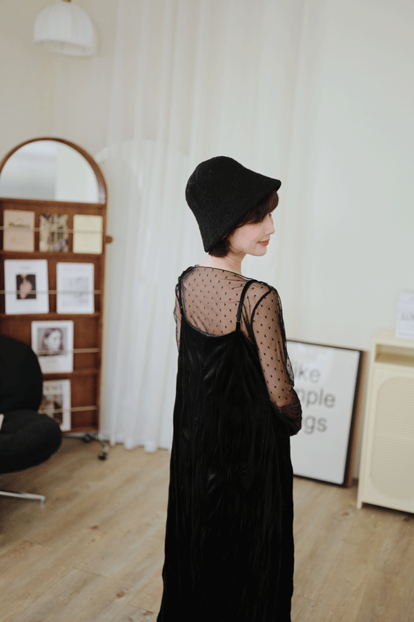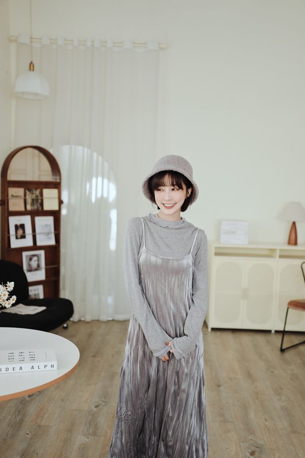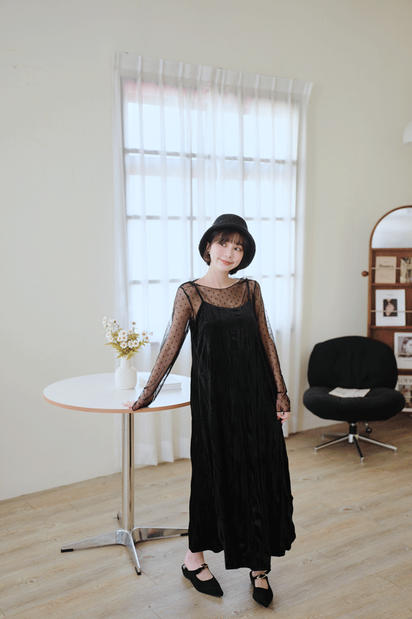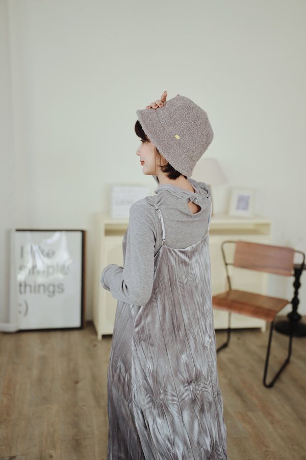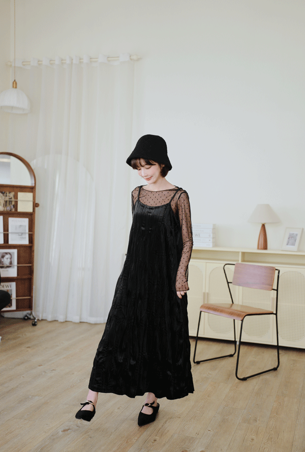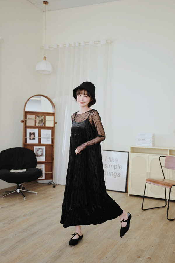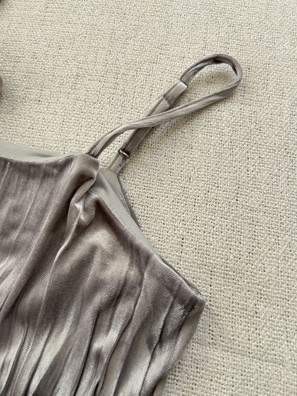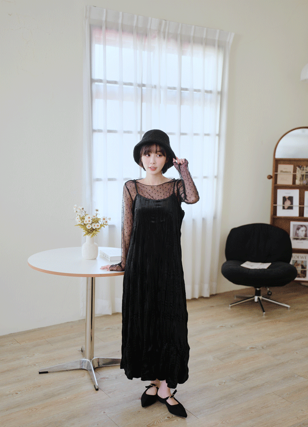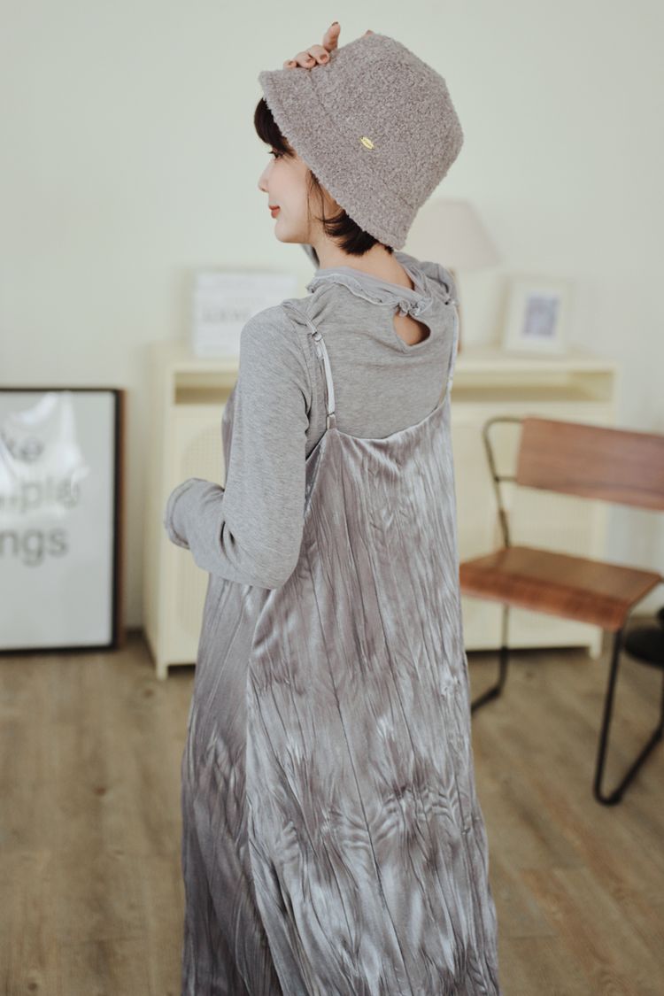 柔皺細肩光澤洋裝*3色