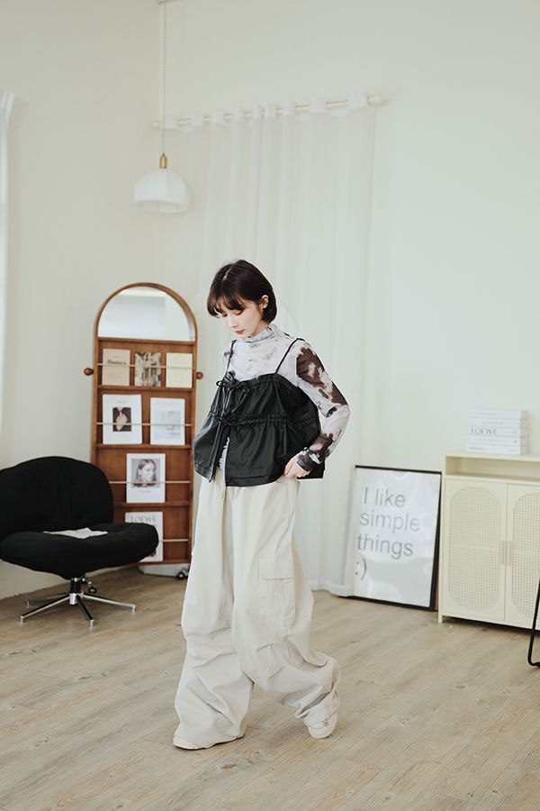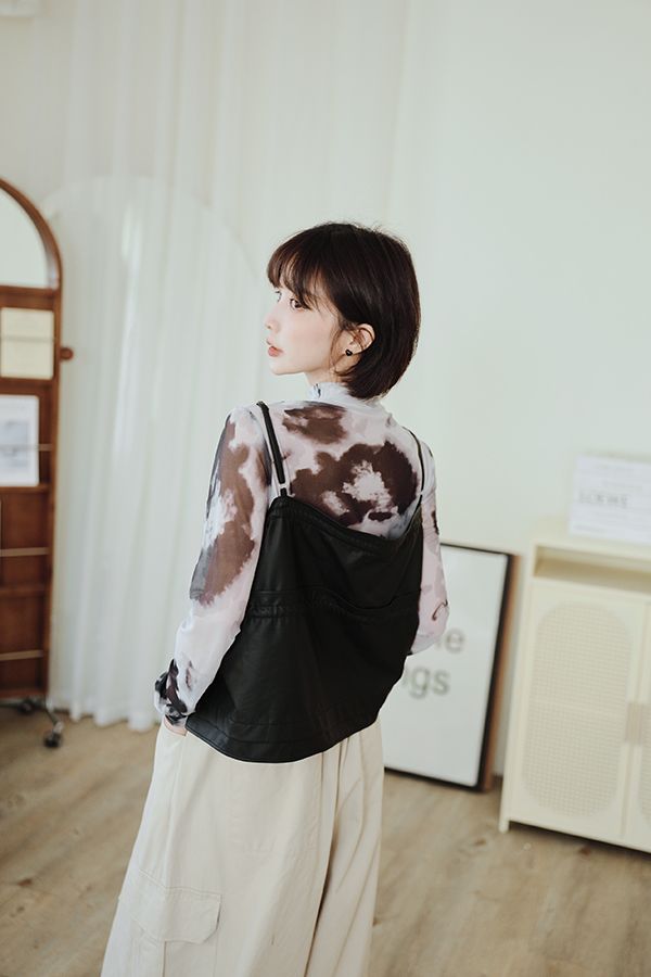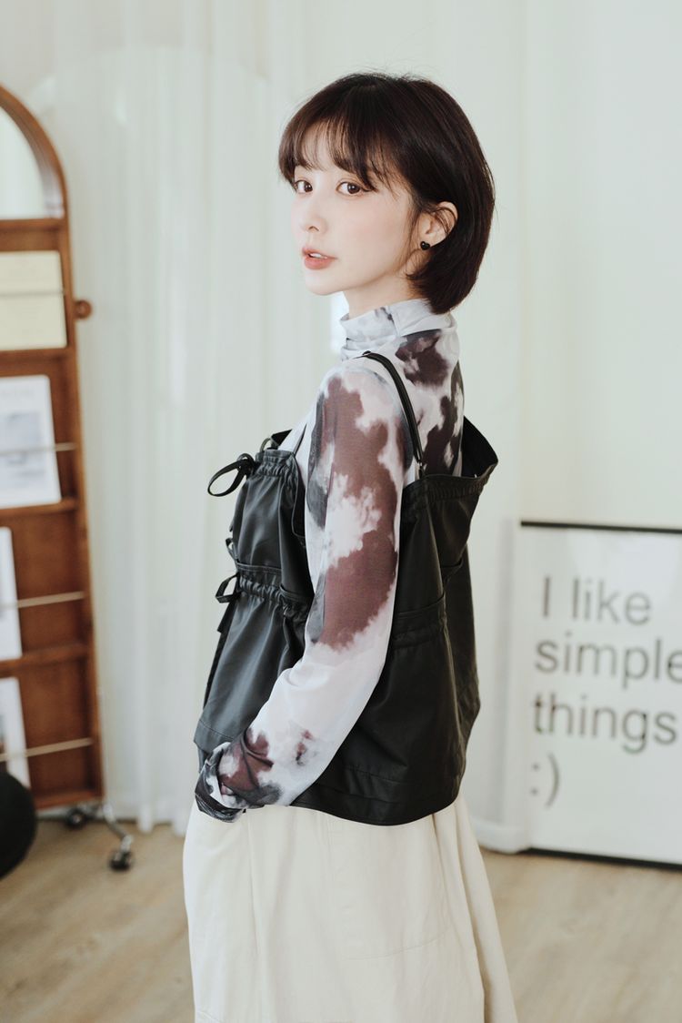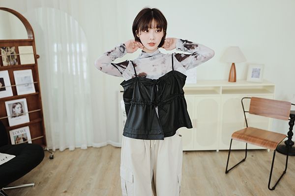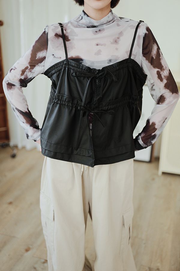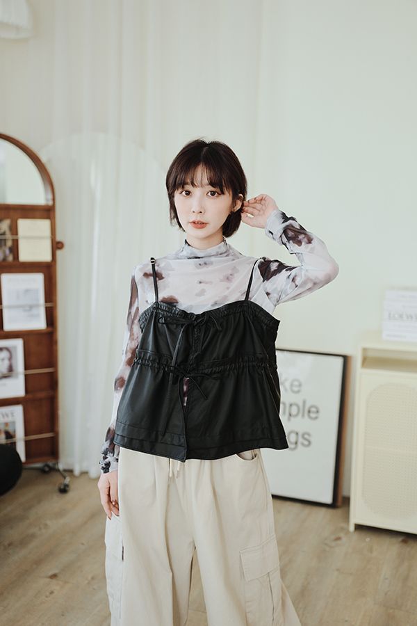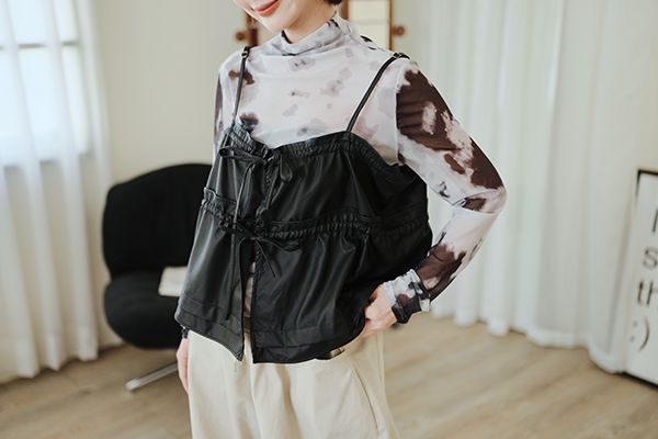 雙蝴蝶結皮質細肩背心(肩可調)*4色