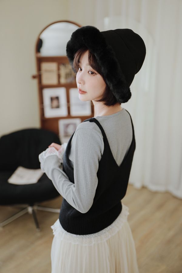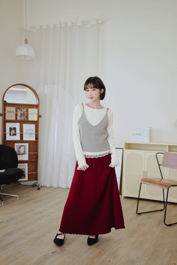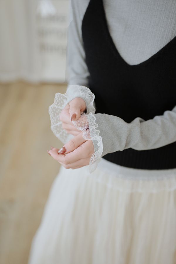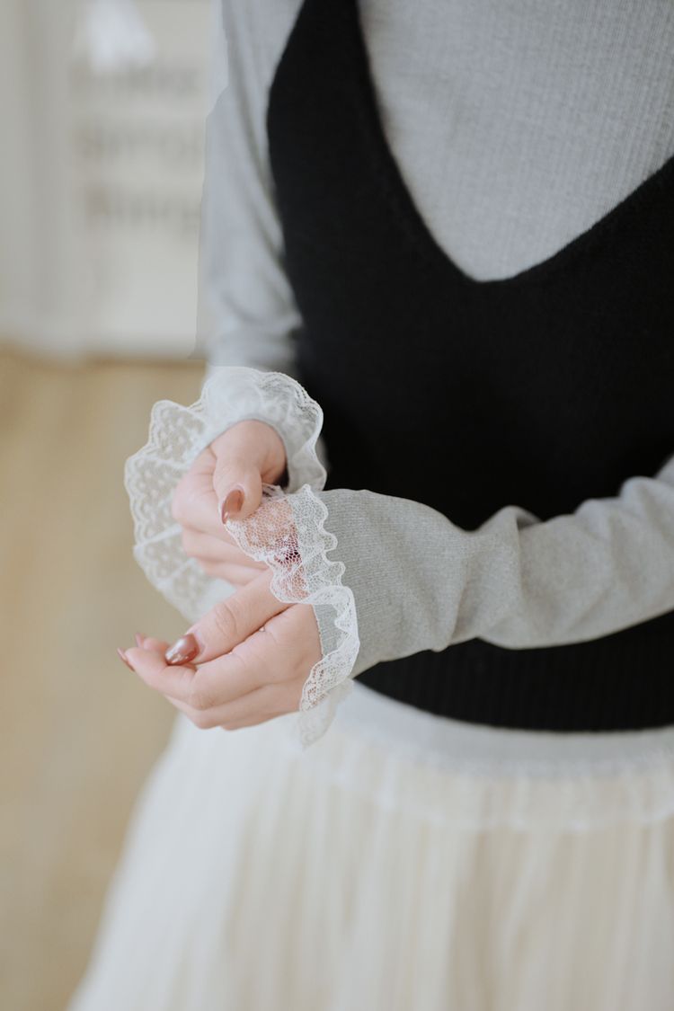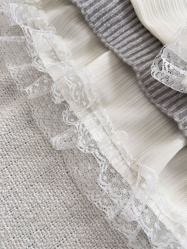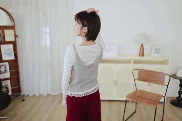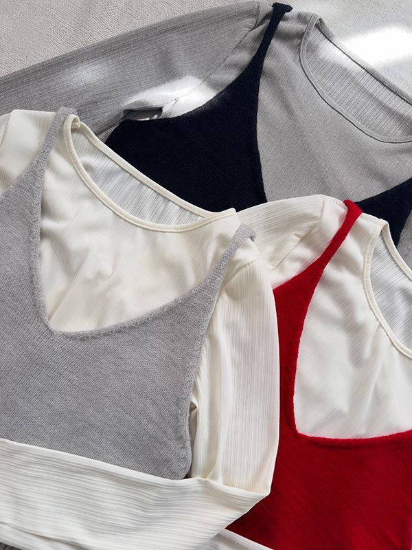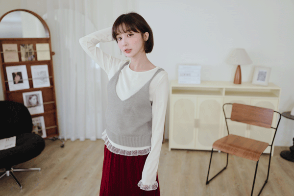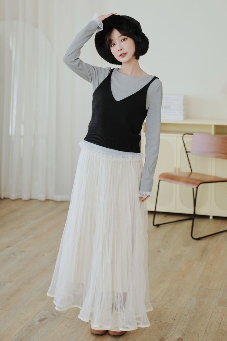 針織背心套組(蕾絲邊上衣+細肩背心)*3色