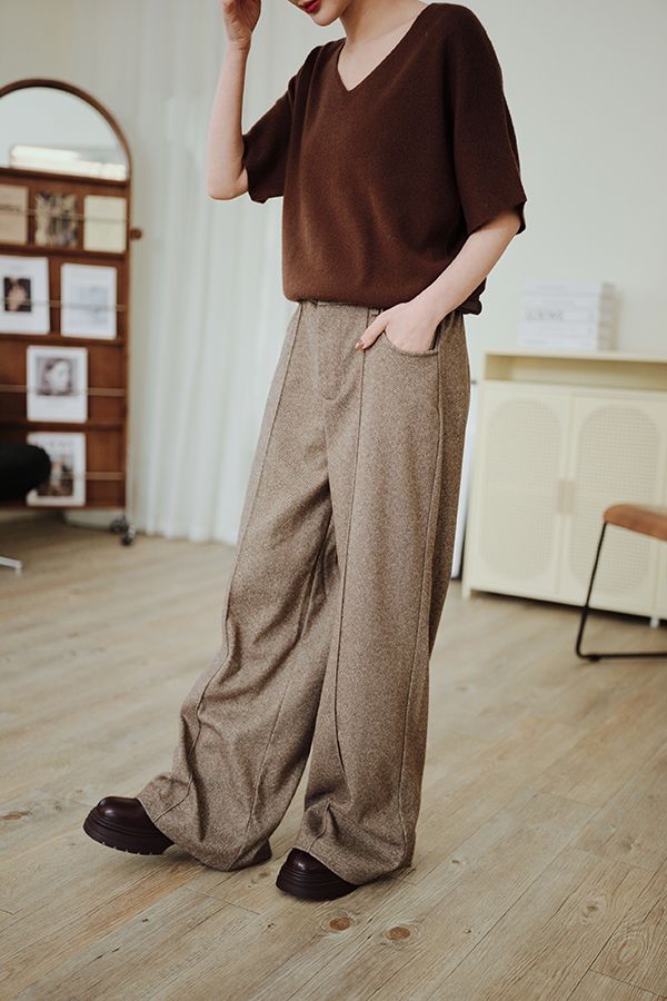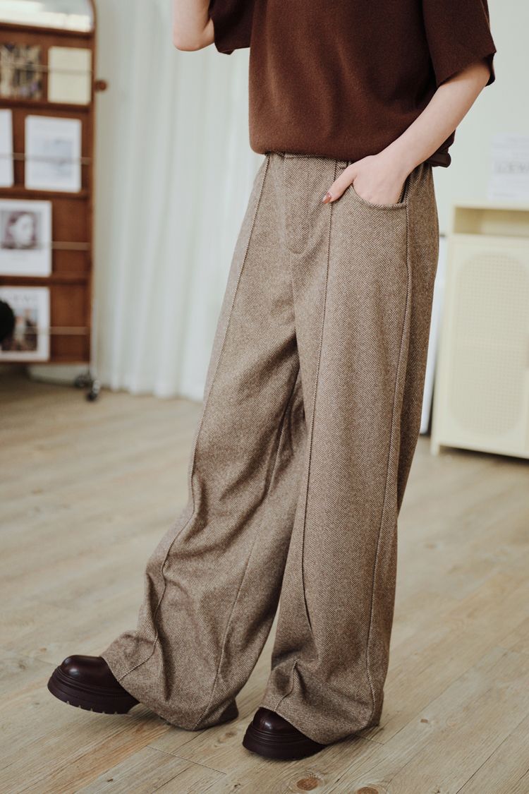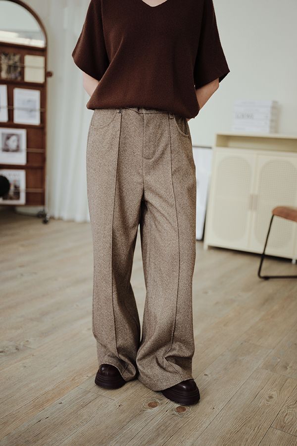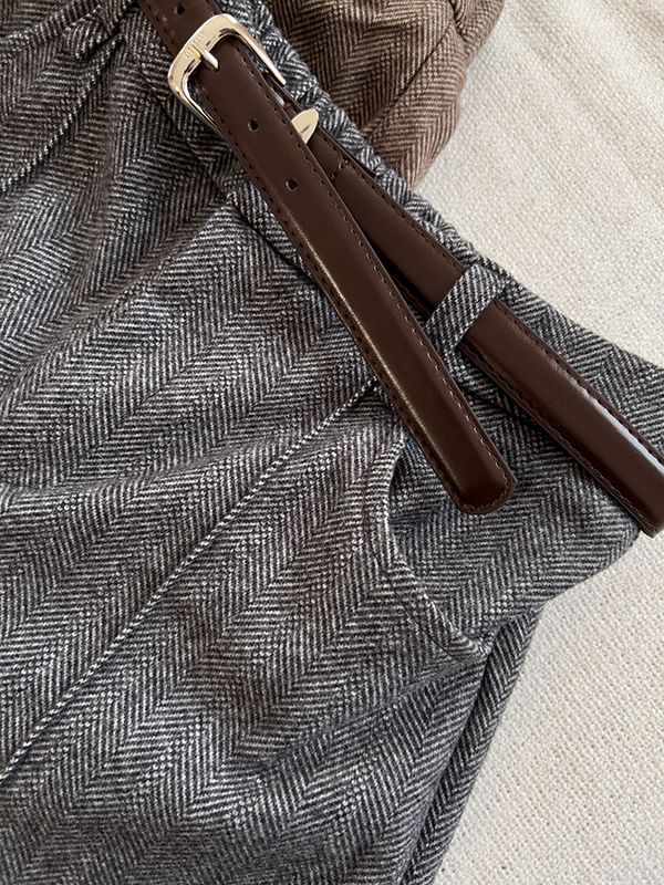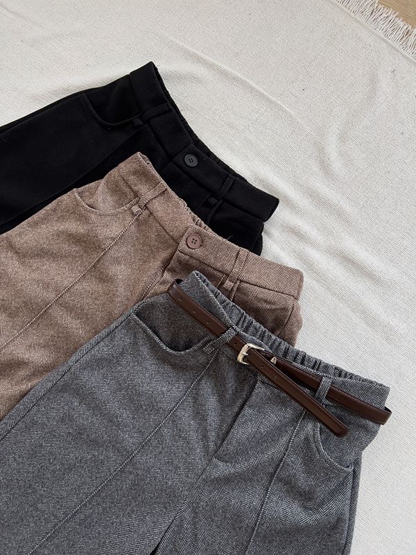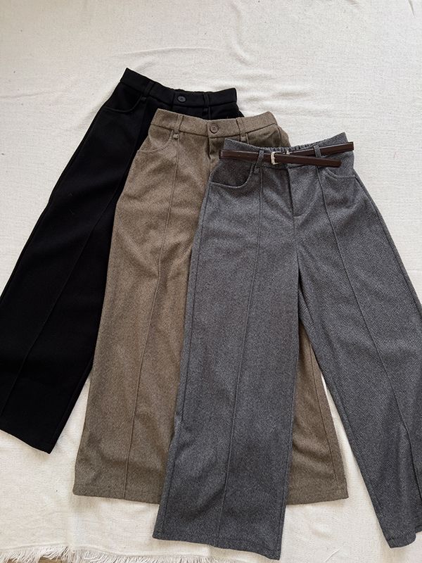 斜紋中線毛呢直筒褲*3色(附皮帶)