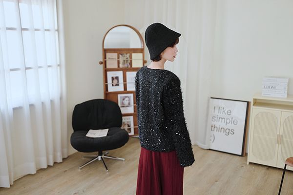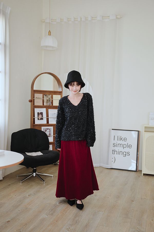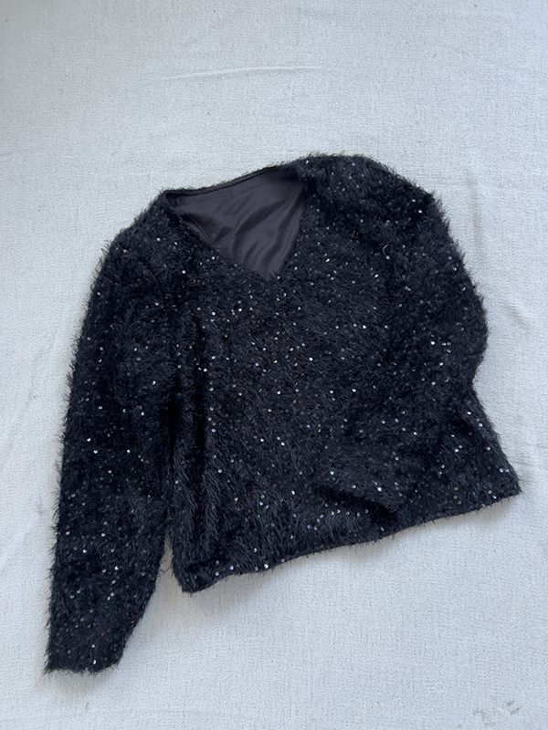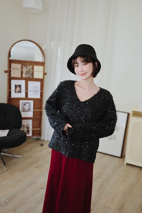 【限量現貨】閃亮V領毛海上衣*2色(有墊肩)