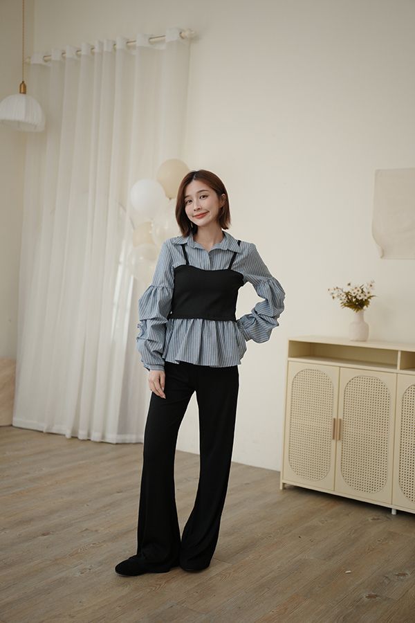 【H自訂】MIT內磨毛坑條瑜珈喇叭褲*1色