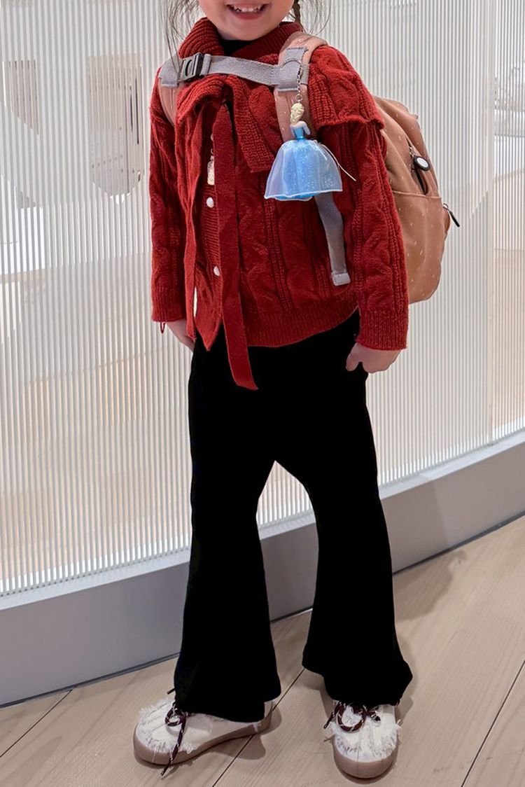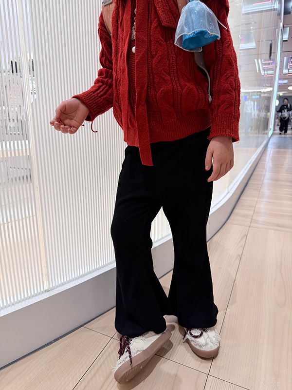 【H自訂】MIT內磨毛坑條包腹喇叭寬管褲*1色(小童)