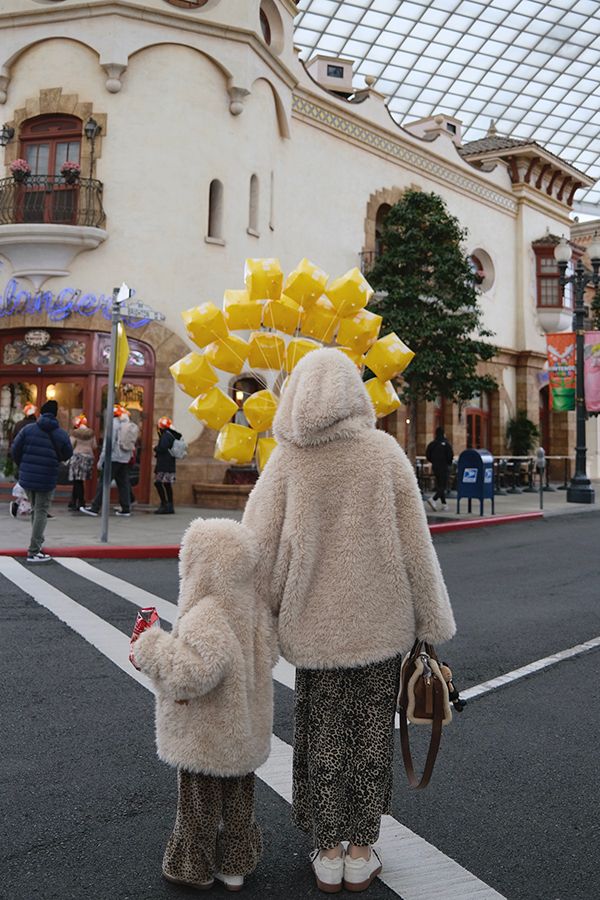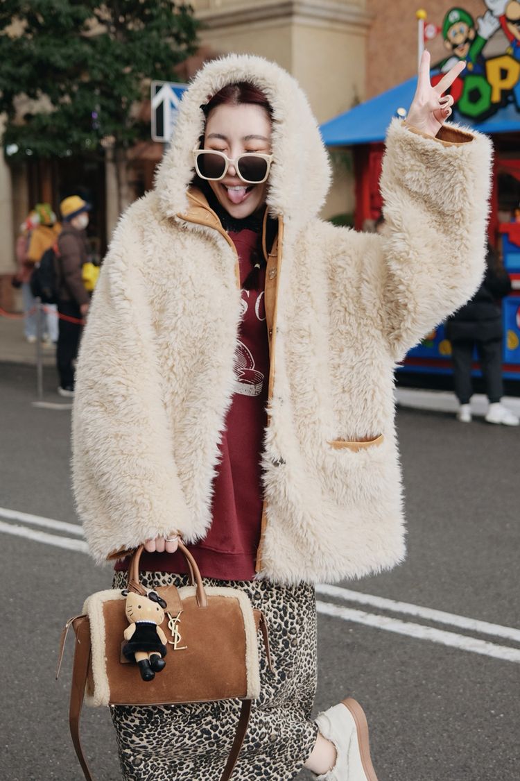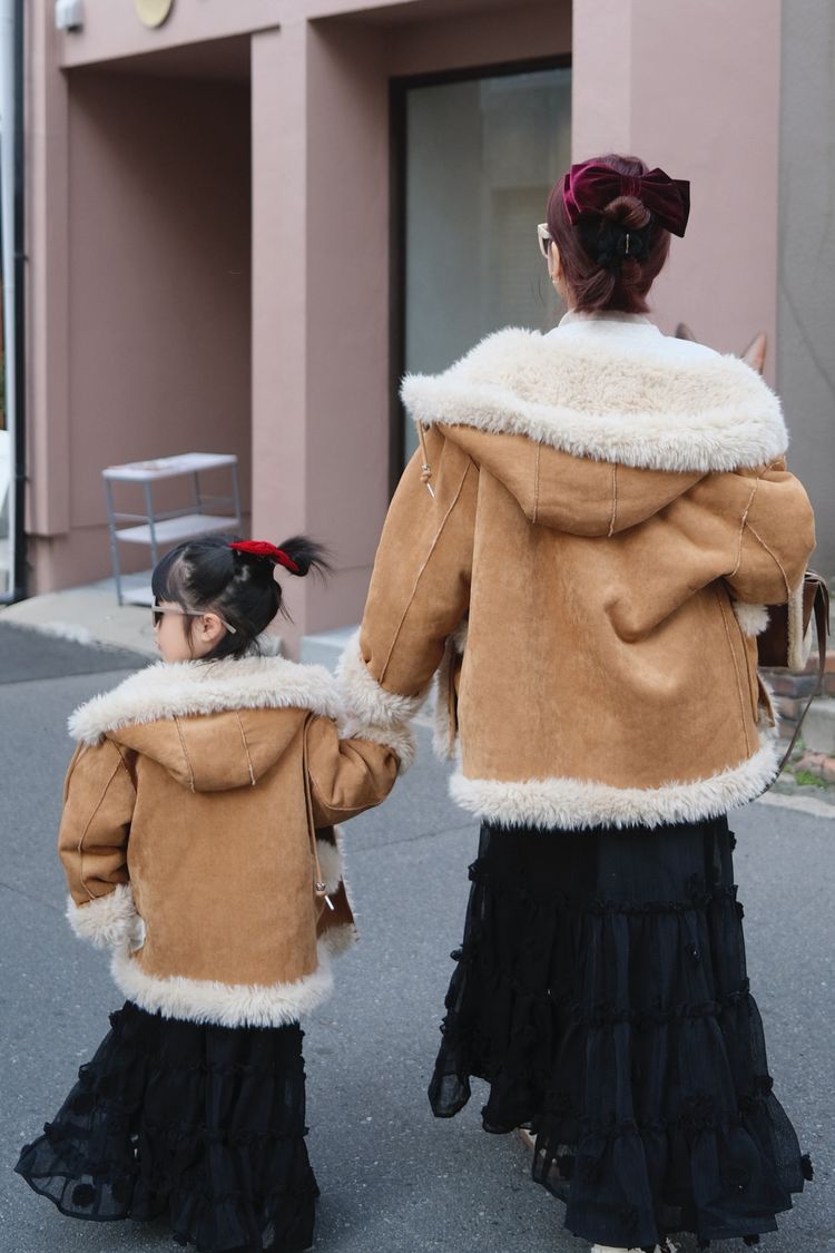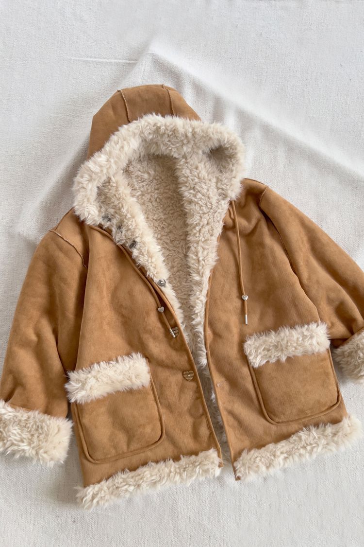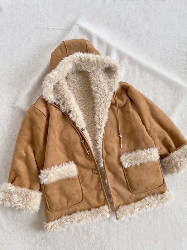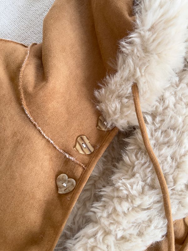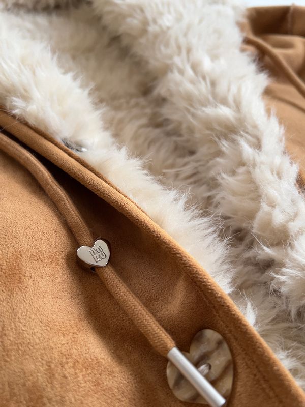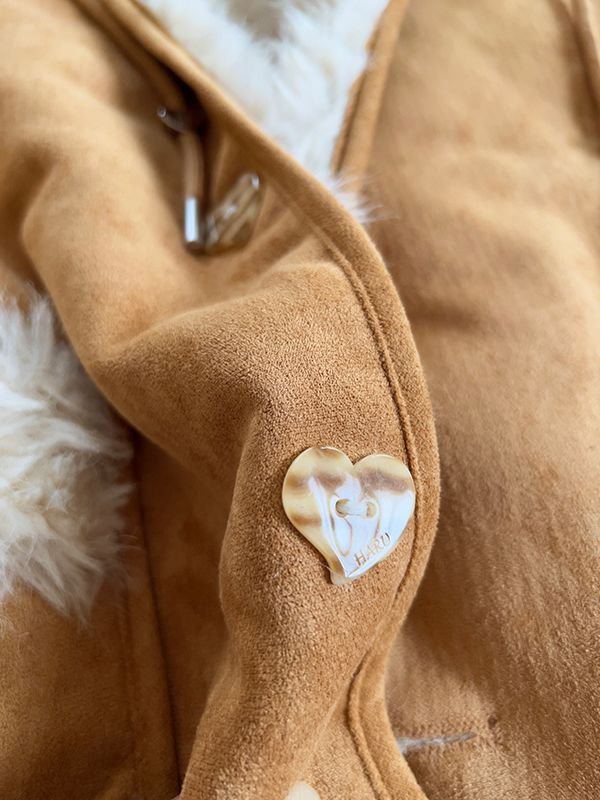 【H自訂】雙面穿麂皮愛心釦連帽毛毛外套*1色