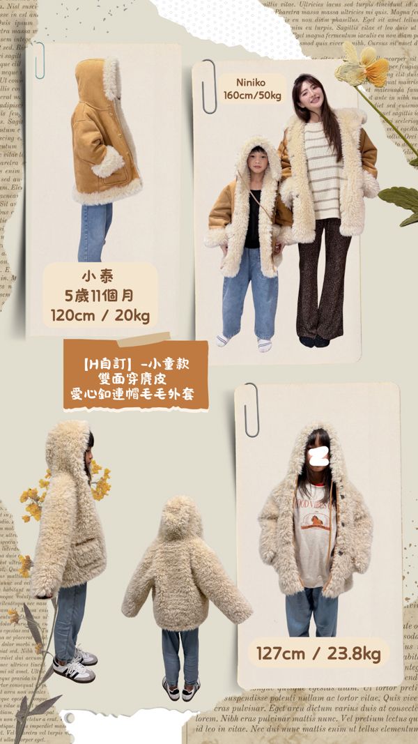 【H自訂】雙面穿麂皮愛心釦連帽毛毛外套*1色(小童)