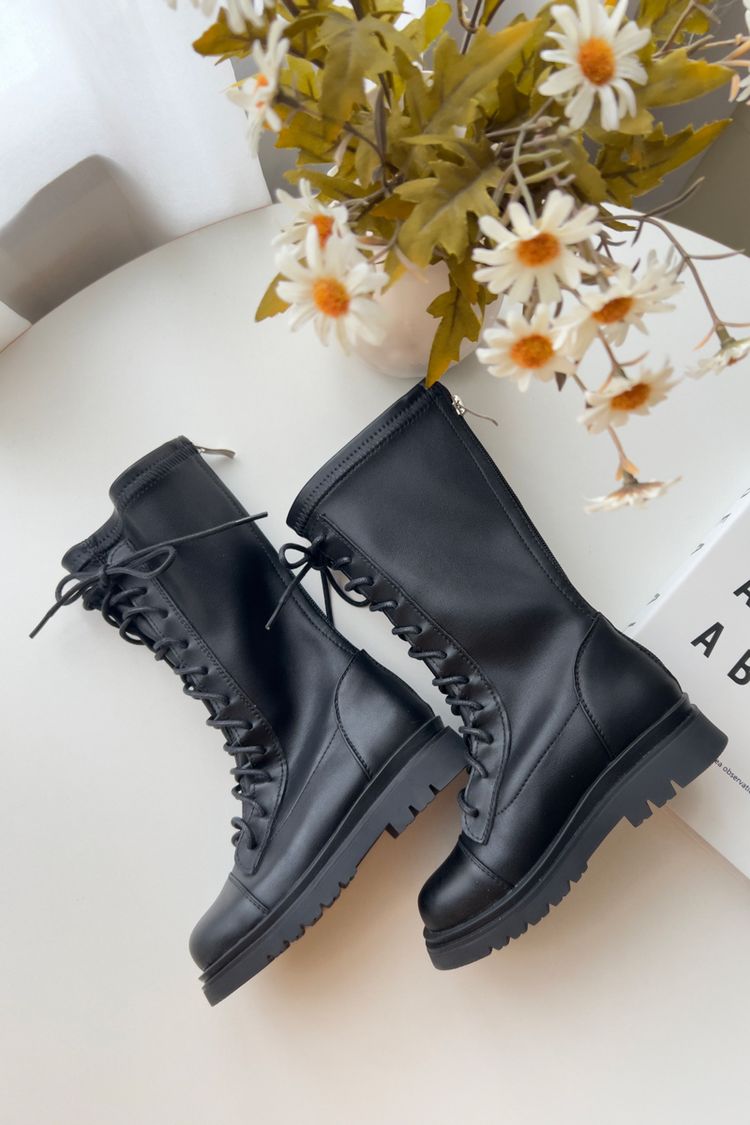 個性綁帶後拉鍊馬丁靴*1色