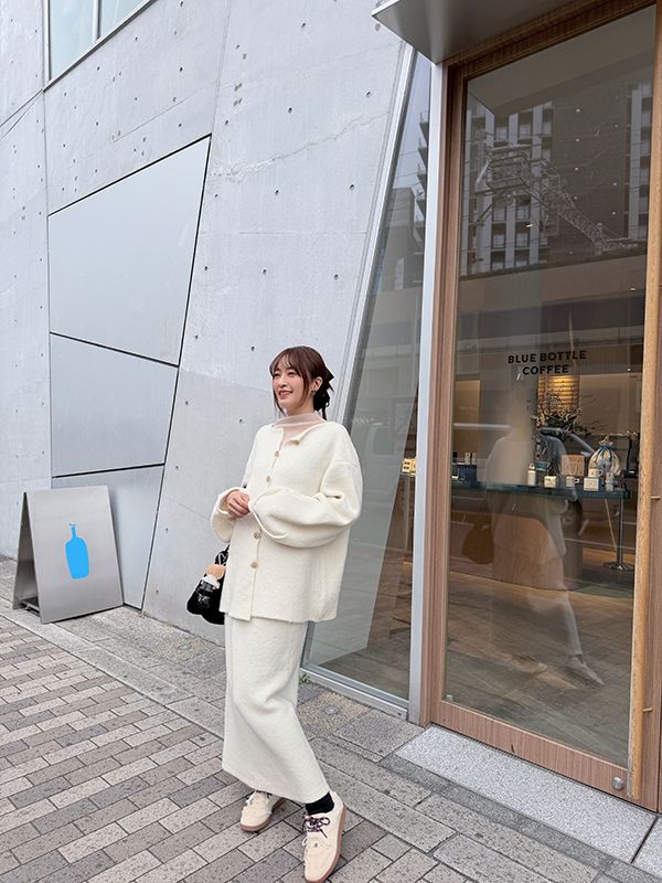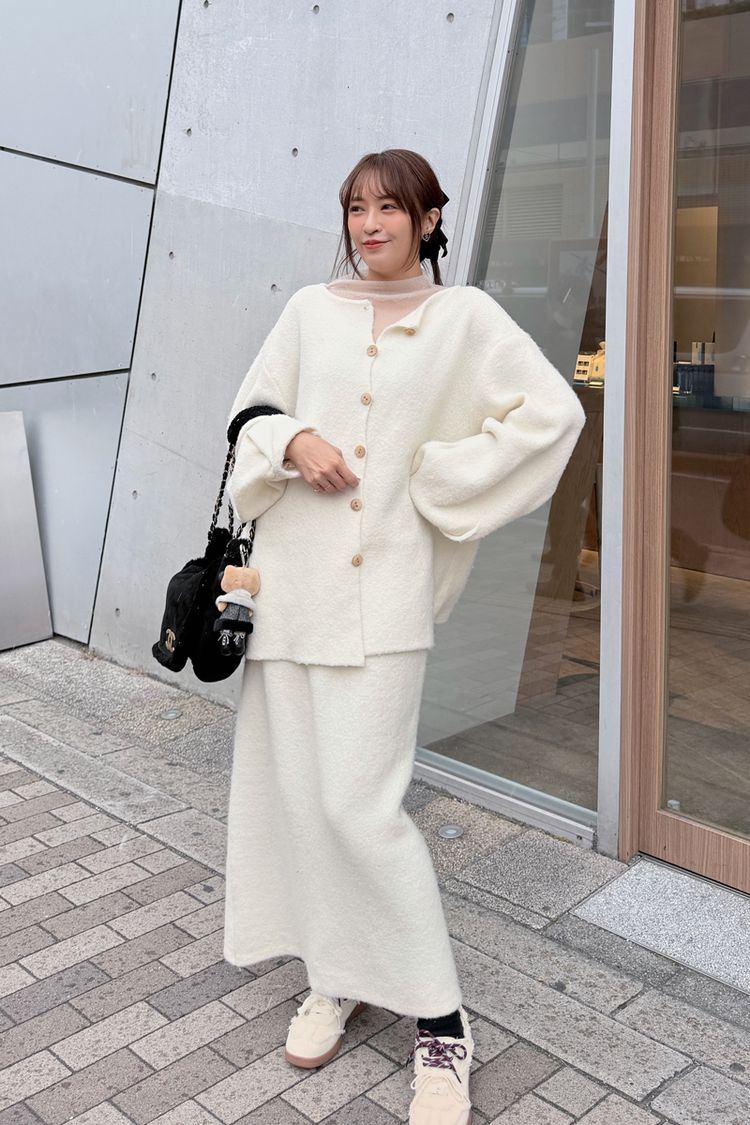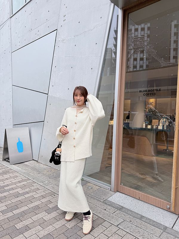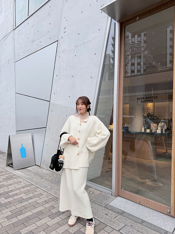 高磅數針織後排扣套裝-可雙面穿(上衣+裙子)